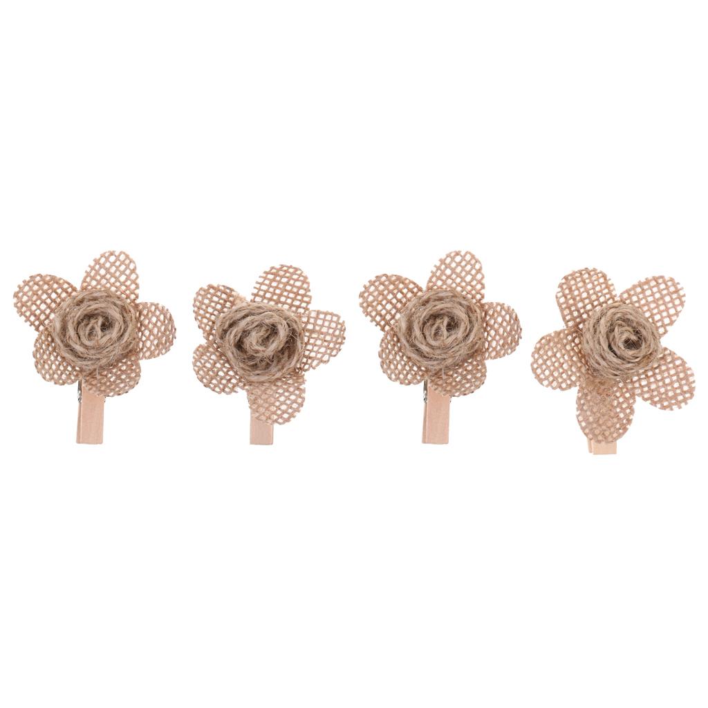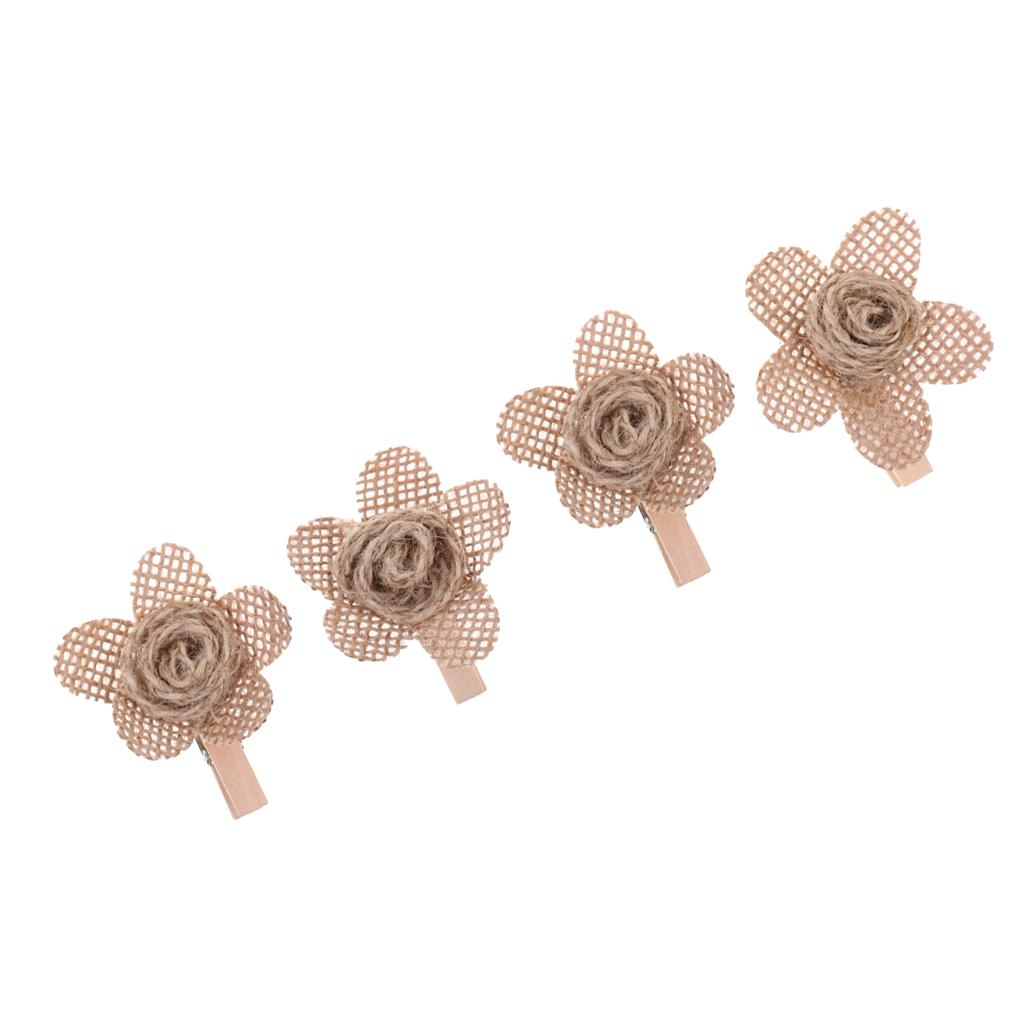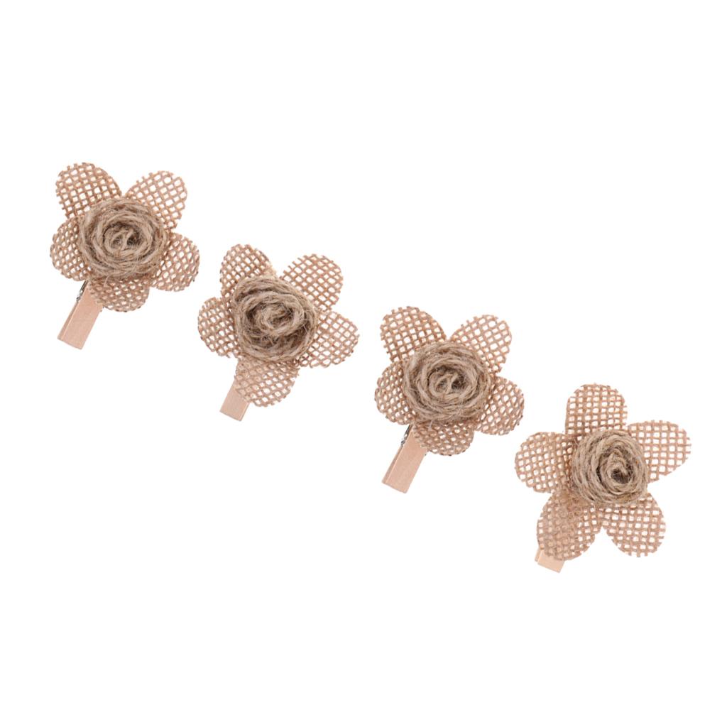 4pcs Hessian Burlap Flowers Rustic Wedding Craft Making Decoration