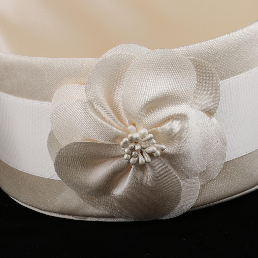 Graceful champagne color,smooth satin material,handmade flower decor