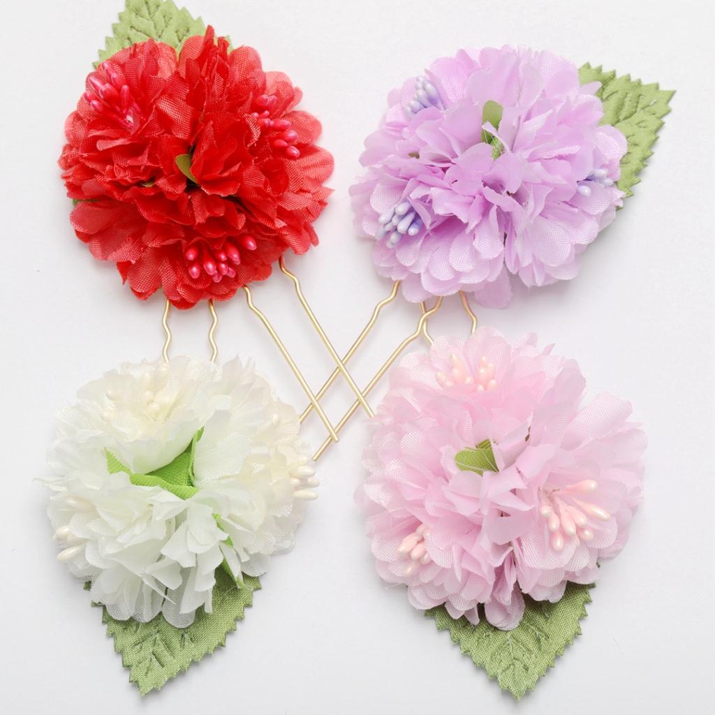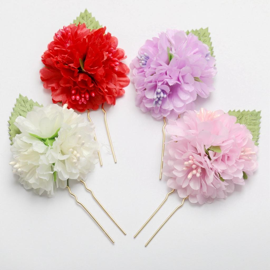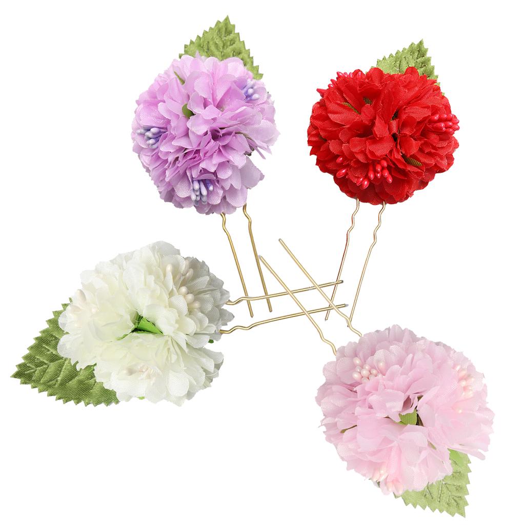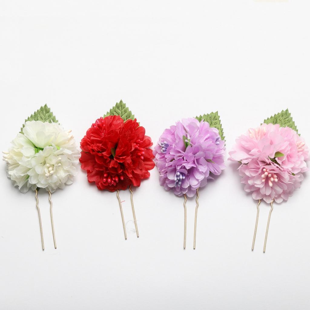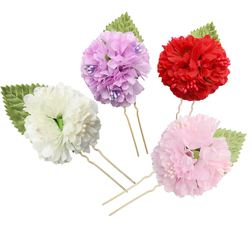 4Pcs/lot Bridal Flower Hairpin (1pc Red +1pc Lavender +1pc Milky white +1pc Pink)