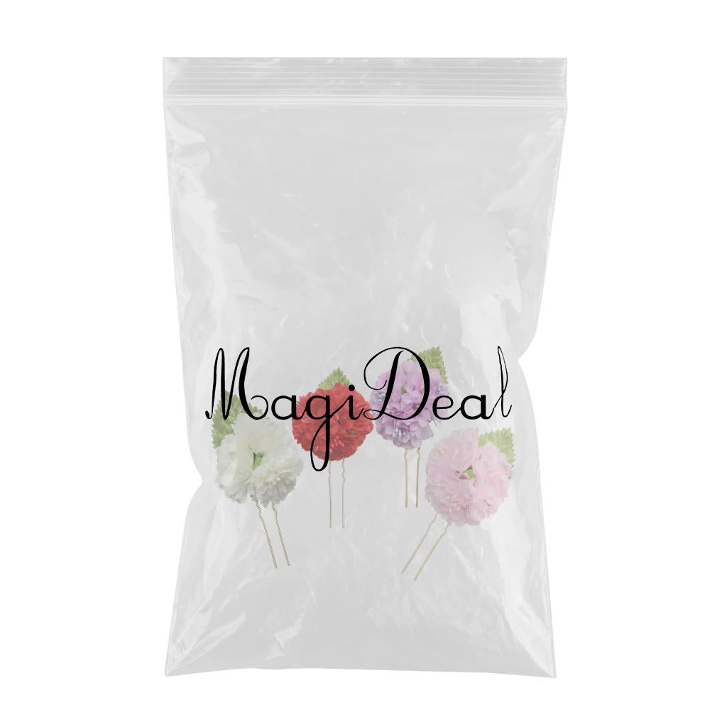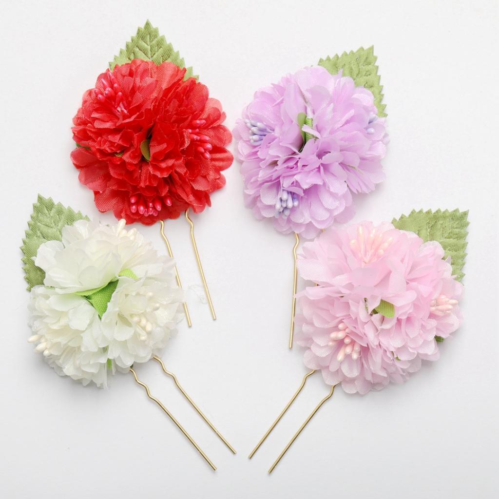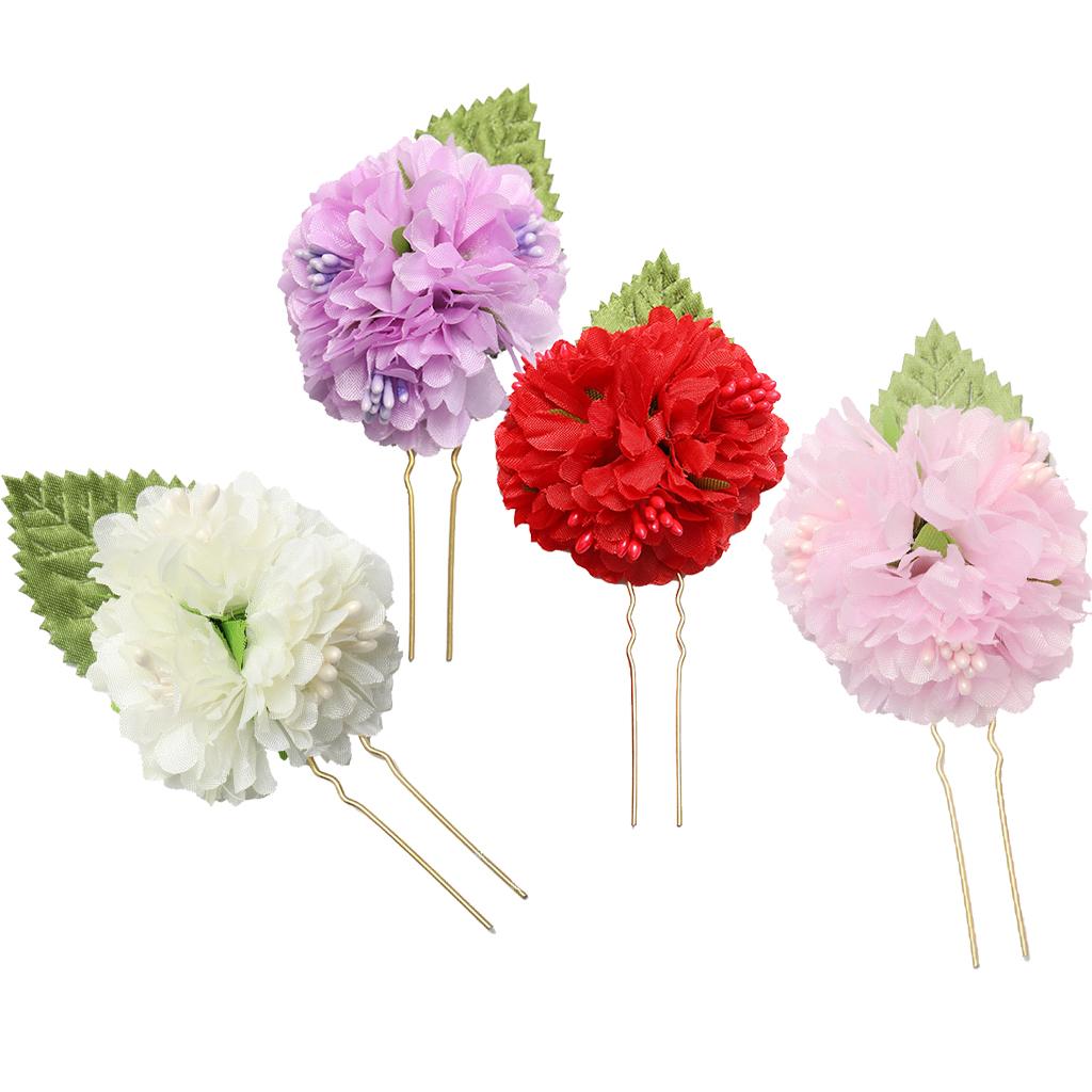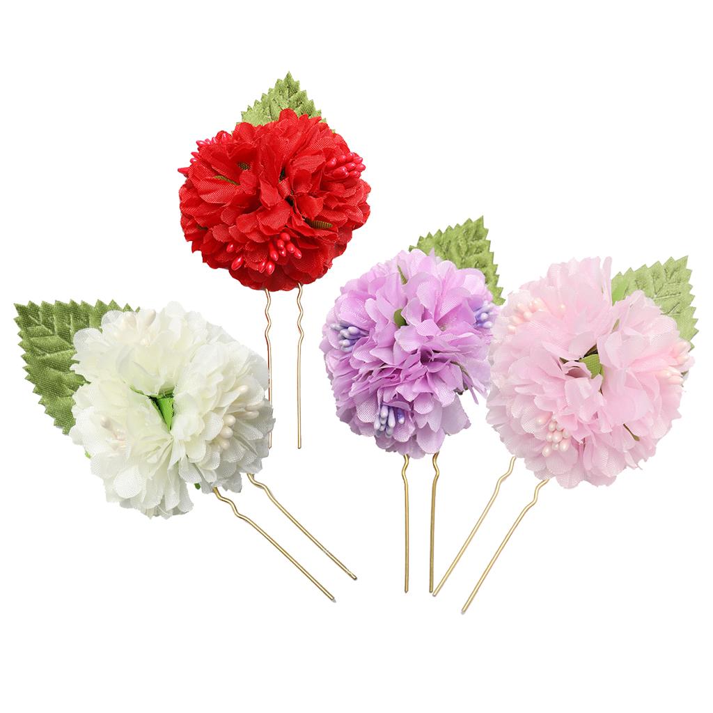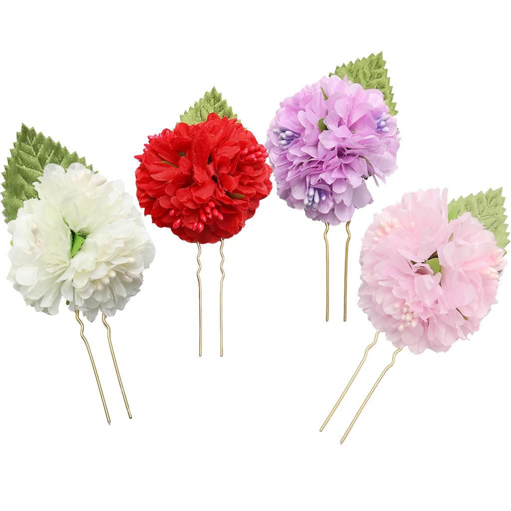 4Pcs/lot Bridal Flower Hairpin (1pc Red +1pc Lavender +1pc Milky white +1pc Pink)