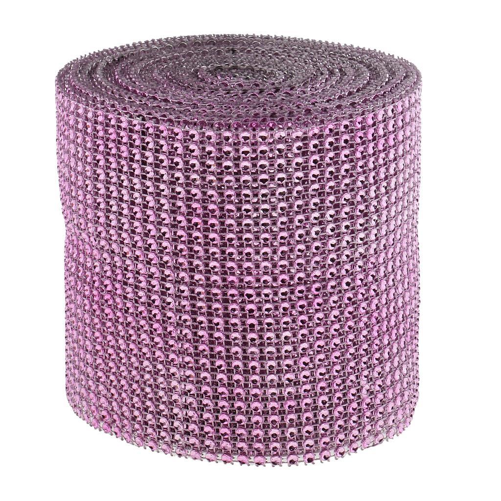 4"x10yard 24 Row Pink Acrylic Bling Rhinestone Diamond Ribbon Roll Mesh Wrap for Craft Supplies
