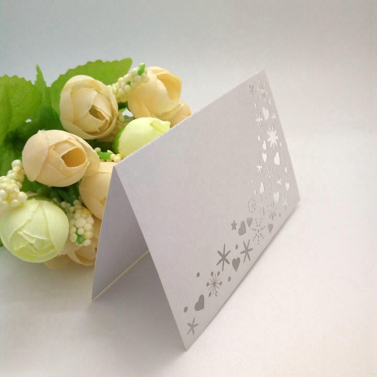 50 flower heart Hollow Out Name Place Cards Wedding Guest Table Cards White