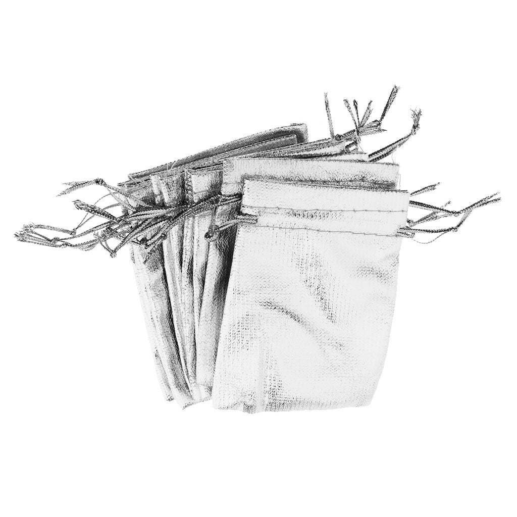 50 Piece Organza Bags Wedding Favor Drawstring Jewelry Pouch Gift Bag Silver