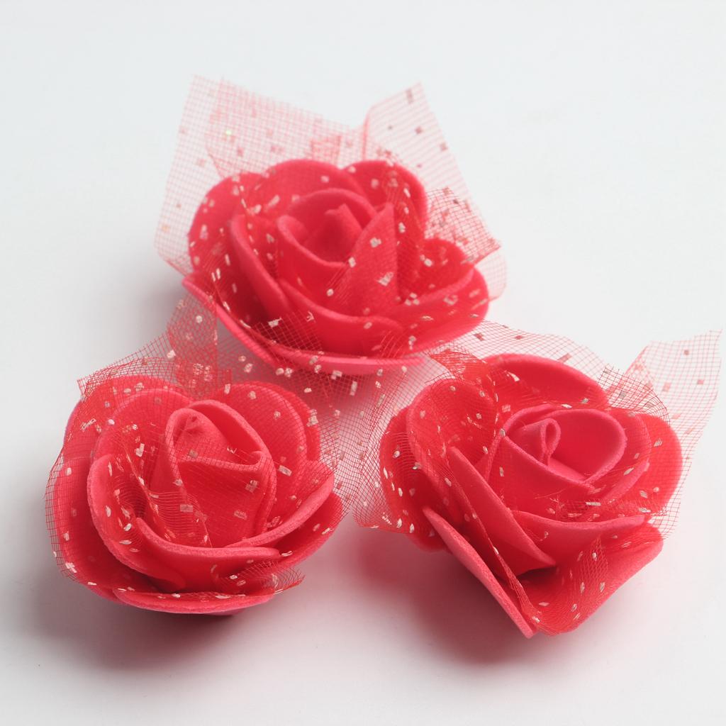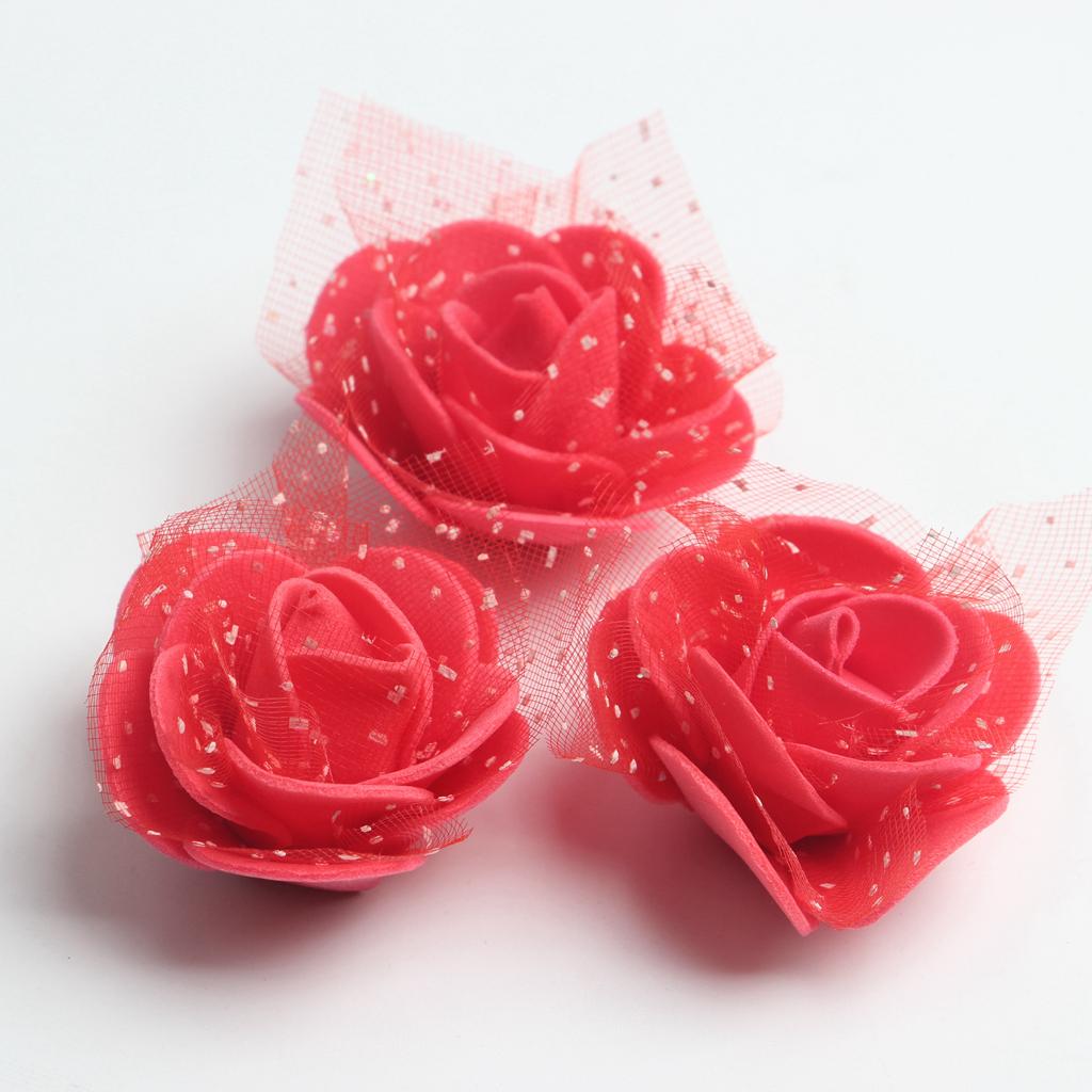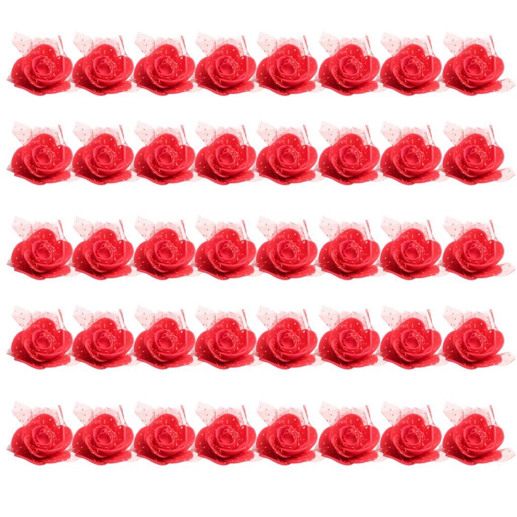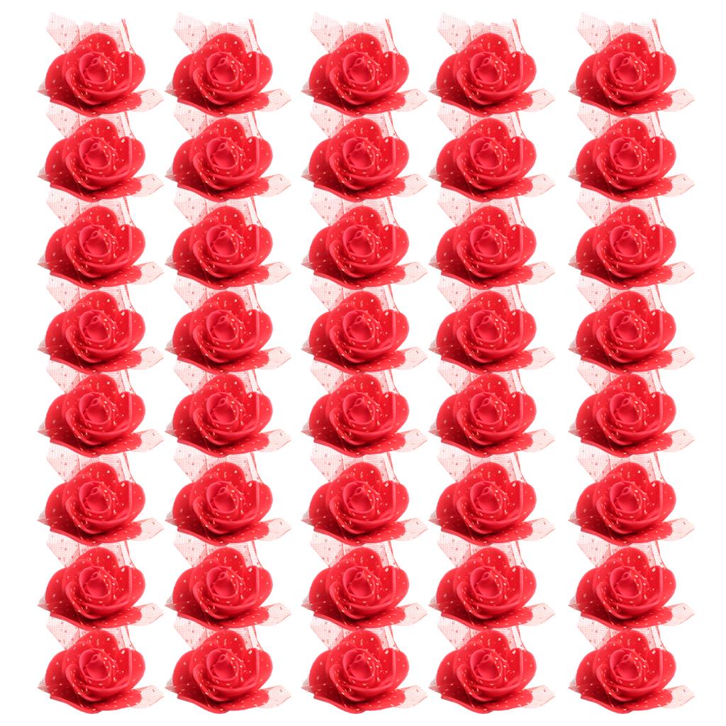50 Pieces Artificial Foam Mesh Rose Flower Heads for Wedding 4cm Red