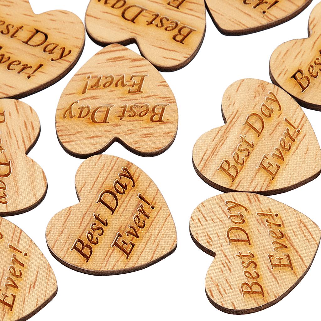 50Pcs "BEST DAY EVER" Wooden Heart Chips Wedding Decor Embellishments Crafts