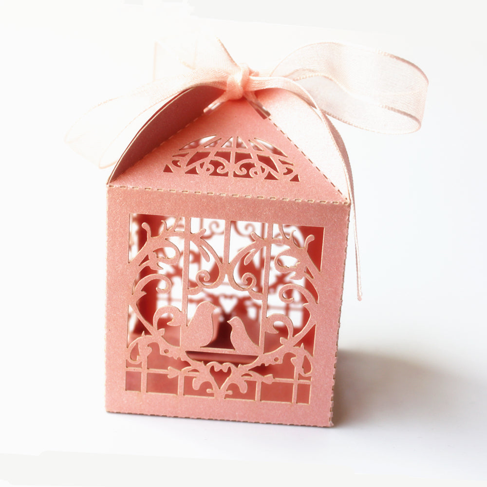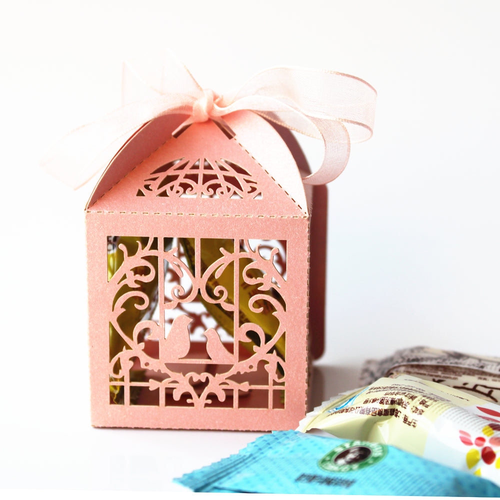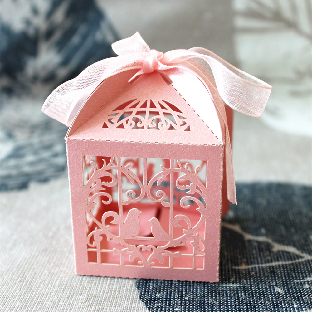 50pcs Bird Candy Gift Box with Ribbon Wedding Party Favors Decoration Pink