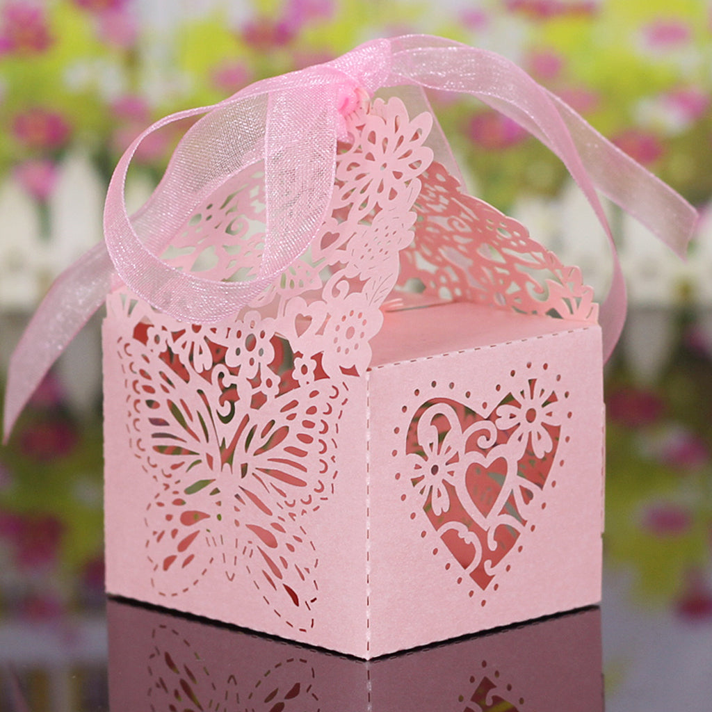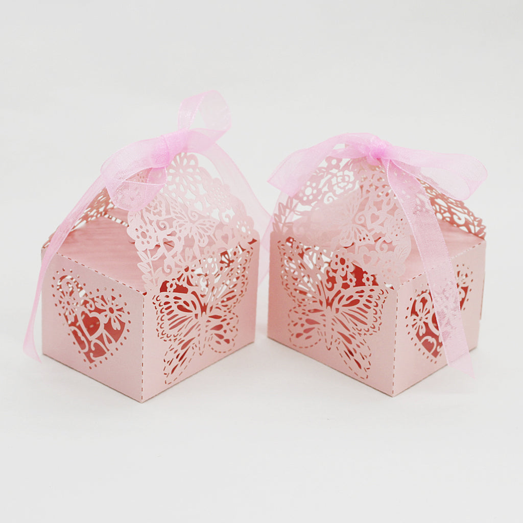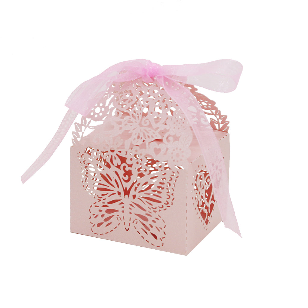 50Pcs Butterfly Favor Ribbon Gift Candy Boxes Wedding Party Decor Pink