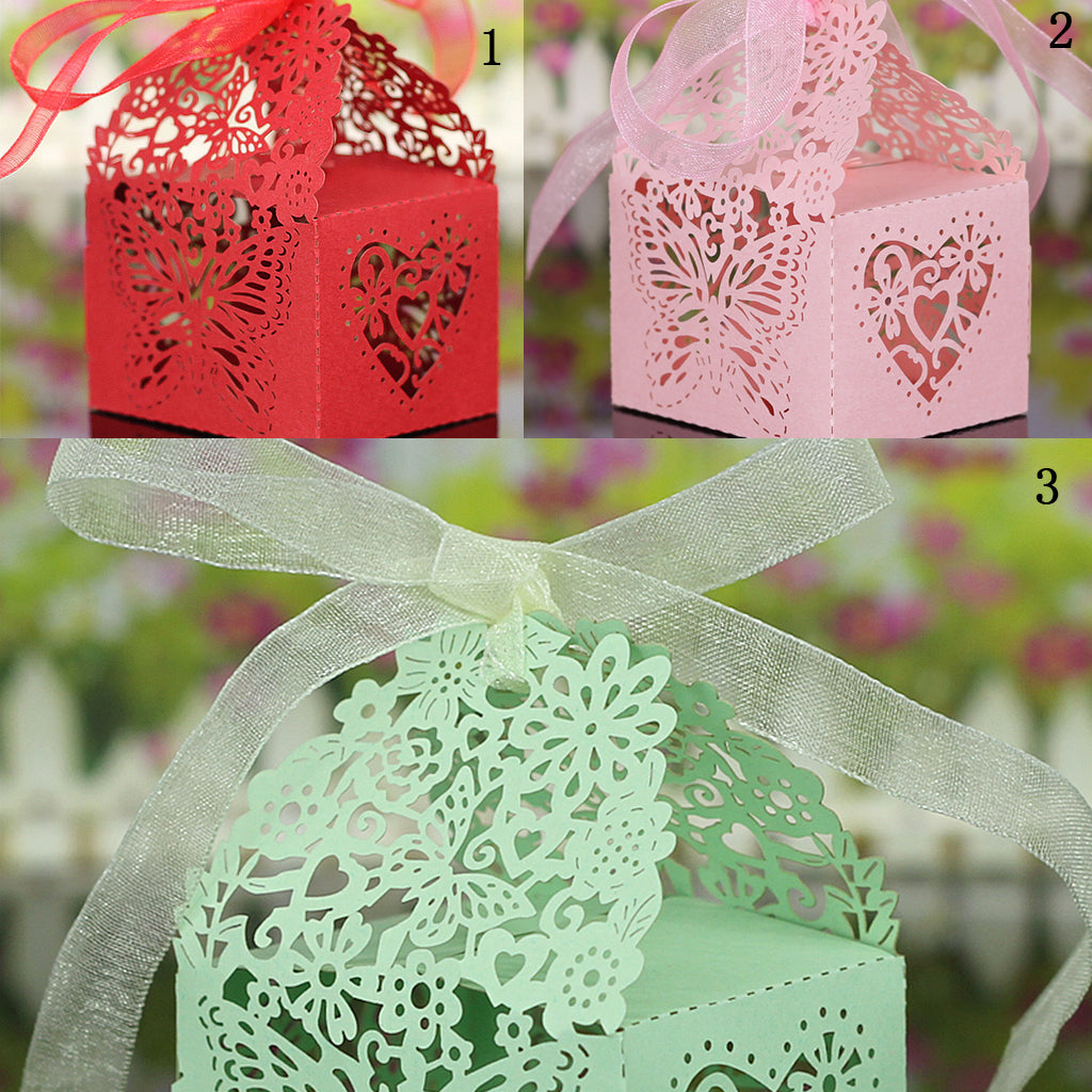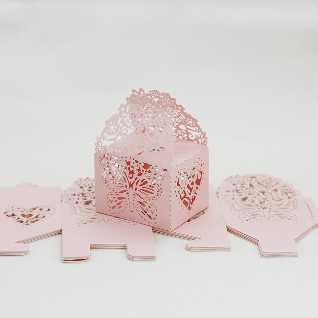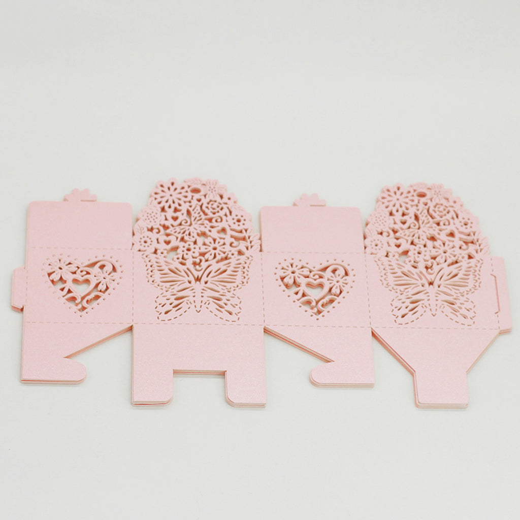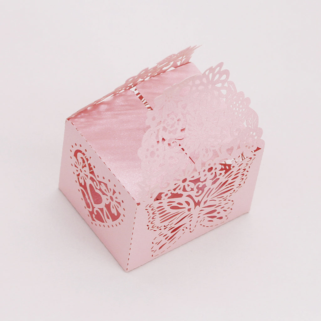 50Pcs Butterfly Favor Ribbon Gift Candy Boxes Wedding Party Decor Pink