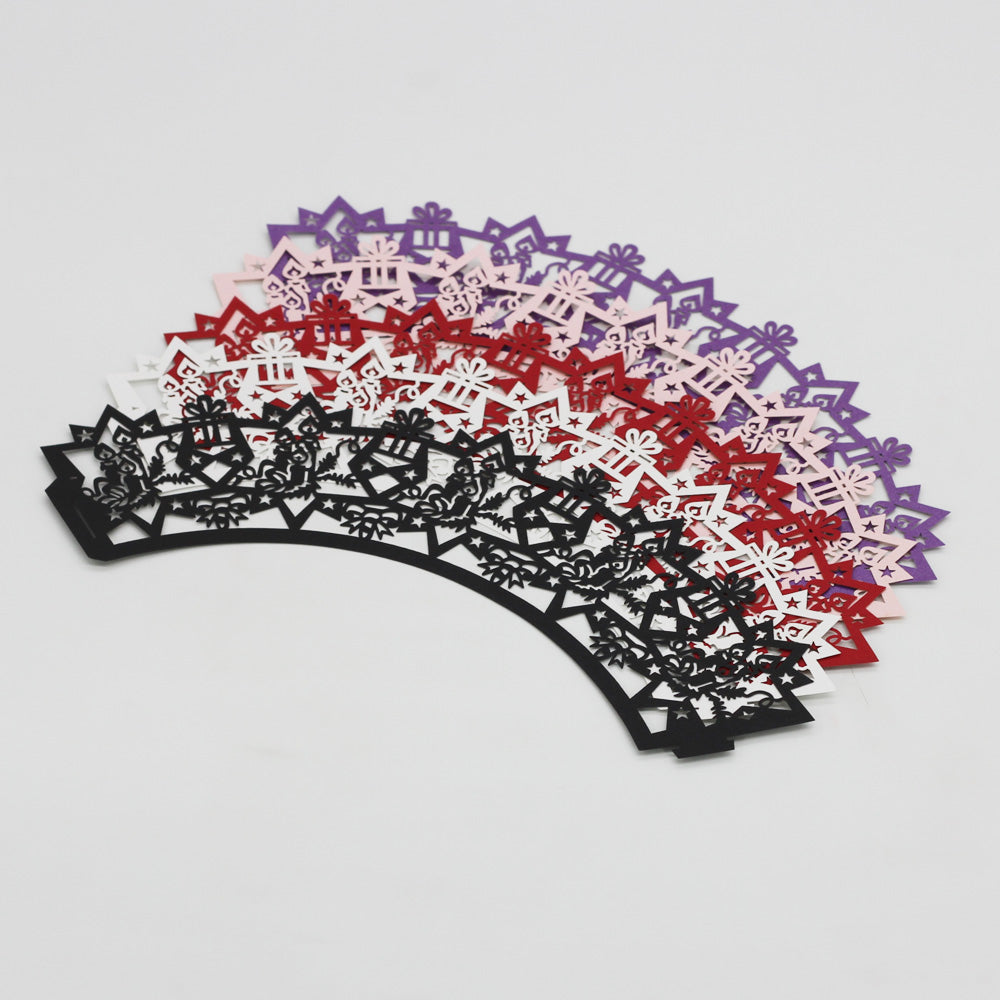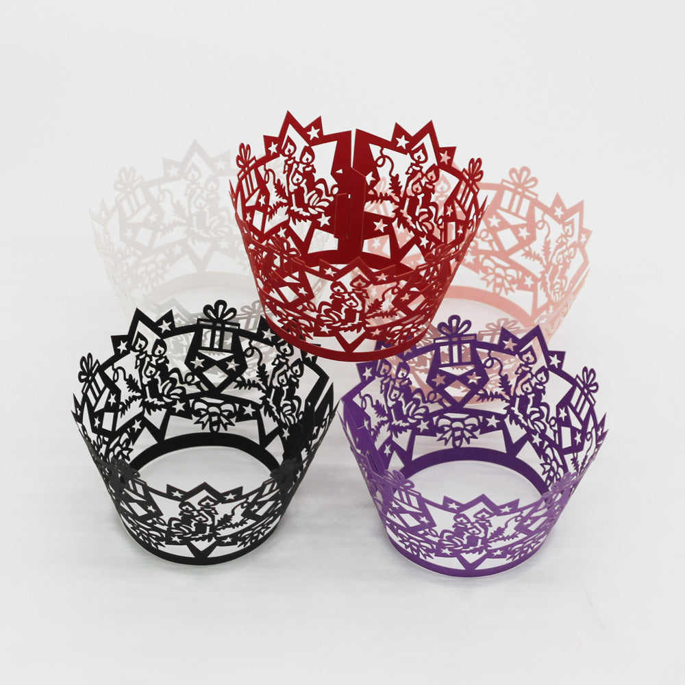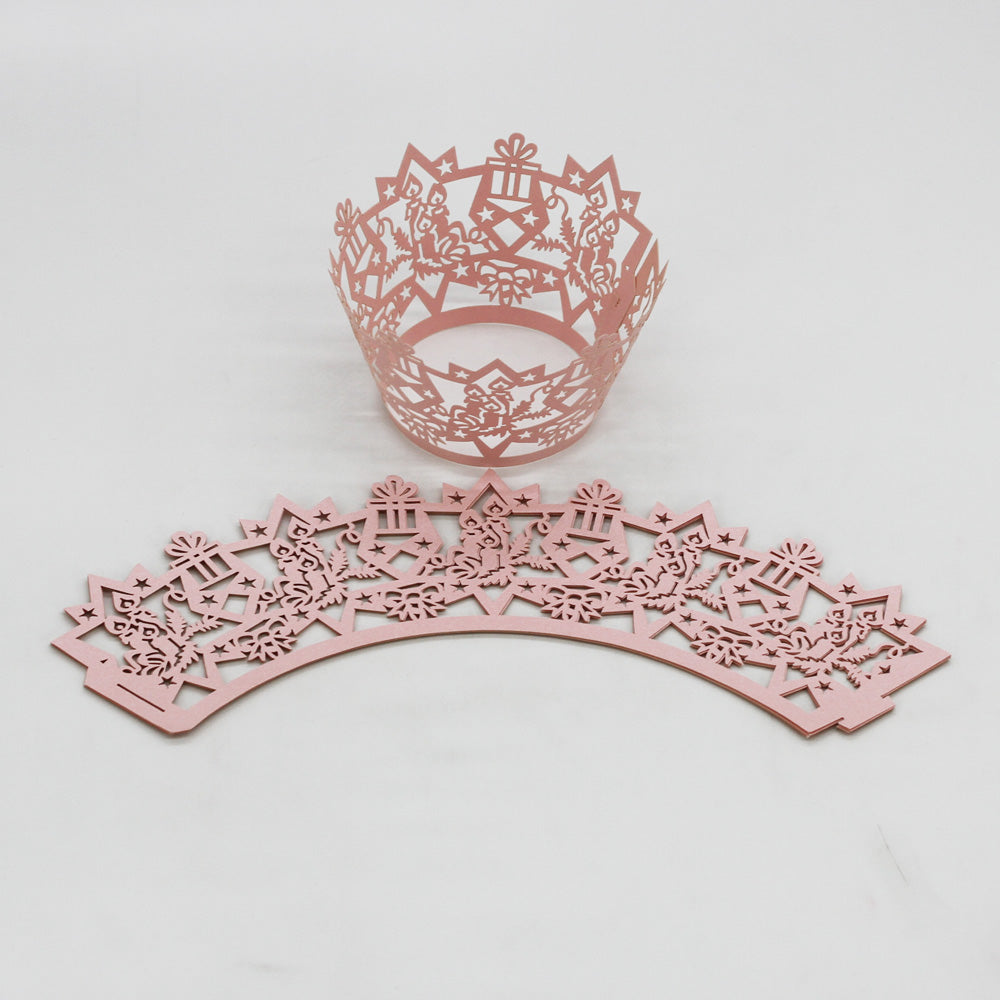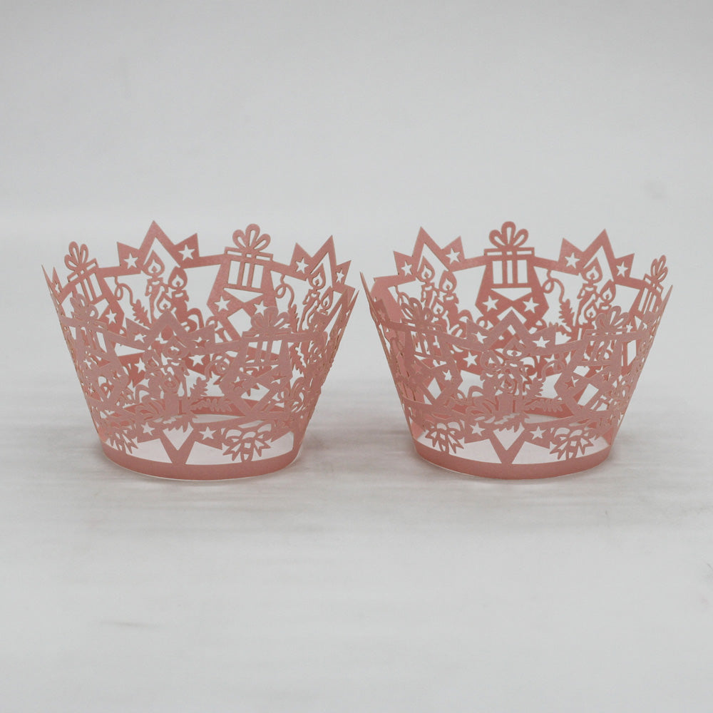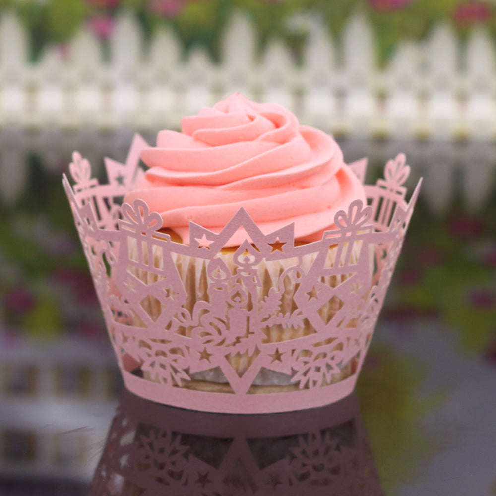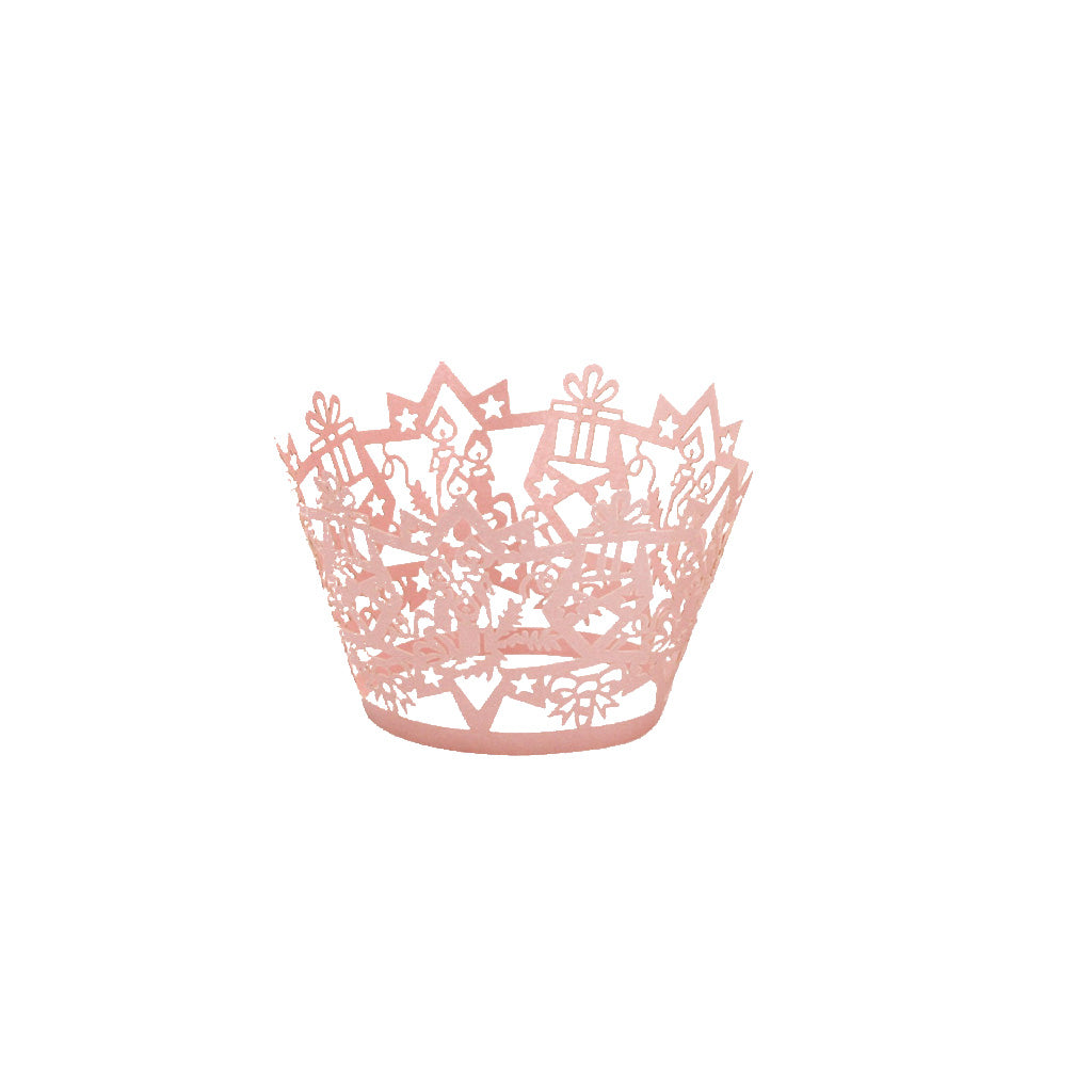 50Pcs Christmas Hollow Edge Cupcake Liner Case Muffin Wrapper Decor Pink