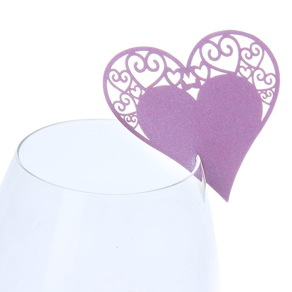 50pcs Heart Table Name Place Card for Wine Glass Wedding Party Decoration