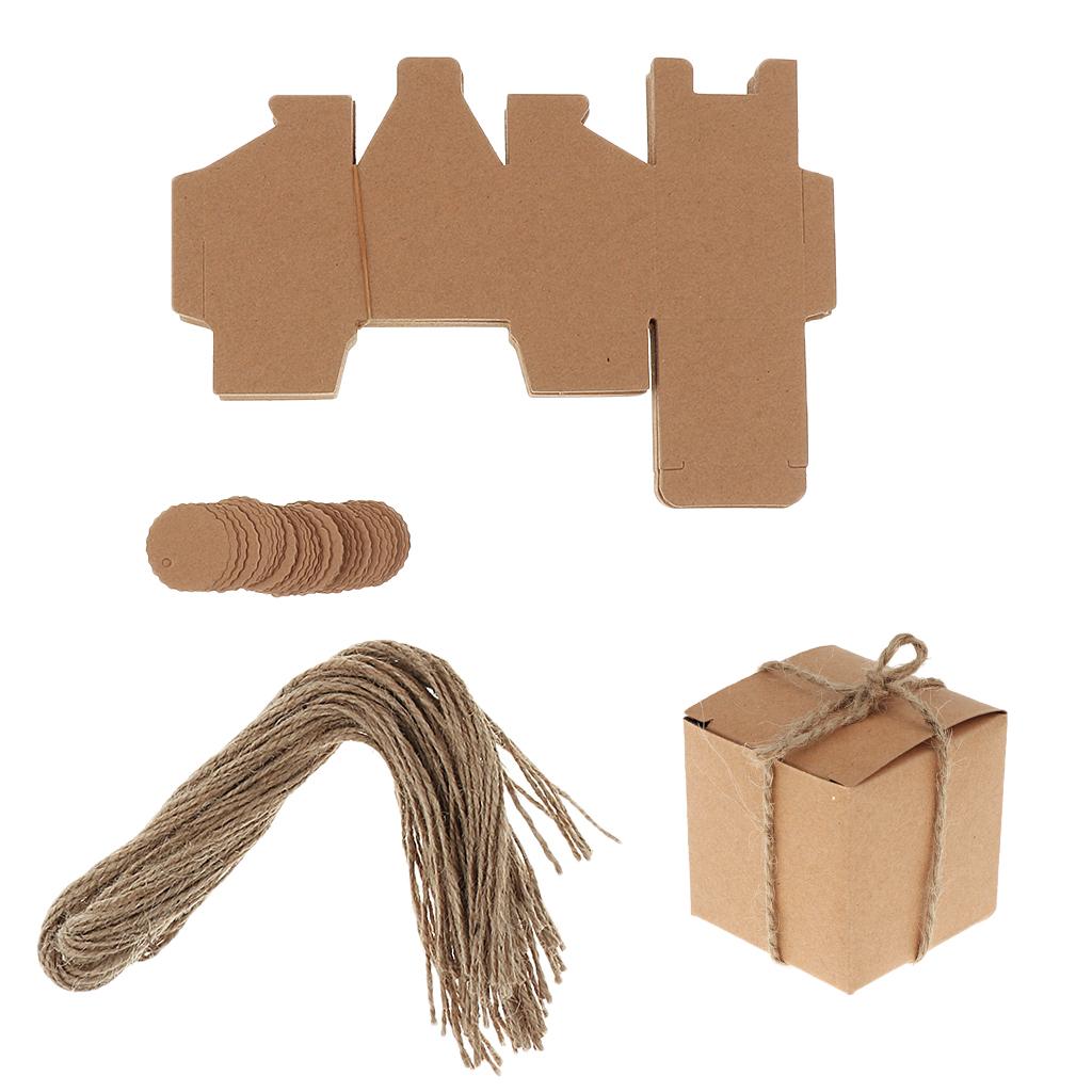 50pcs Kraft Brown Shabby Chic Sweets Candy Gift Boxes Wedding Party Favor