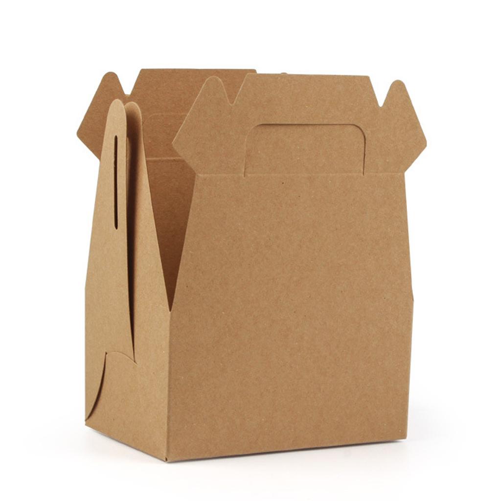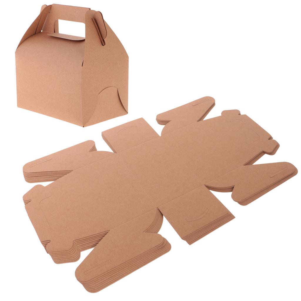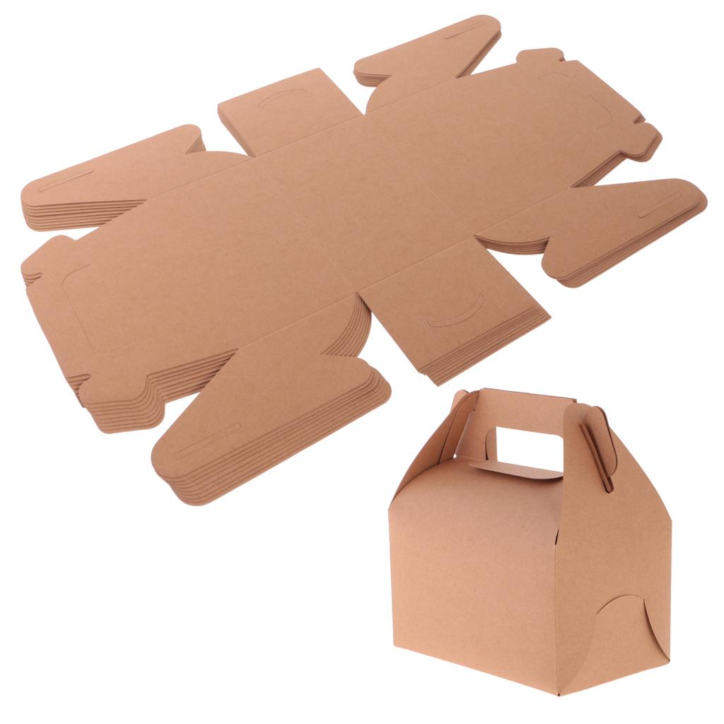 50pcs Kraft Paper Candy Cake Cookies Handle Gift Boxes Wedding Favor Brown