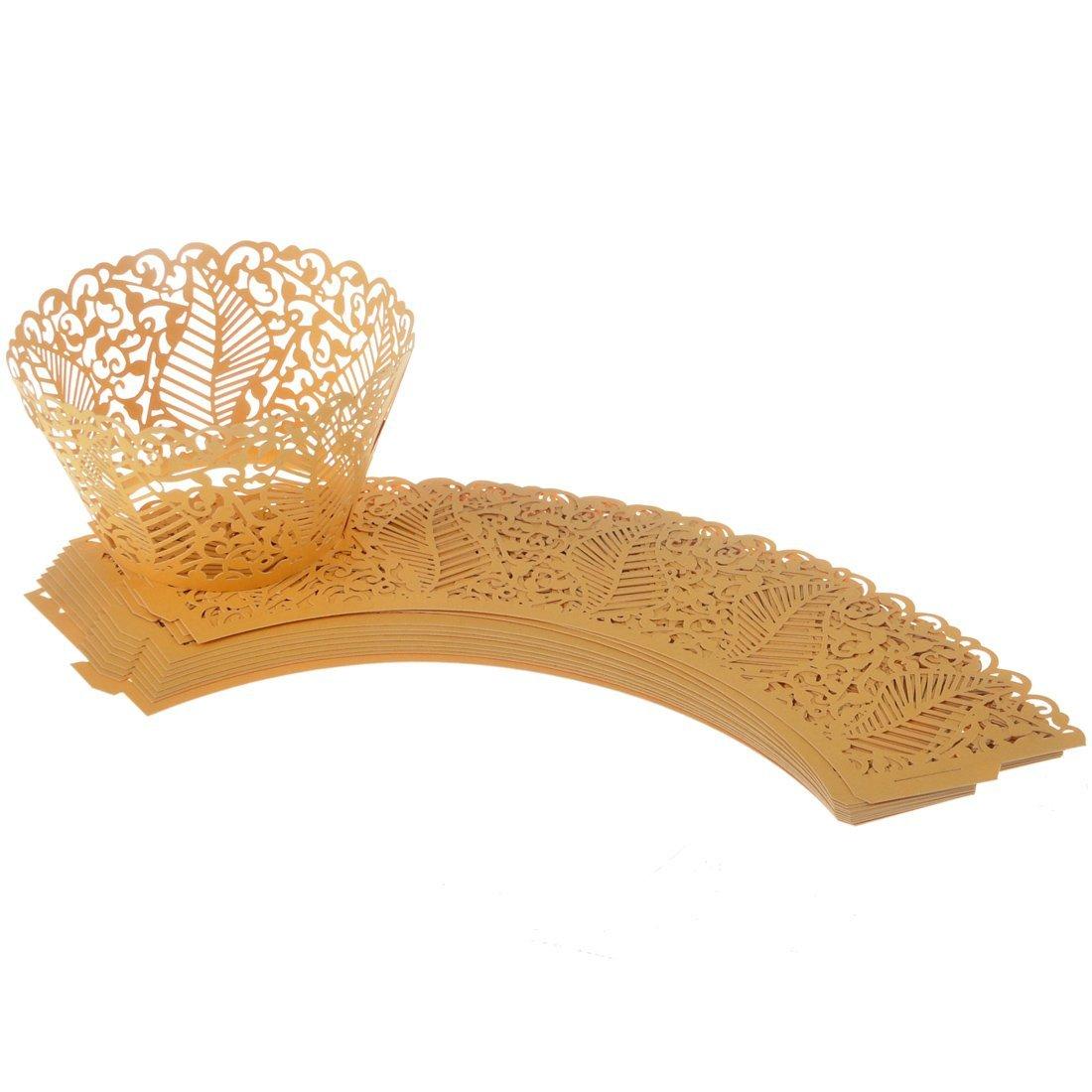50pcs Leaf Muffin Cup Cake Wrapper Case Party Decor Golden Yellow