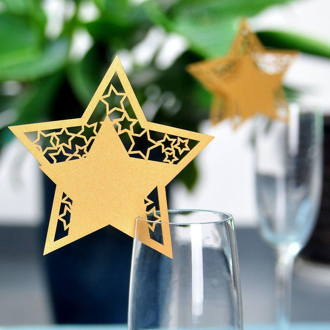 50pcs Star Wine Glass Name Place Cards Wedding Christmas Decoration Gold