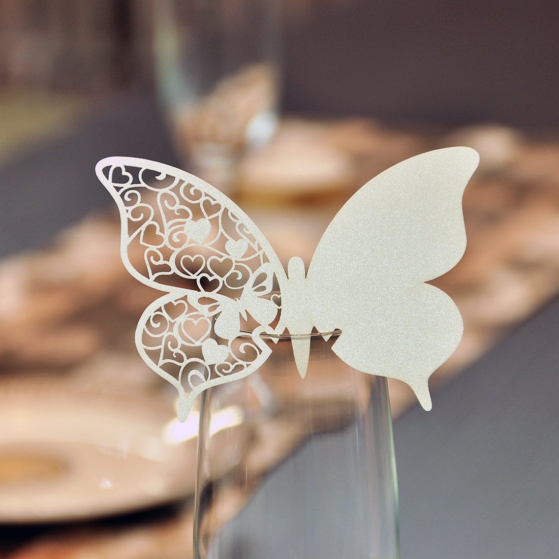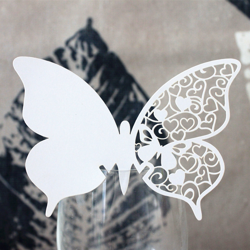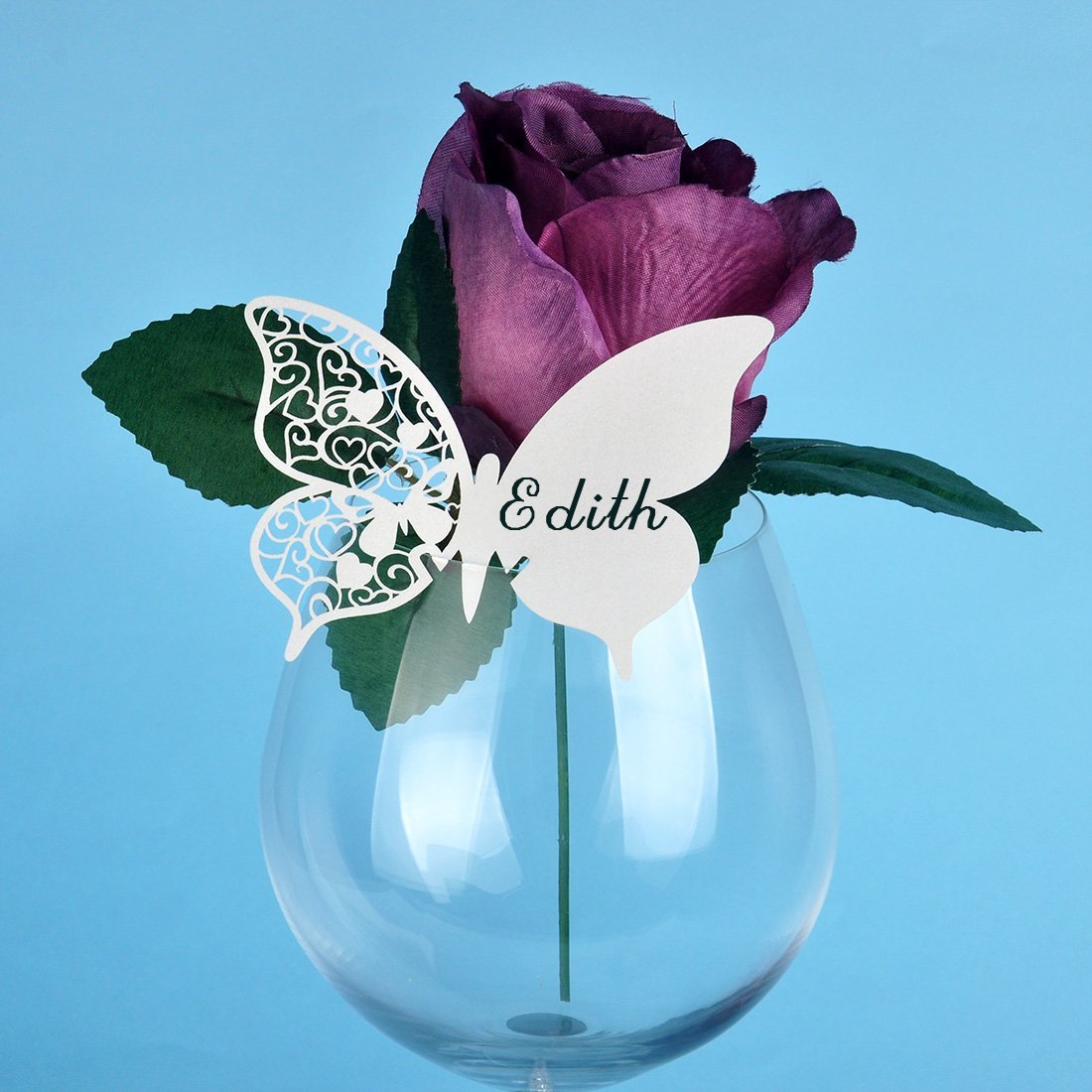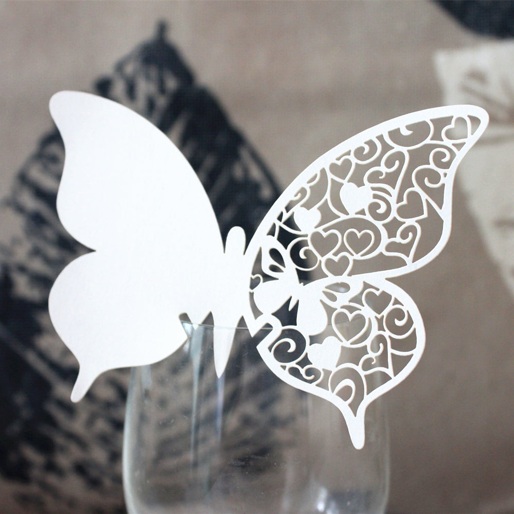 50x Butterfly Wine Glass Table Name Place Card Wedding Christmas Favor White