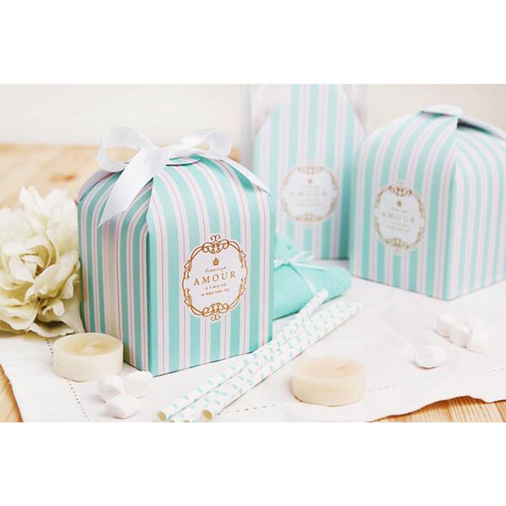 50x Classic Stripes Candy Lolly Box Wedding Party Favor Gift Cookie Bag Blue