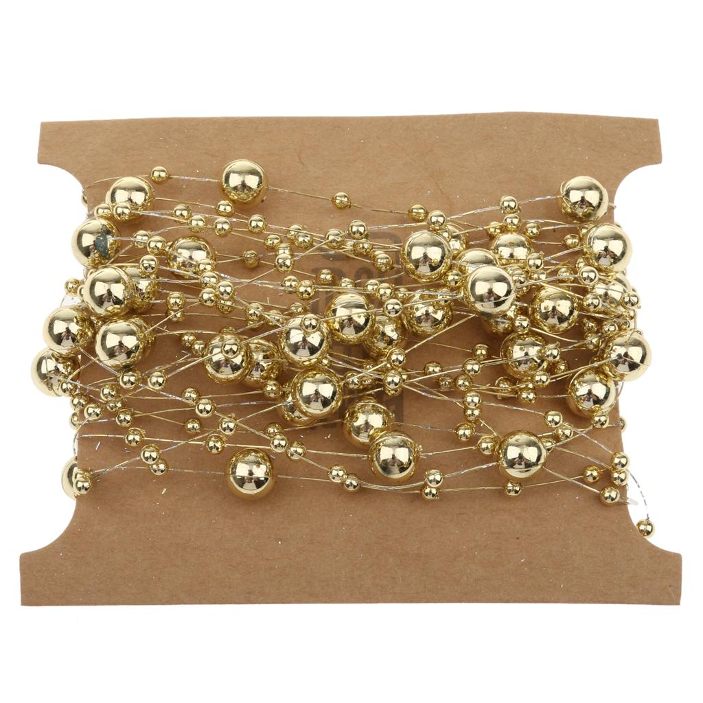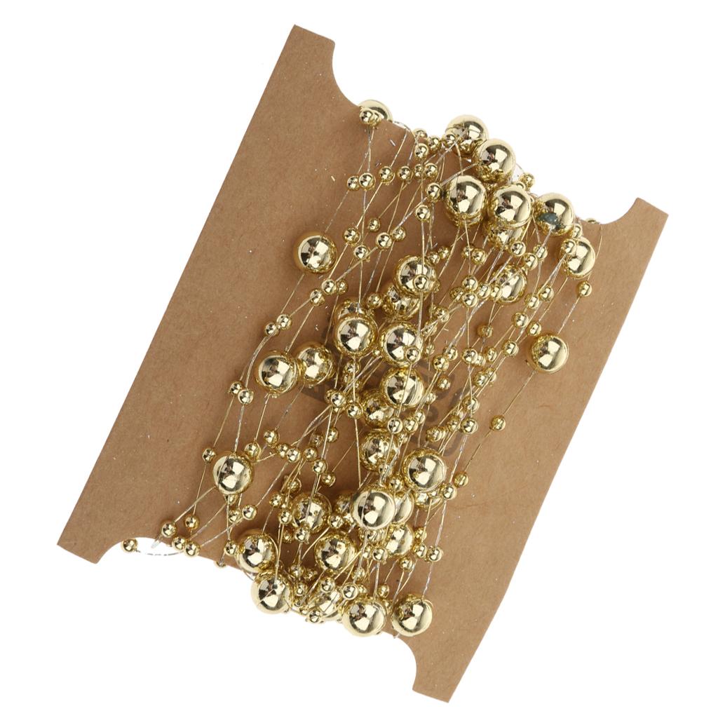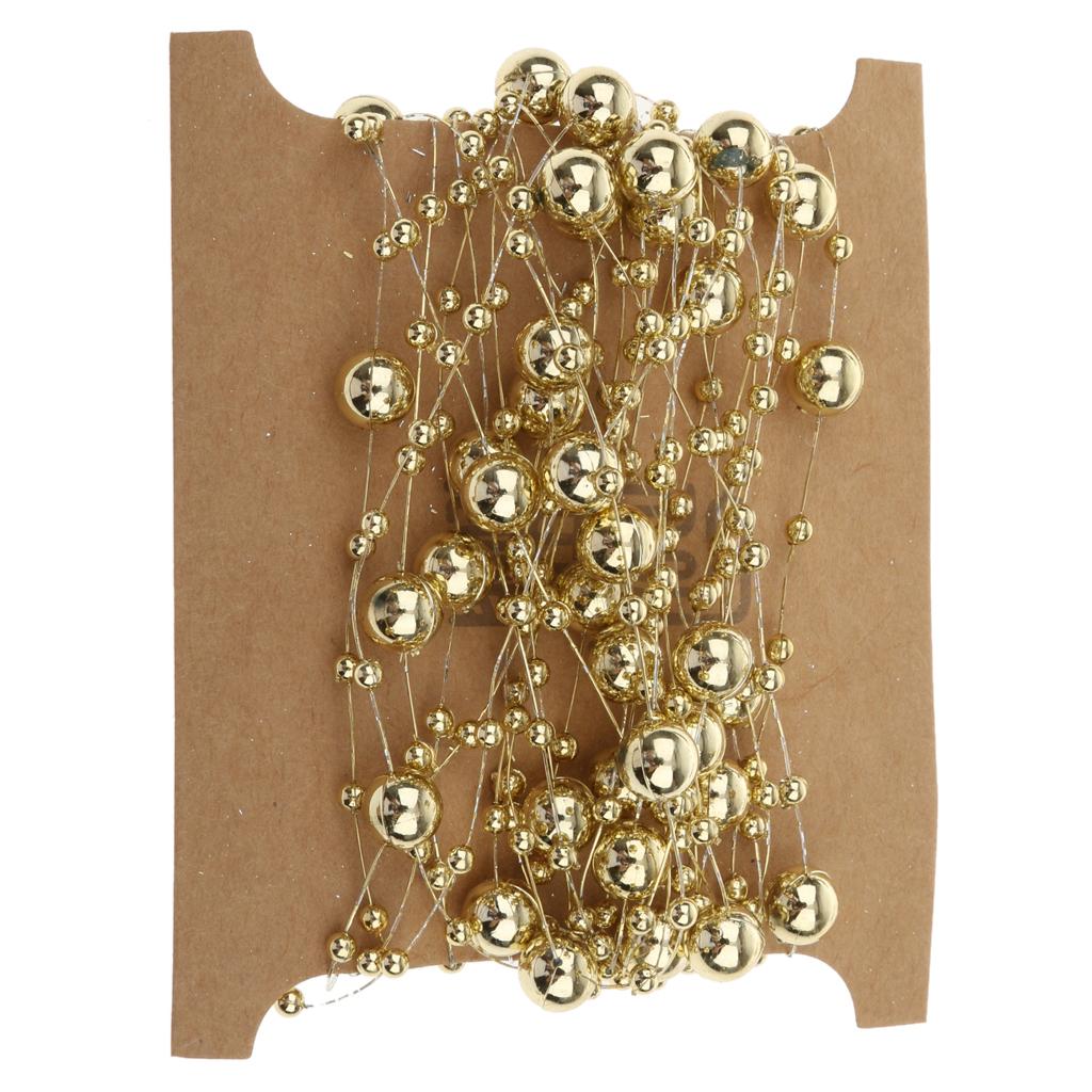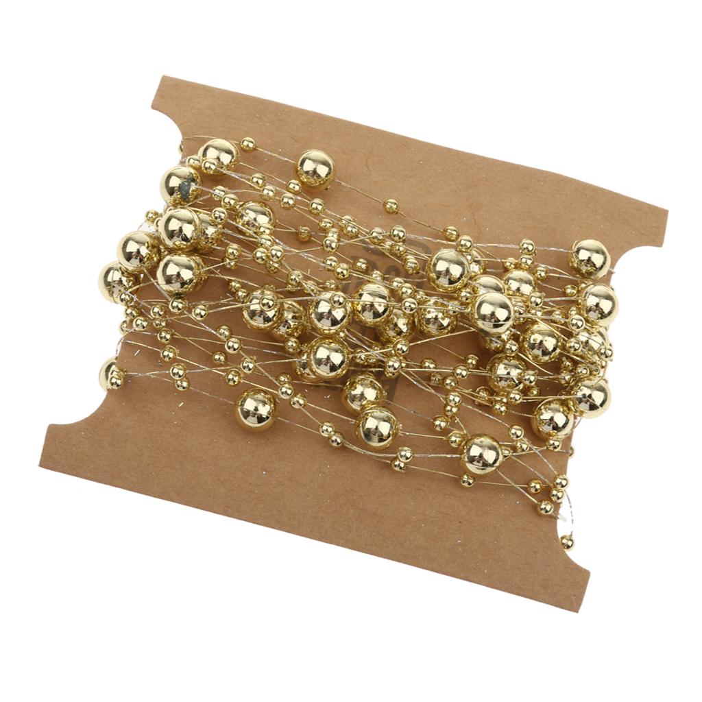 5M Fishing Line Gold Plated Pearl Mixed Size Bead Chain Trim DIY Decoration