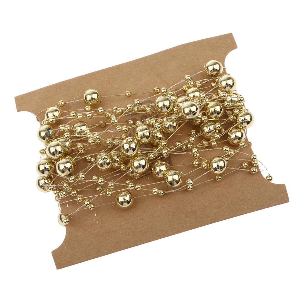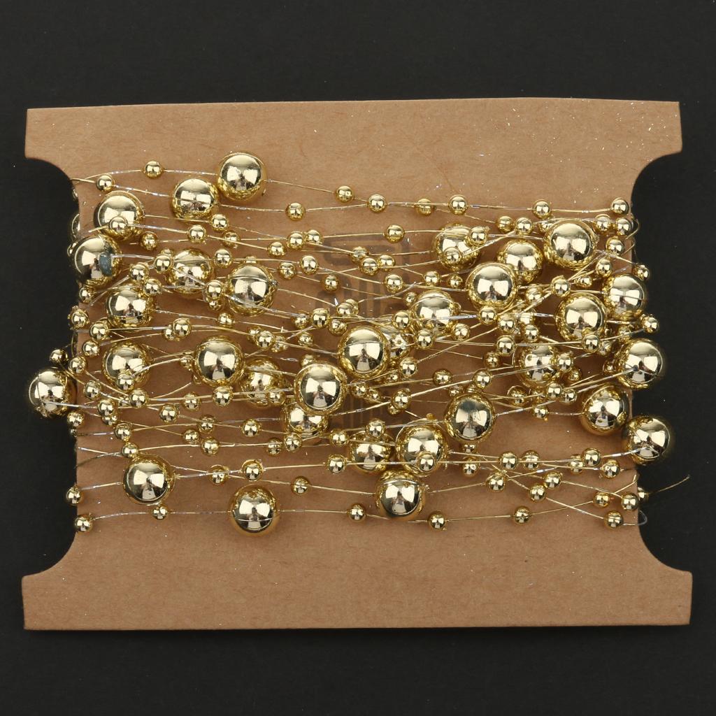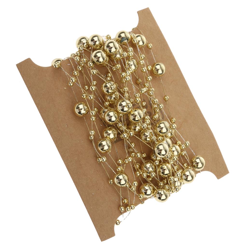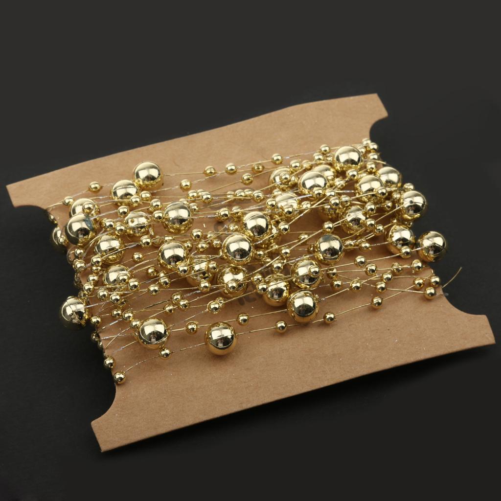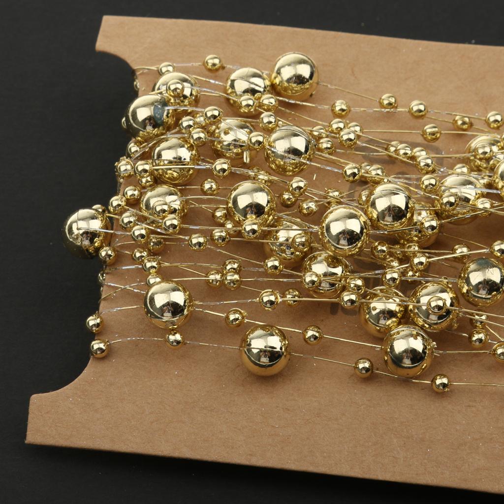 5M Fishing Line Gold Plated Pearl Mixed Size Bead Chain Trim DIY Decoration