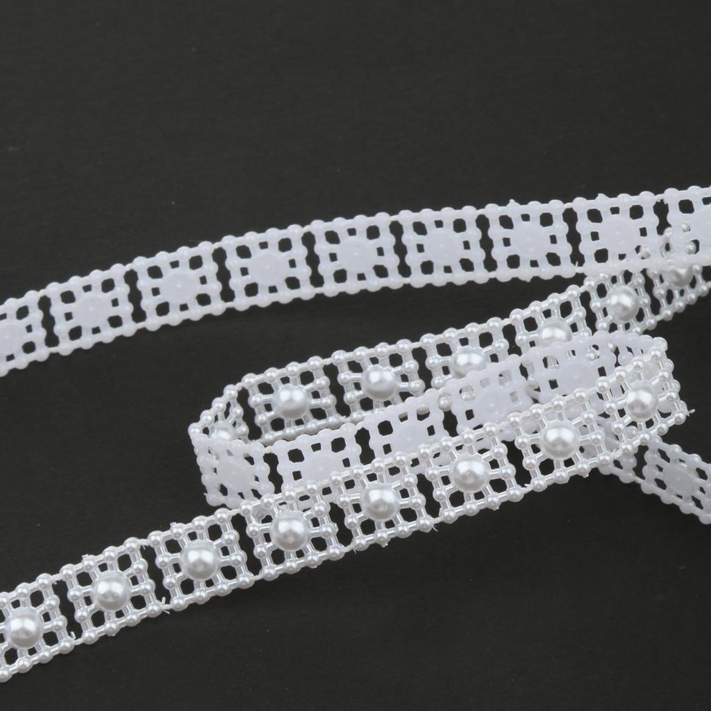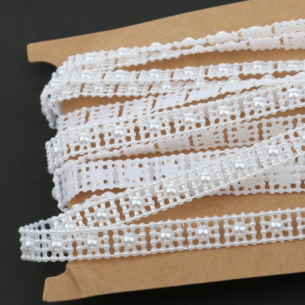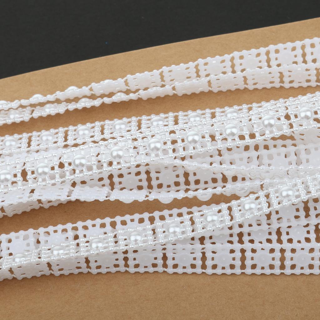 5M Pearl Bead Cotton Line Chain For DIY Craft Wedding Decor 10mm Wide White