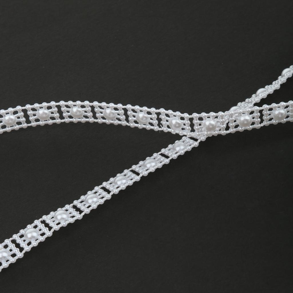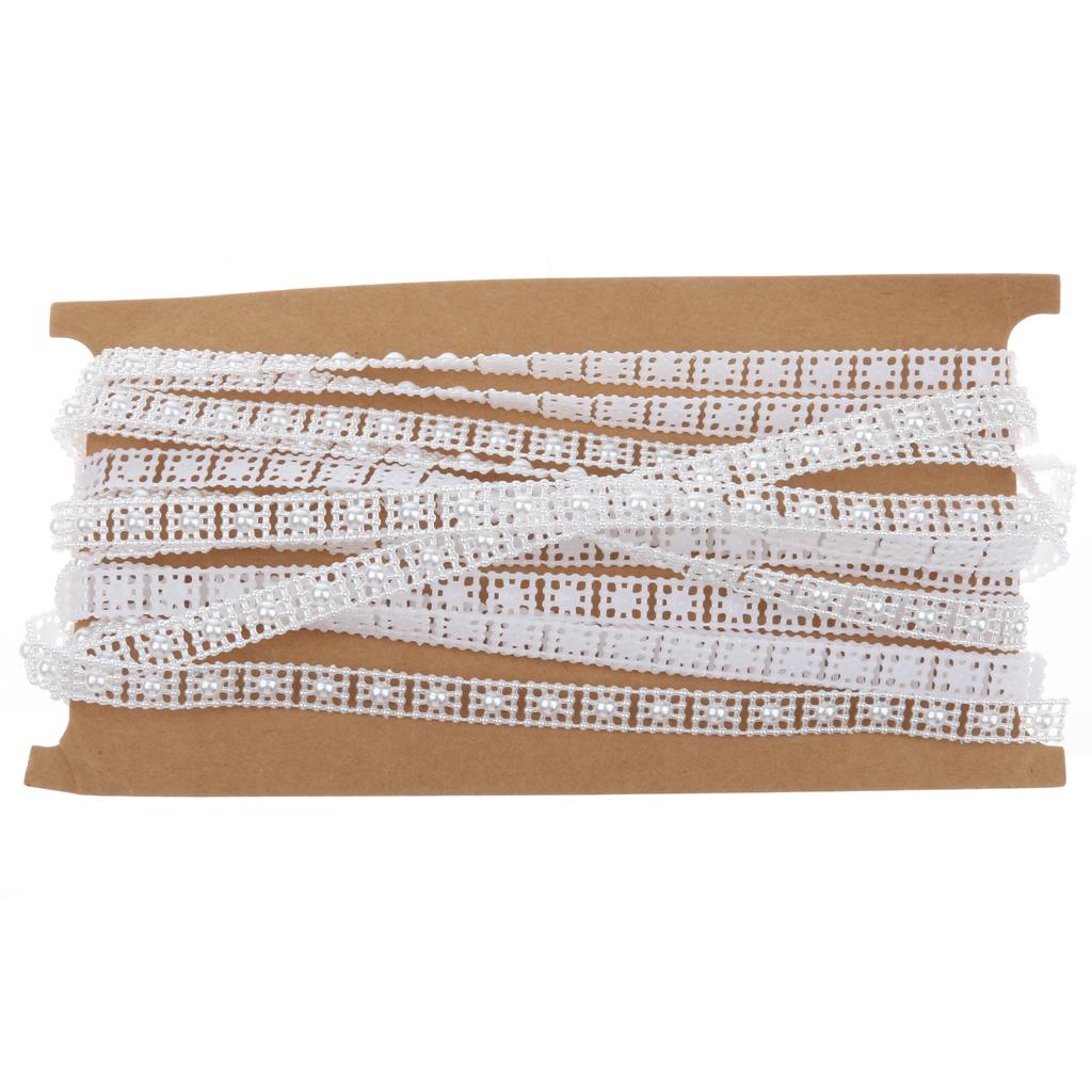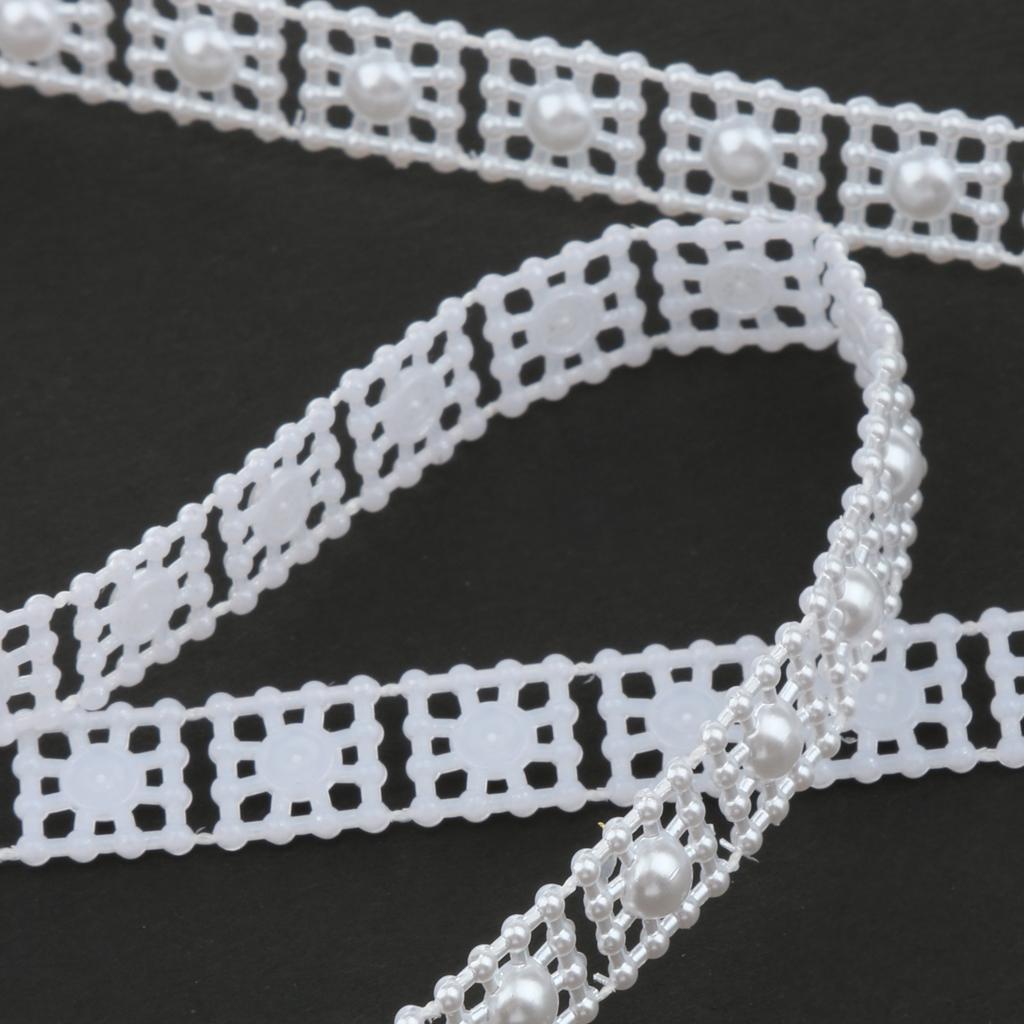 5M Pearl Bead Cotton Line Chain For DIY Craft Wedding Decor 10mm Wide White