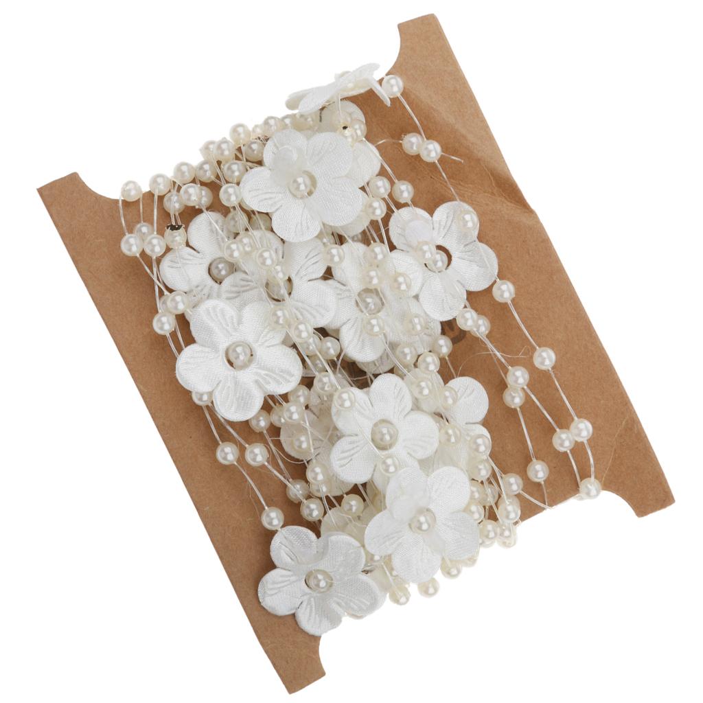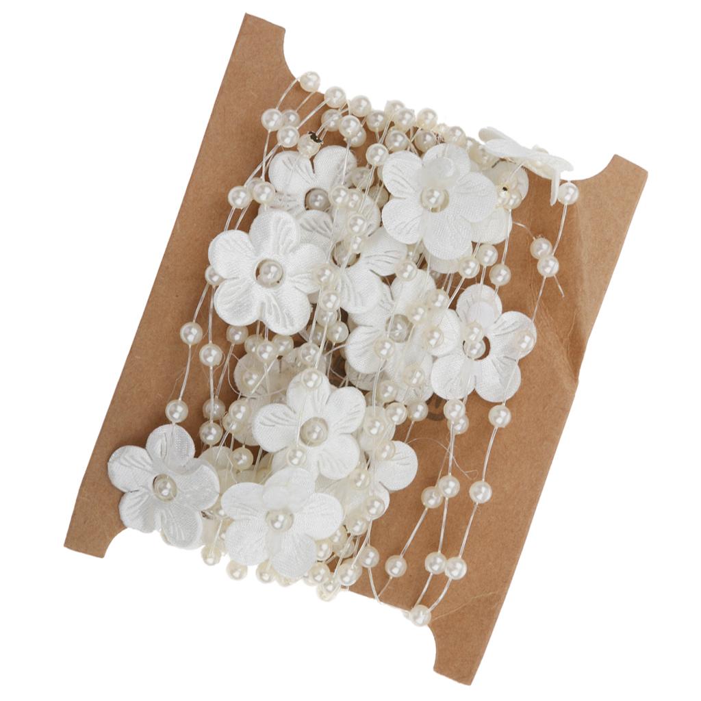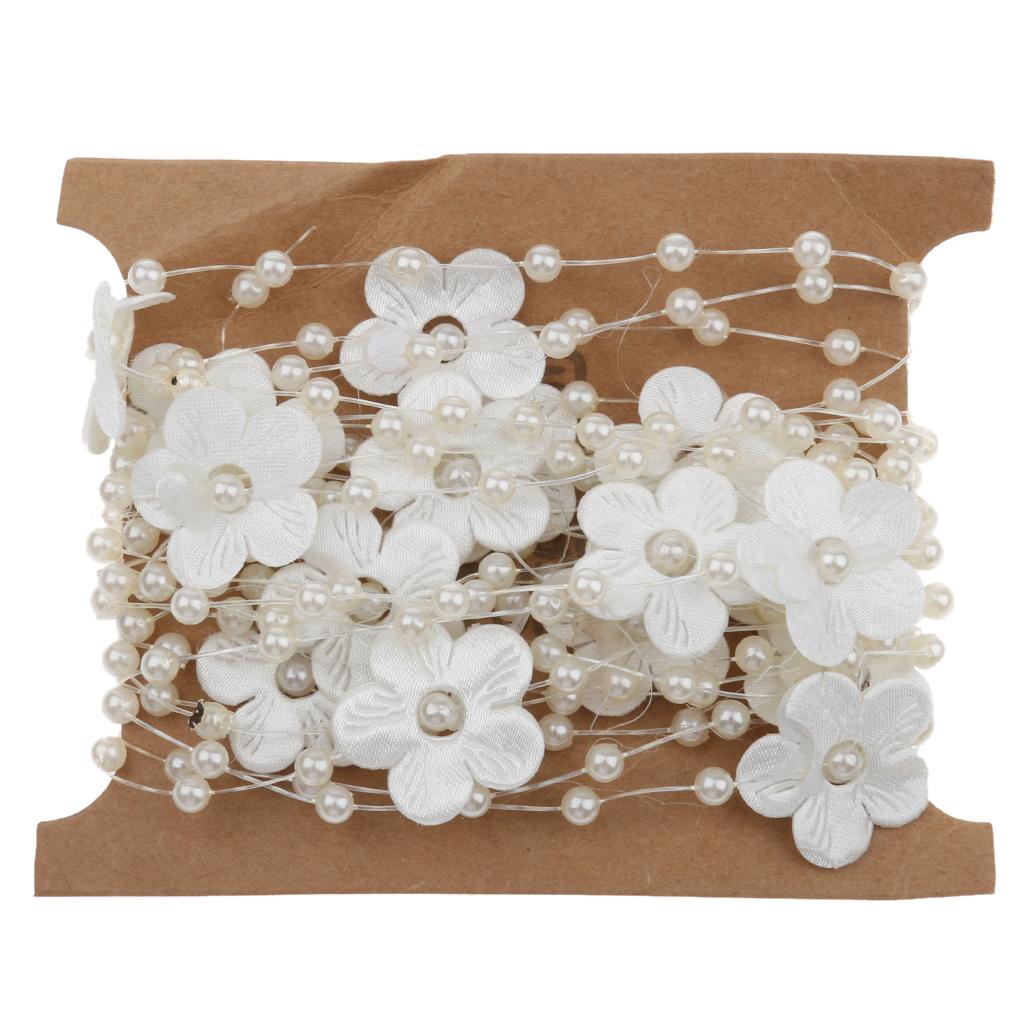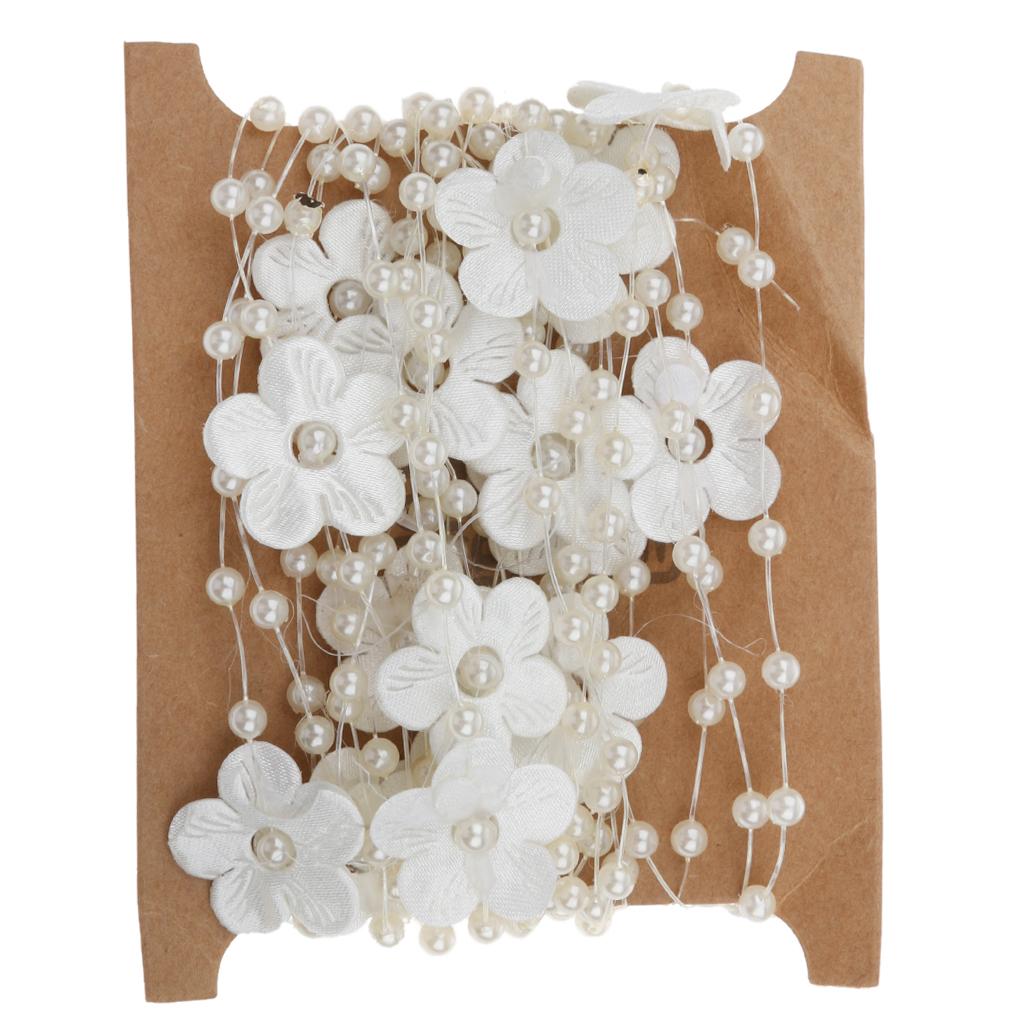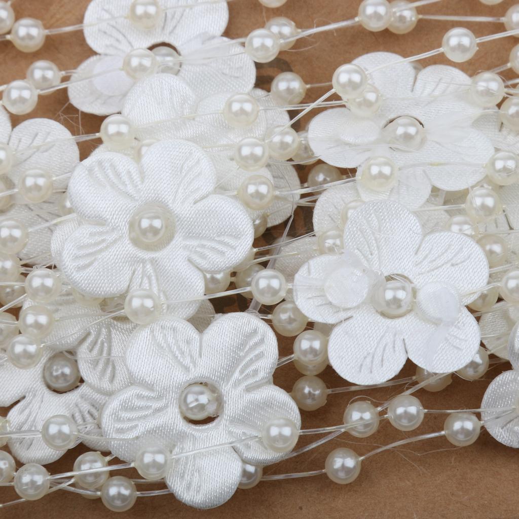 5M Satin Flower Fishing Line Handmade Pearl Bead Chain Trim DIY Decor Beige