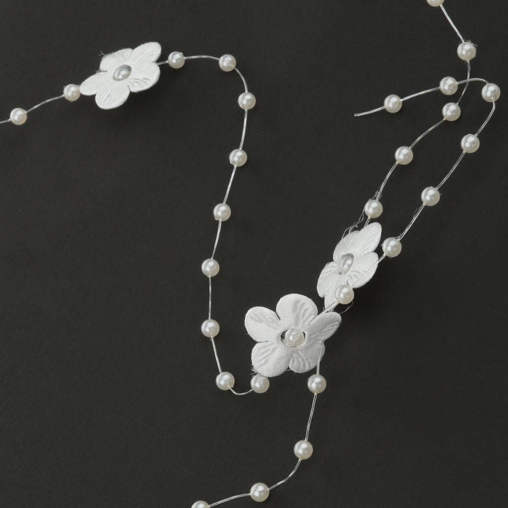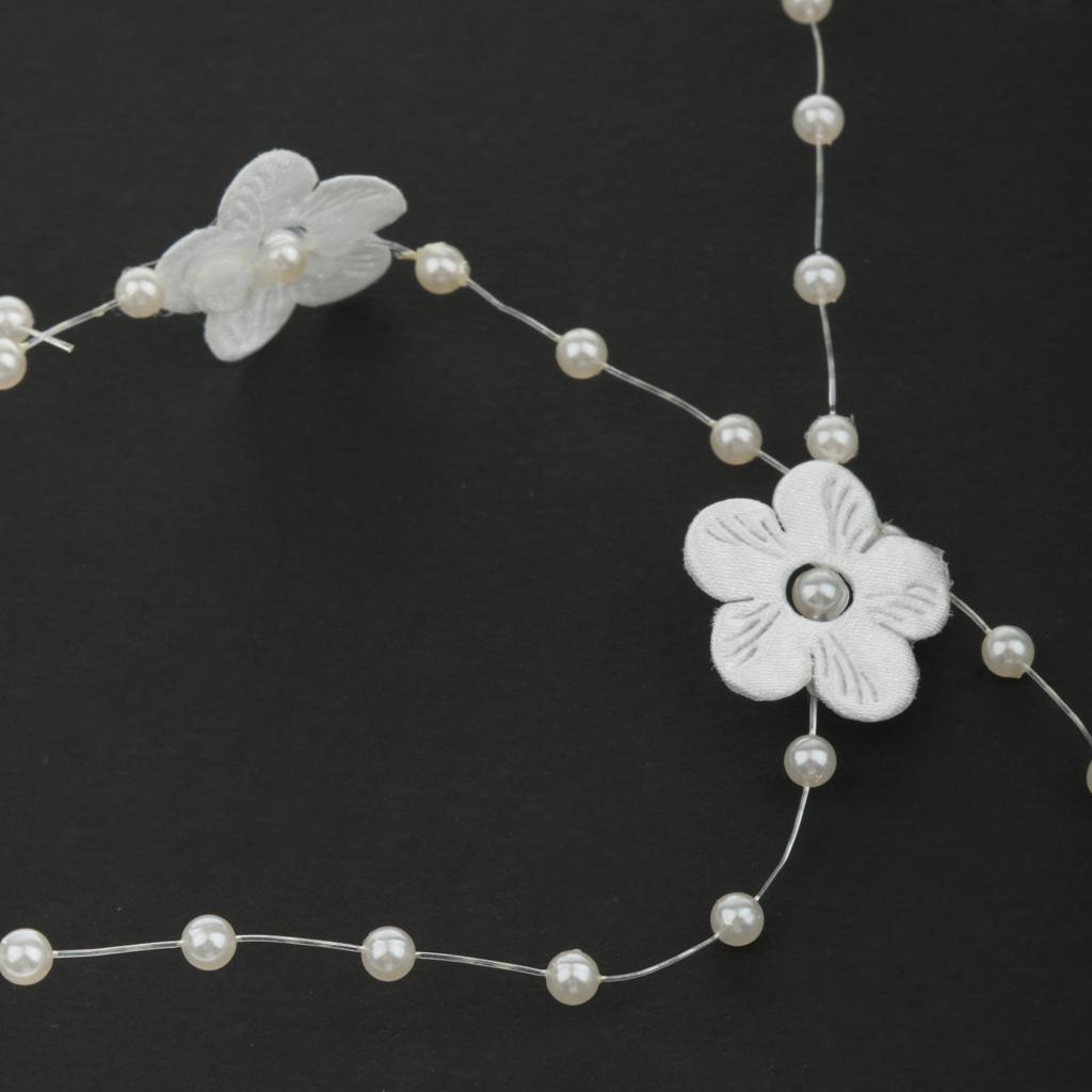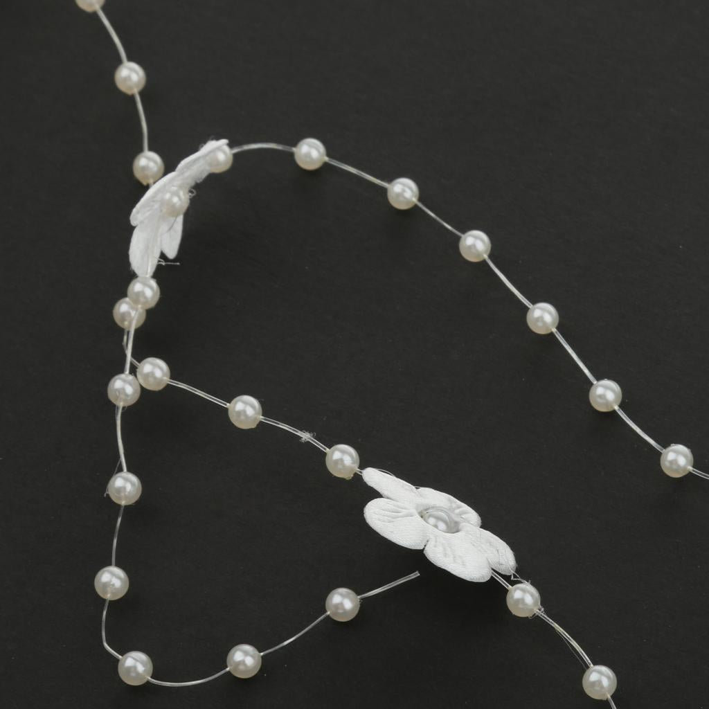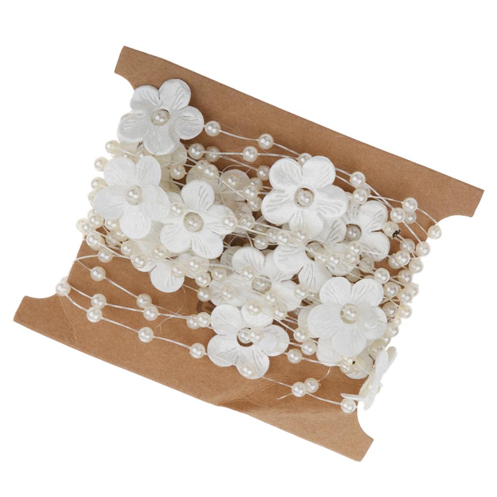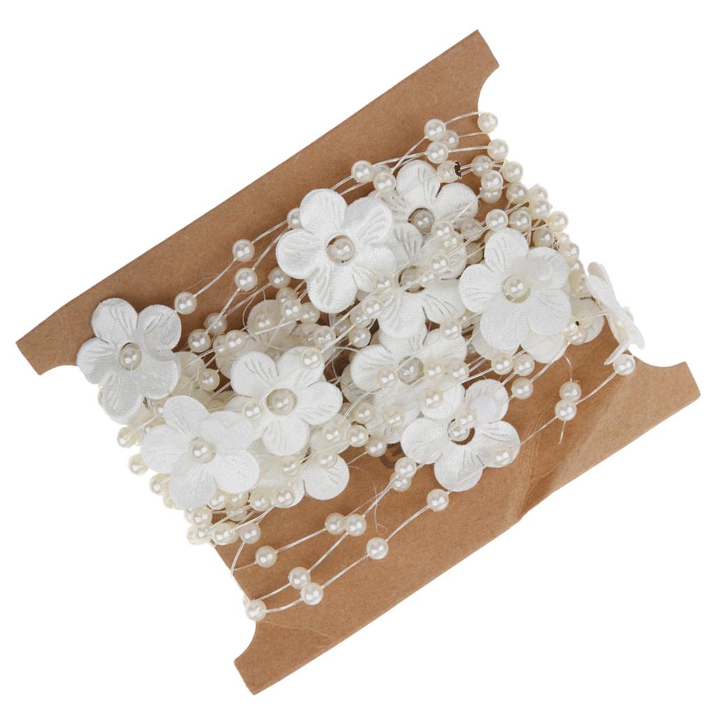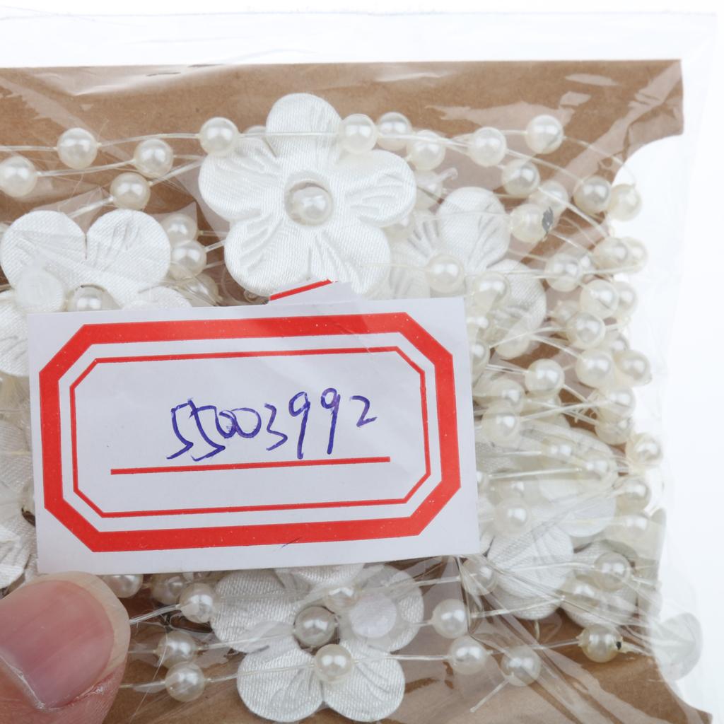 5M Satin Flower Fishing Line Handmade Pearl Bead Chain Trim DIY Decor Beige