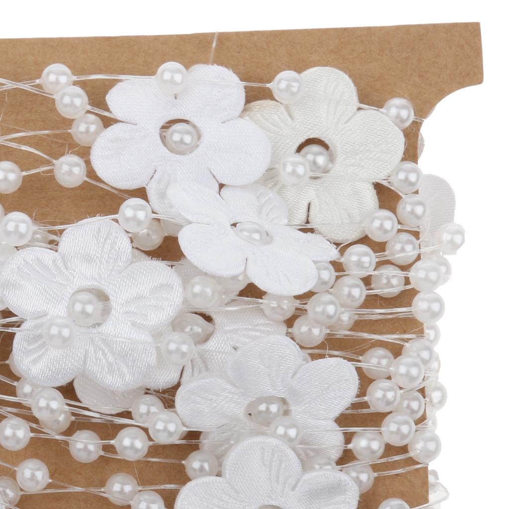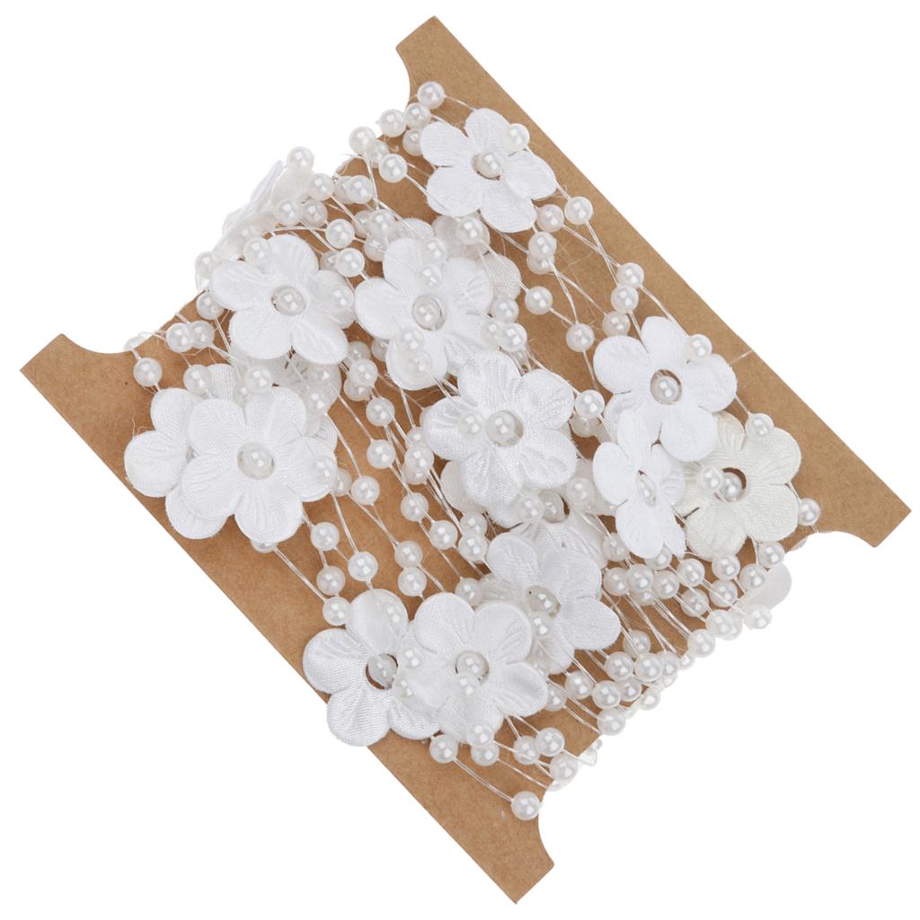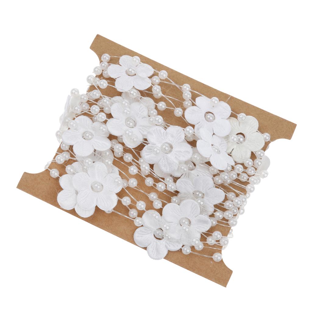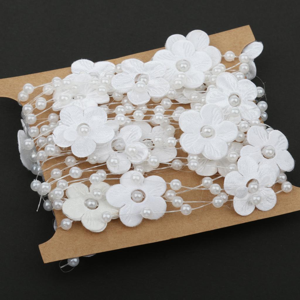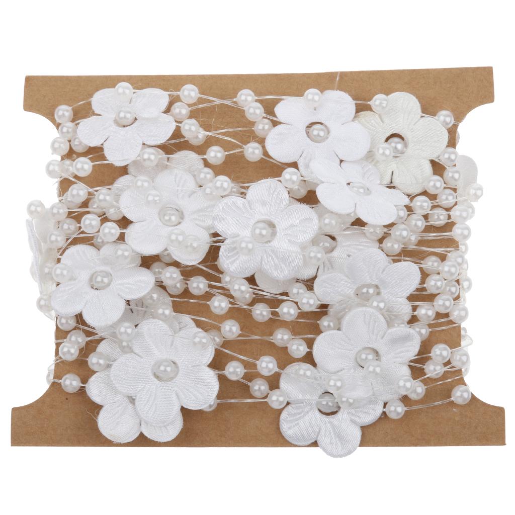 5M Satin Flower Fishing Line Pearl Bead Chain Trim DIY Decor White