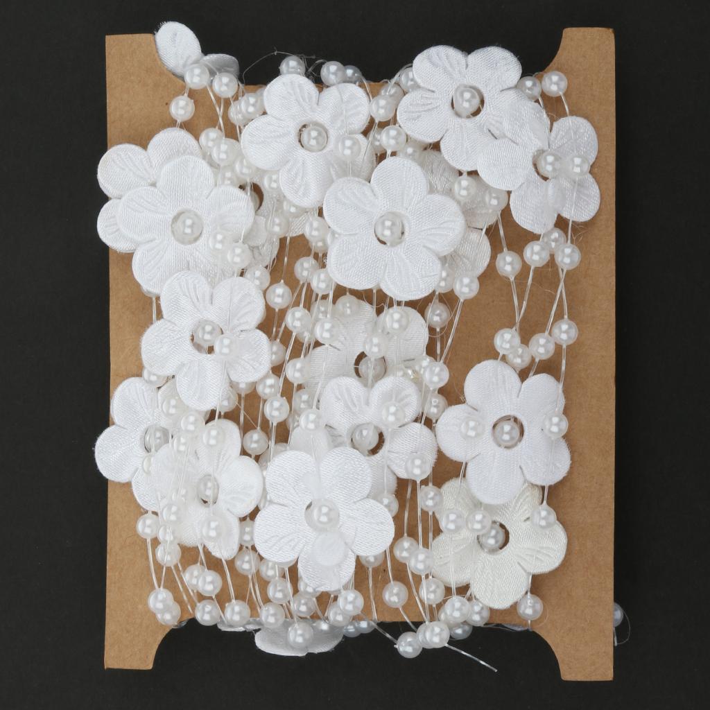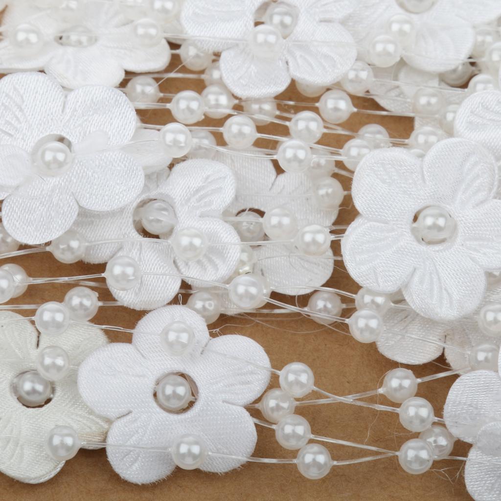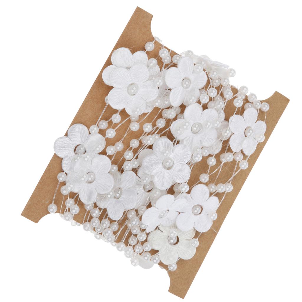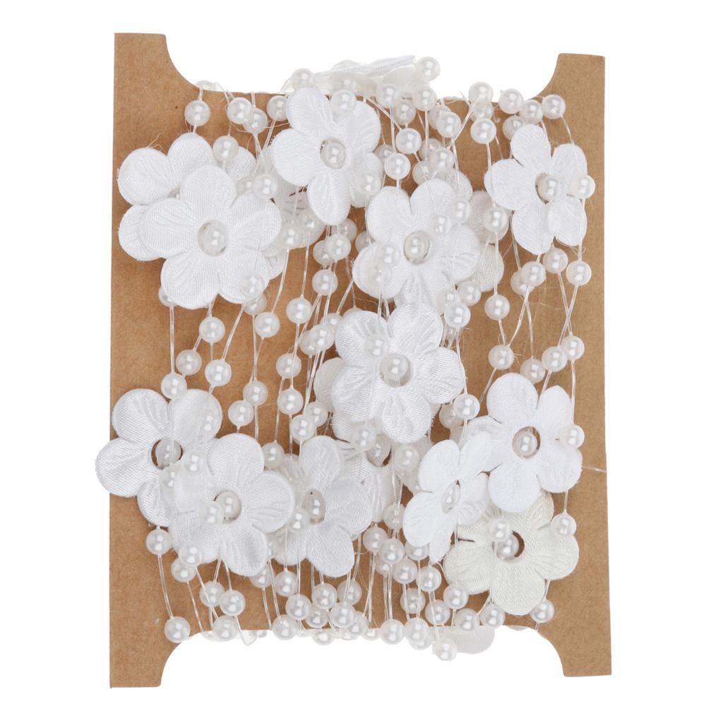 5M Satin Flower Fishing Line Pearl Bead Chain Trim DIY Decor White