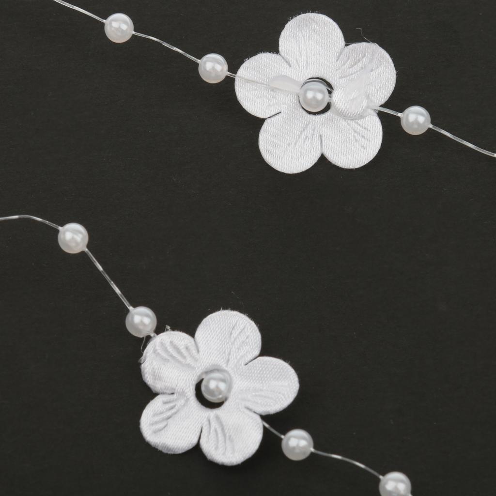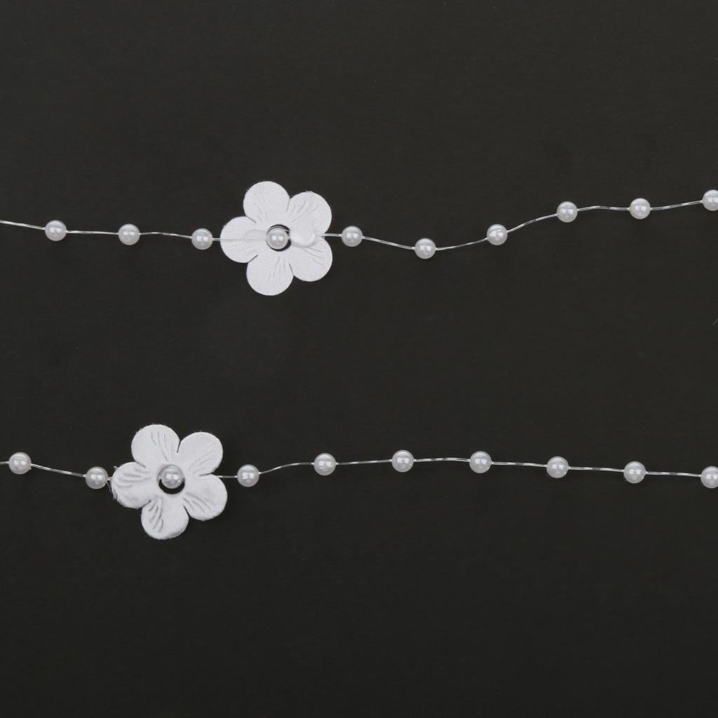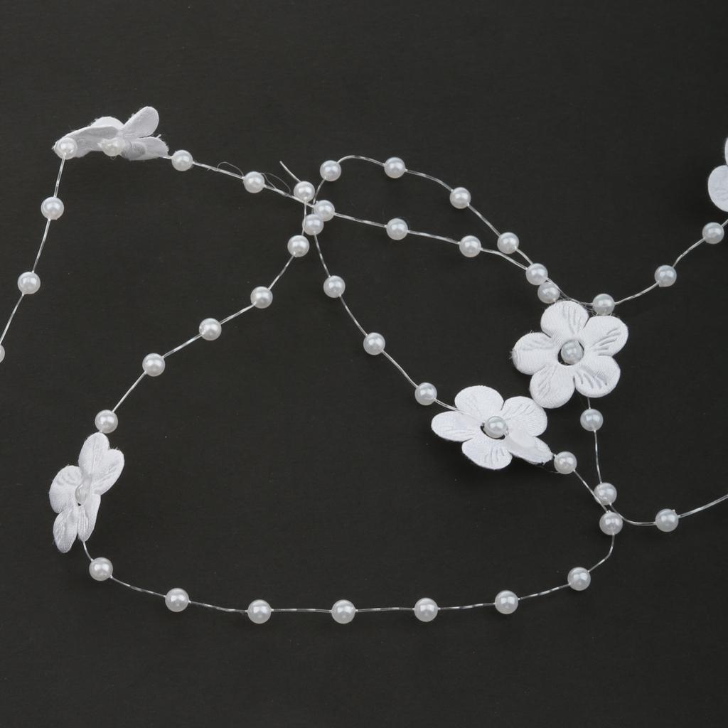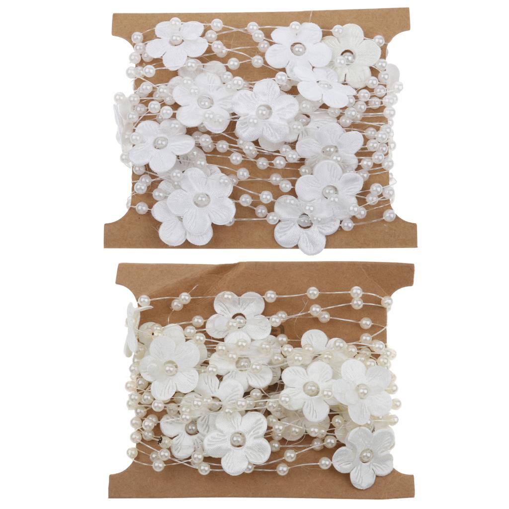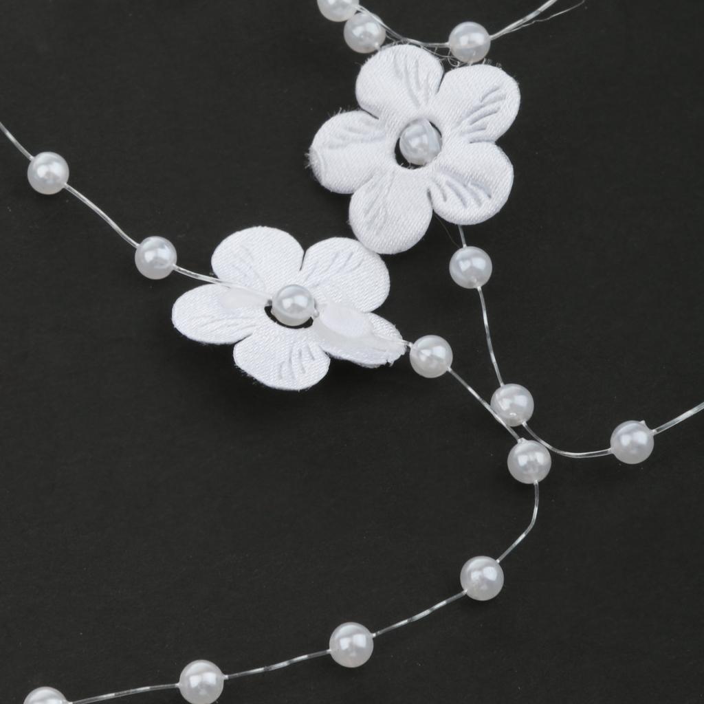 5M Satin Flower Fishing Line Pearl Bead Chain Trim DIY Decor White