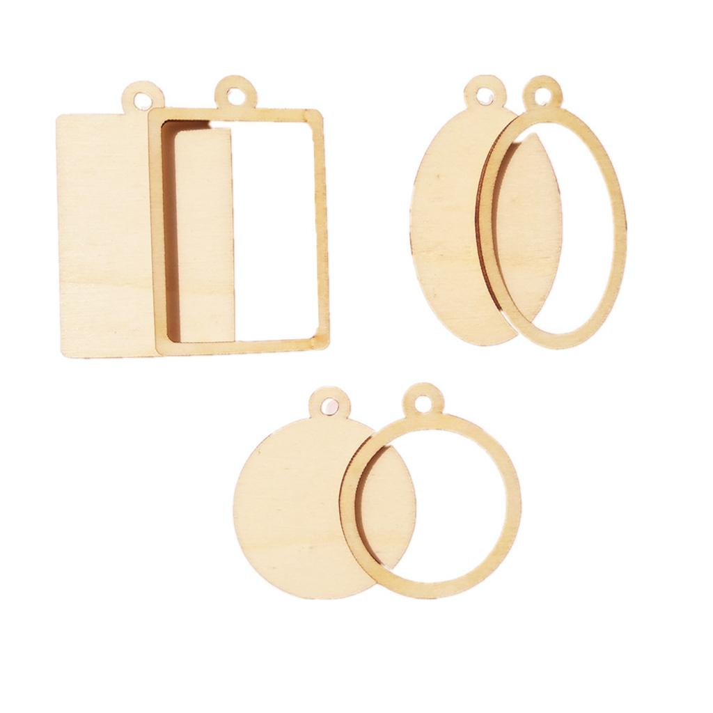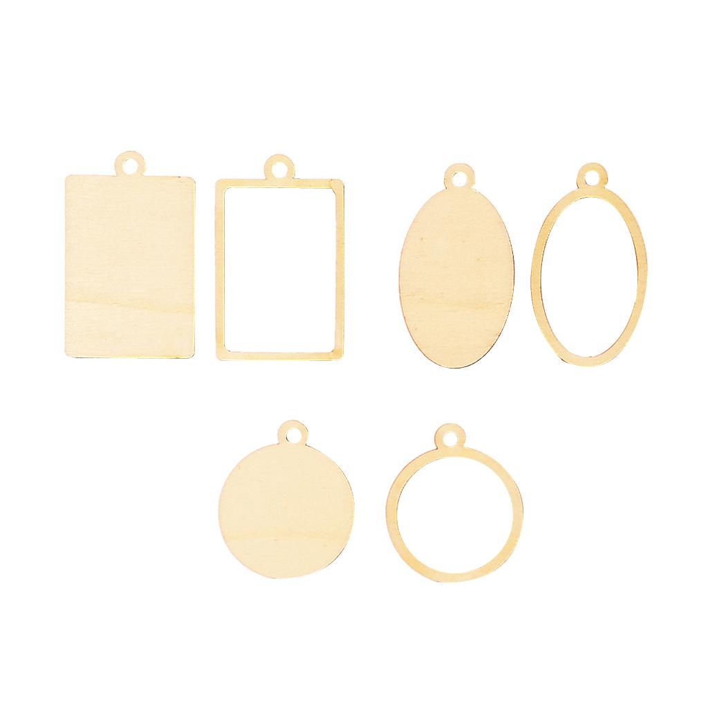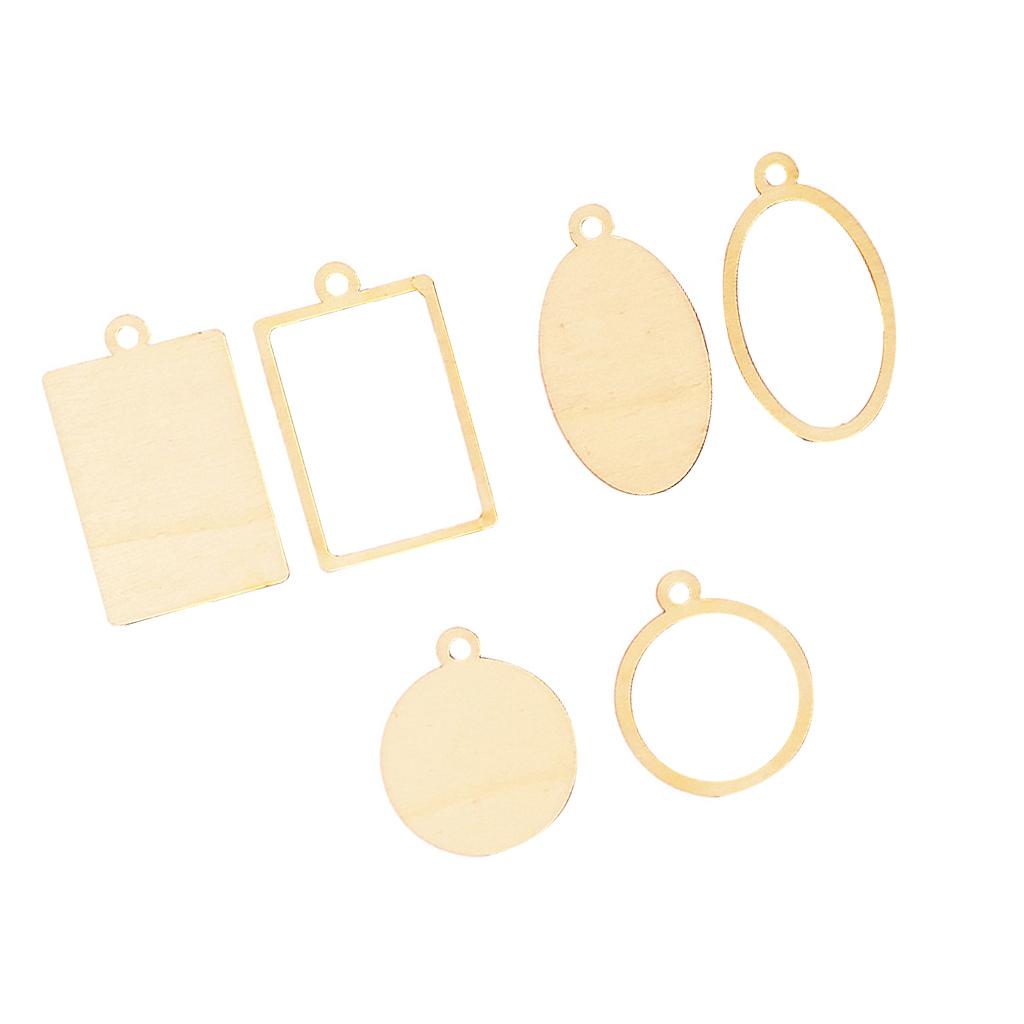 (6 styles,60pcs/lot) Assorted Wooden Frame Pendants Oval Rectangle Round Shapes Wood Charm Laser Cut