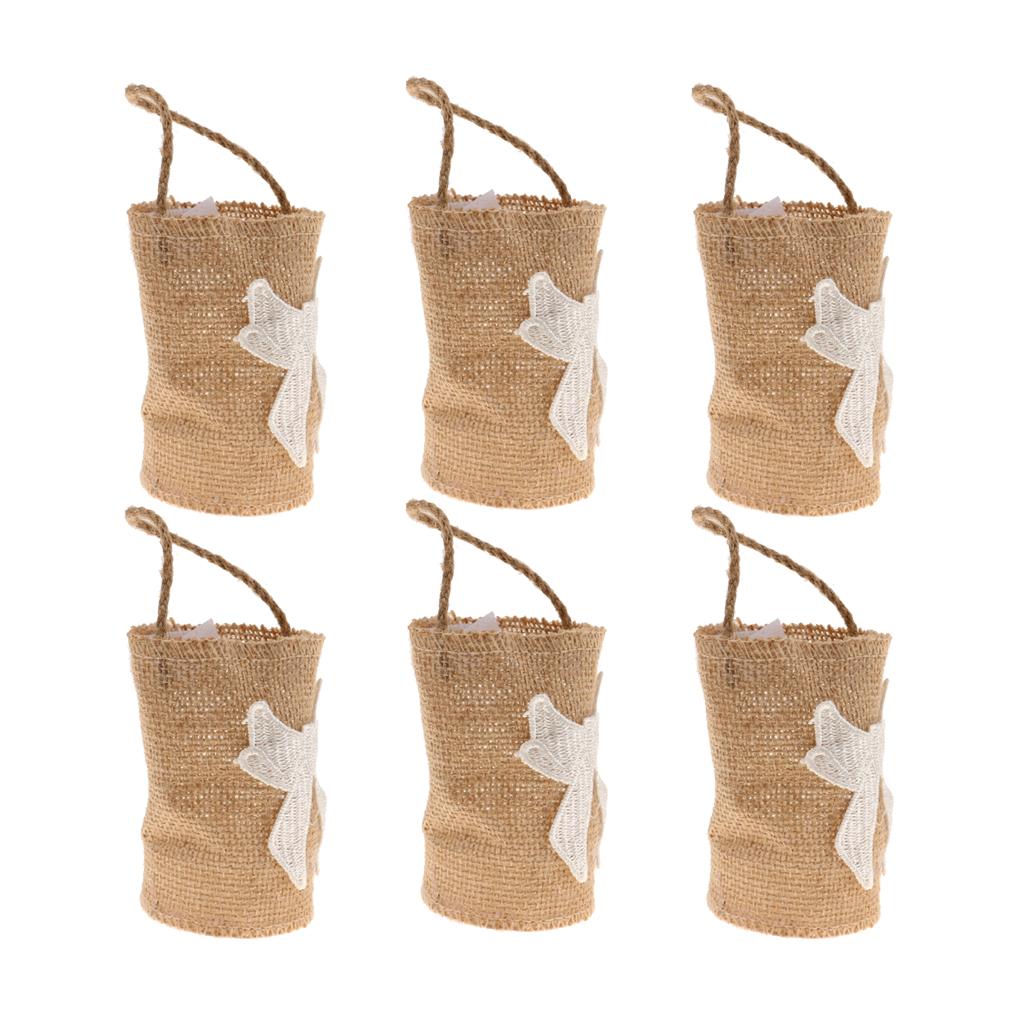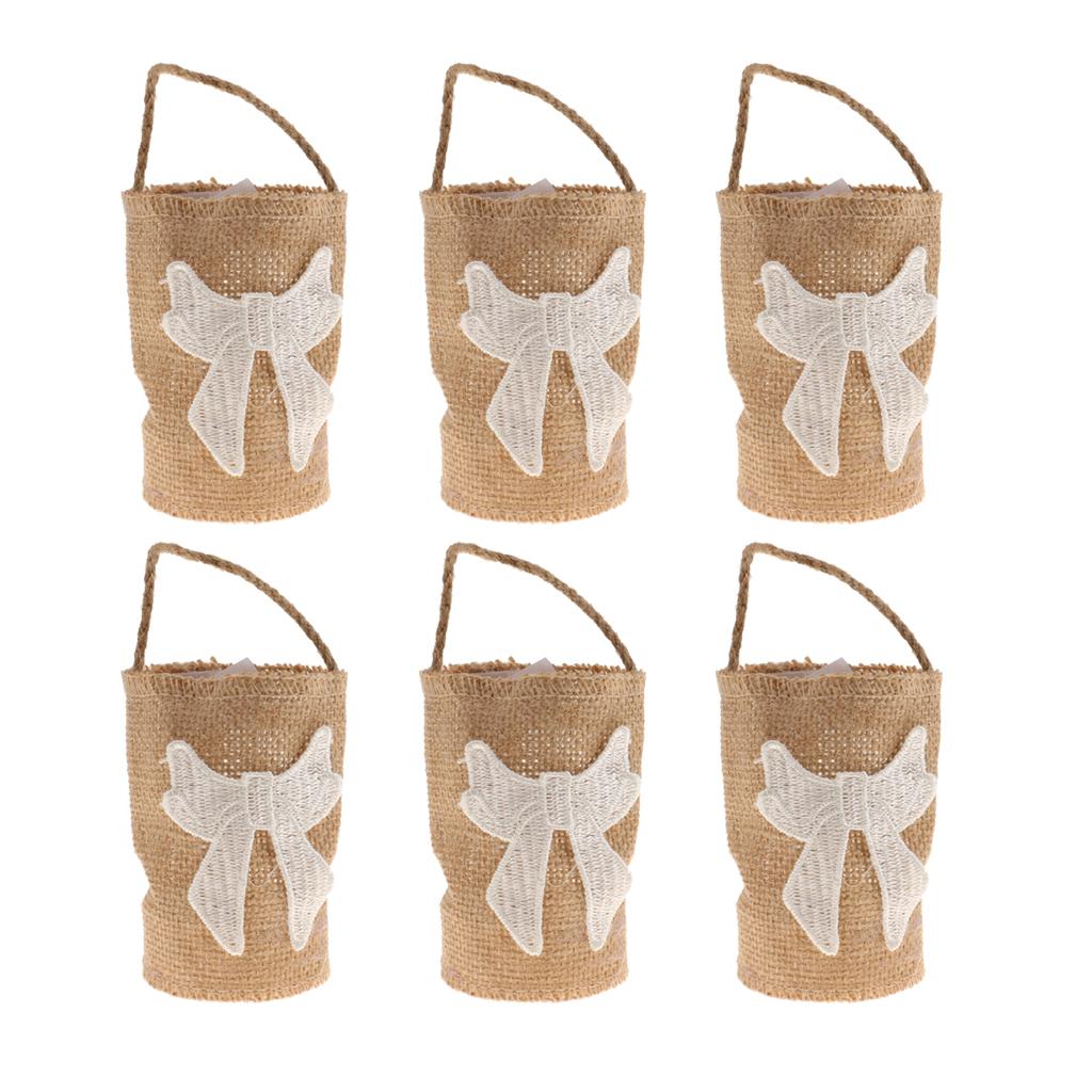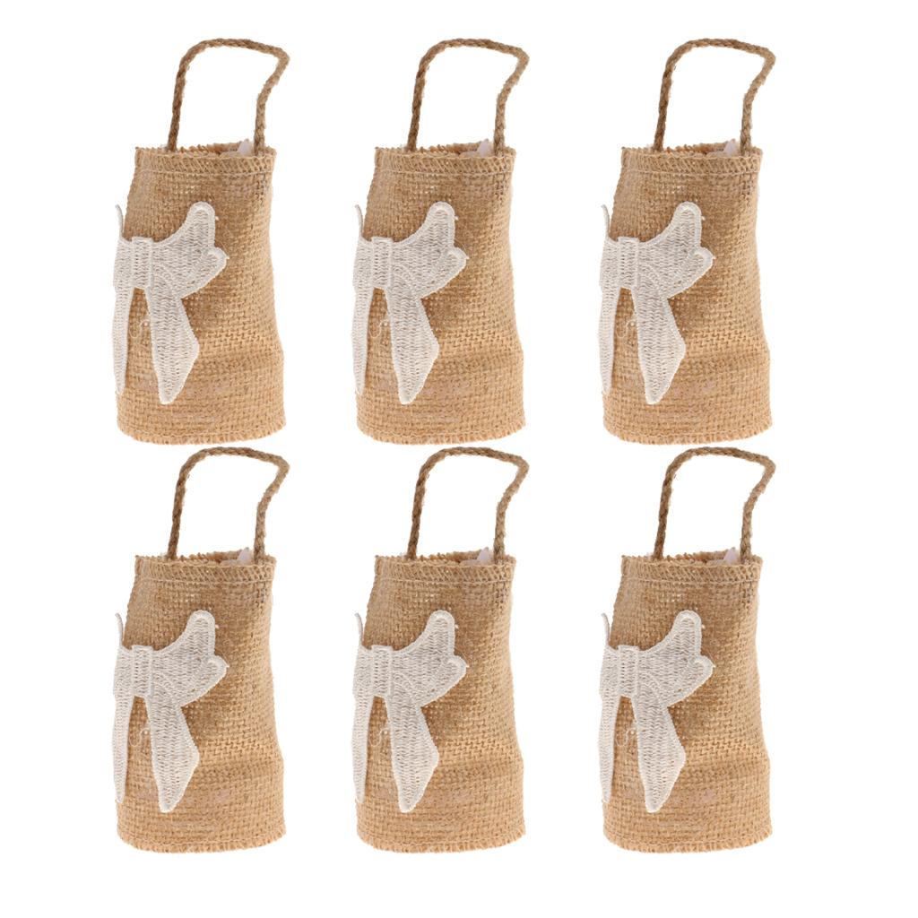 6pcs Bowknot Linen Burlap Sack Sweets Bags with Handle Wedding Gift Favor