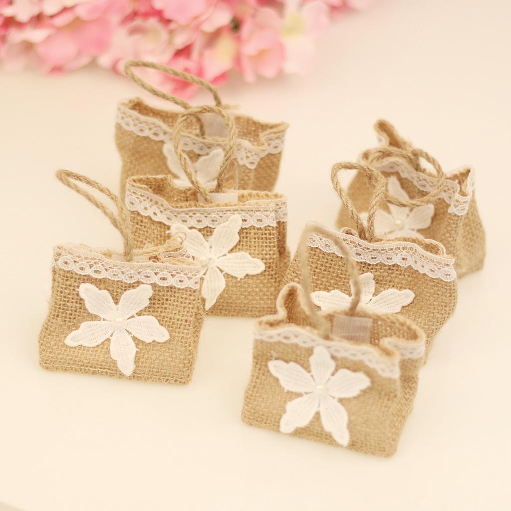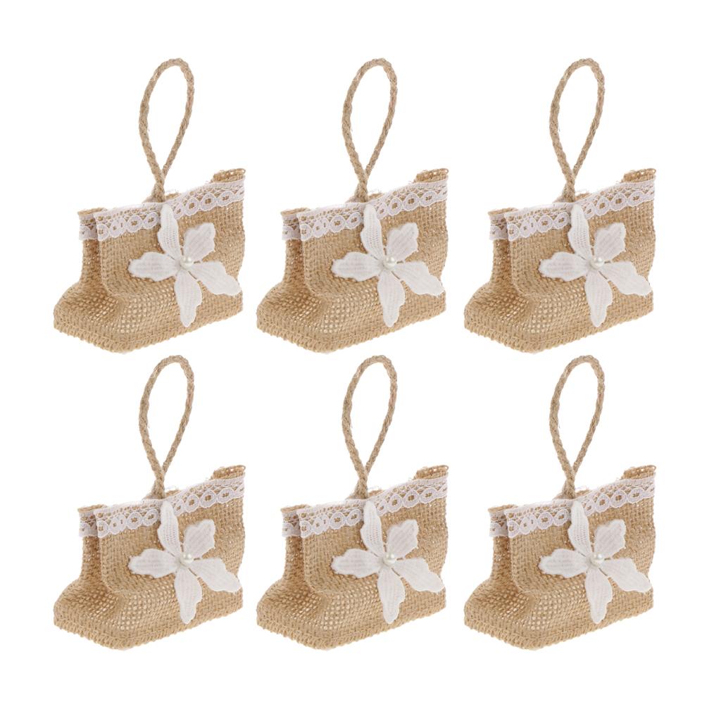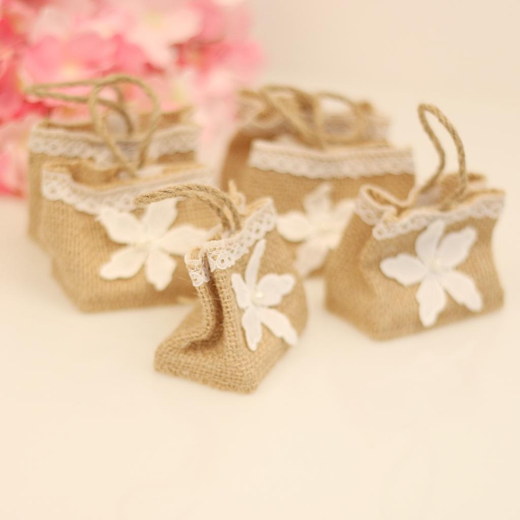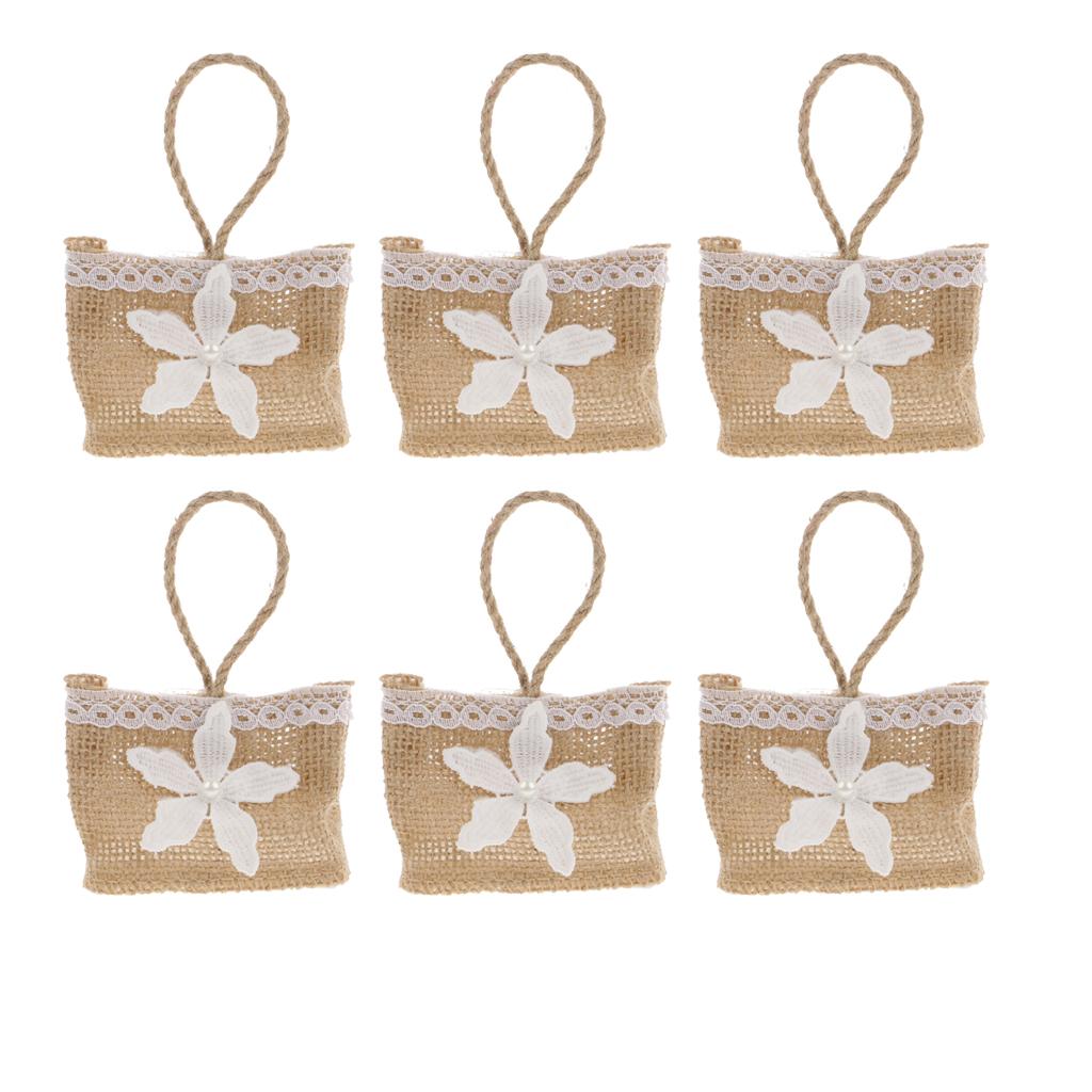 6pcs Flower Linen Burlap Sack Sweets Bags with Handle Wedding Gift Favor