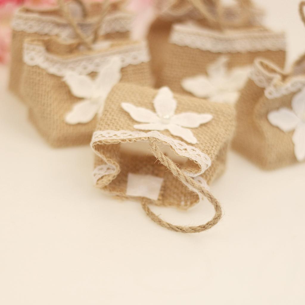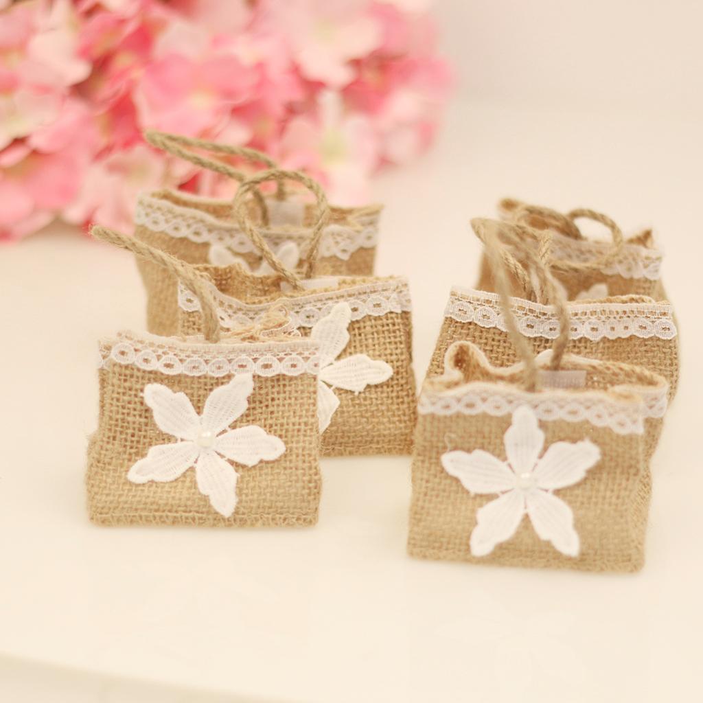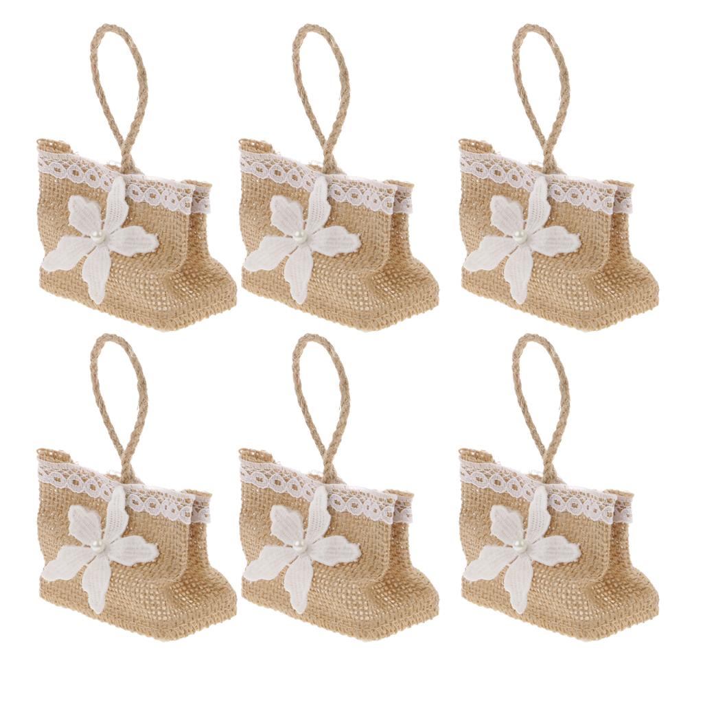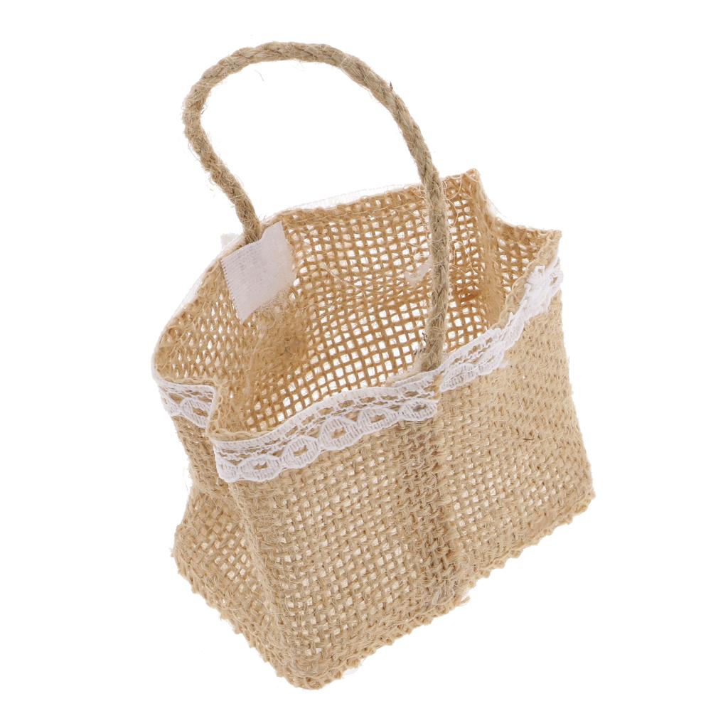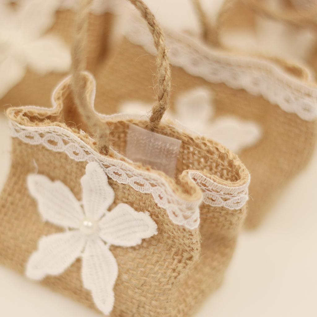 6pcs Flower Linen Burlap Sack Sweets Bags with Handle Wedding Gift Favor