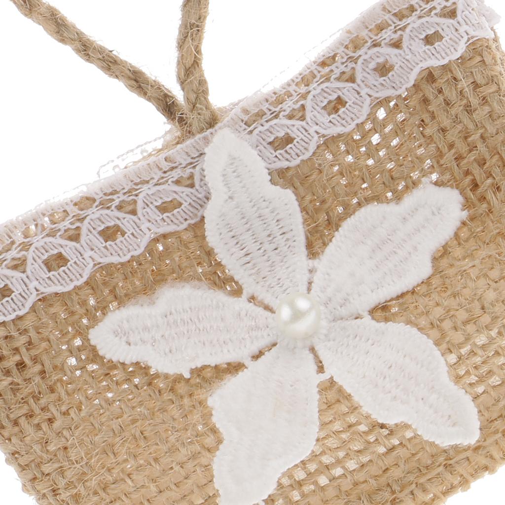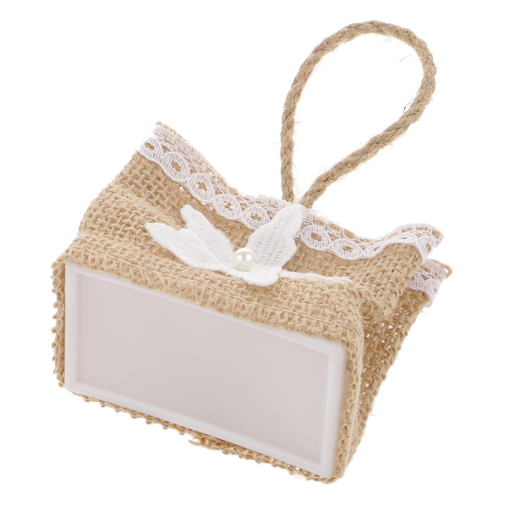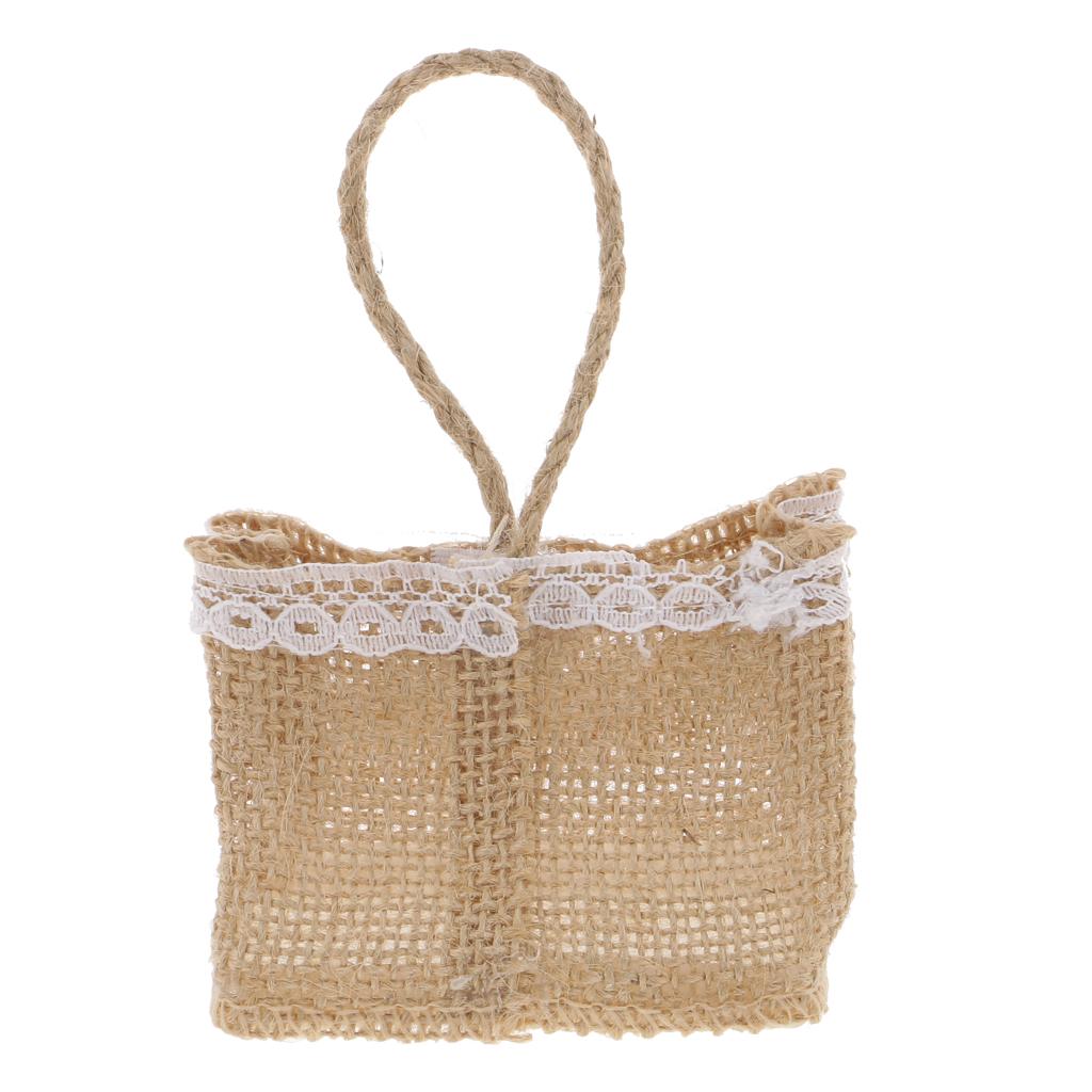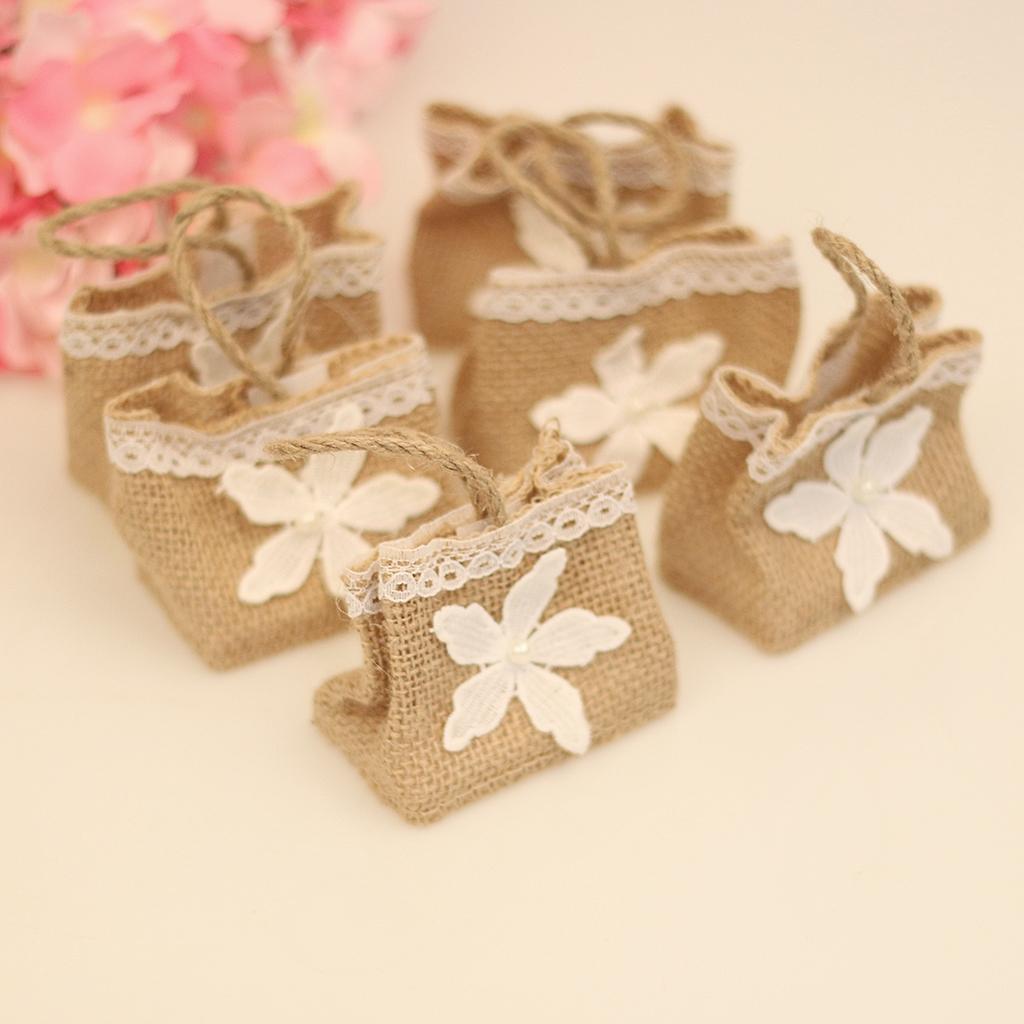 6pcs Flower Linen Burlap Sack Sweets Bags with Handle Wedding Gift Favor