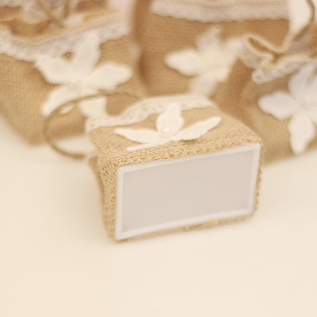 • Vinatge small burlap bags with flower decoration and nylon adhensive fastener.