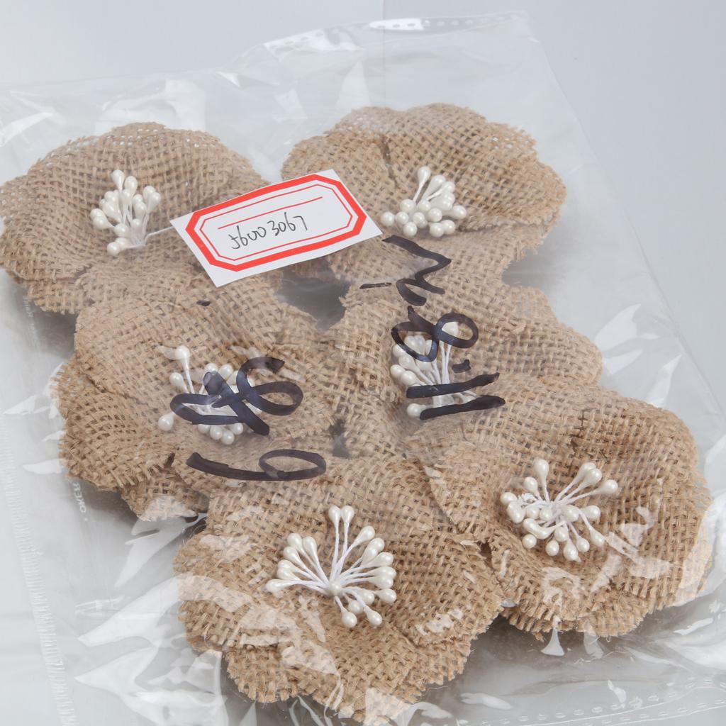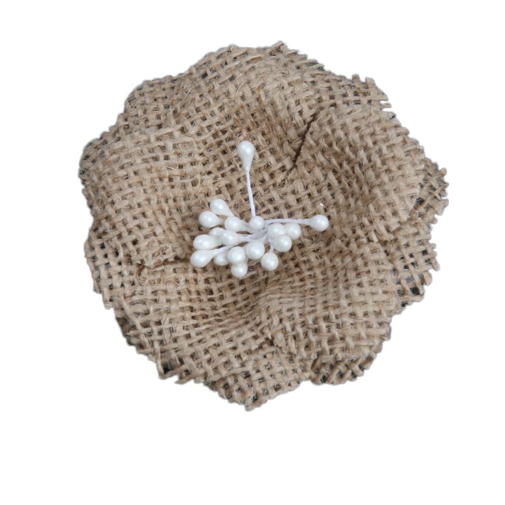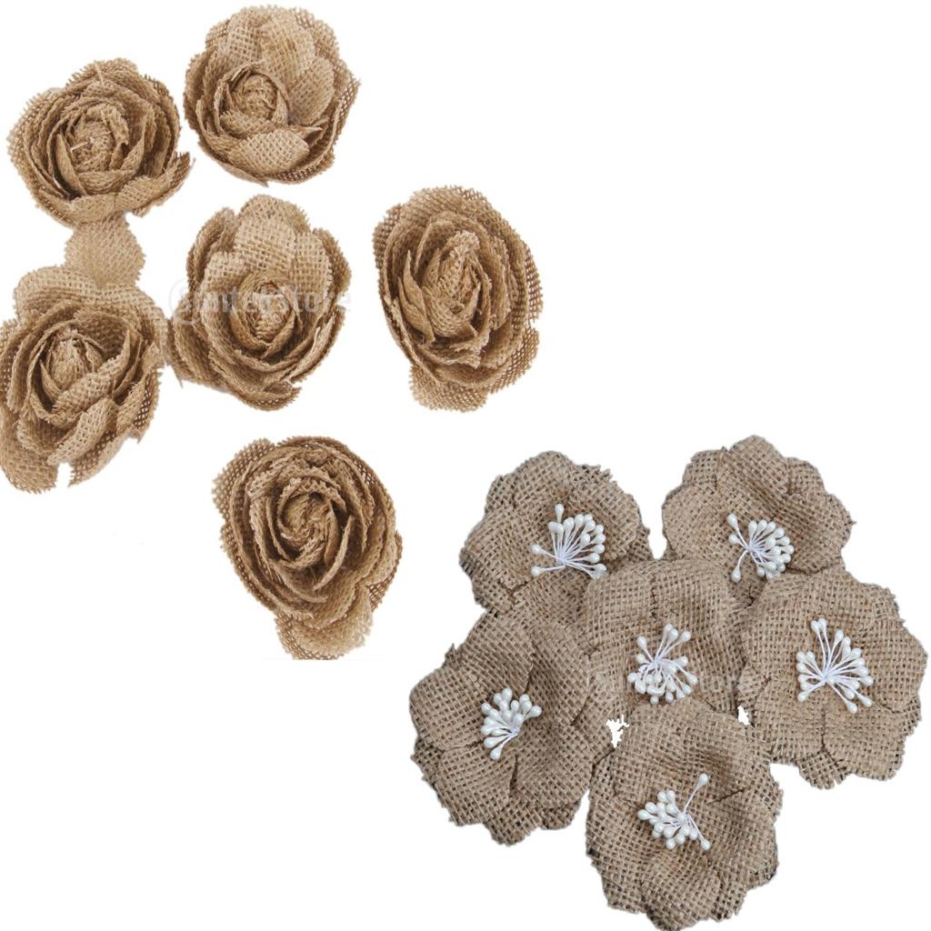 6pcs Hessian Burlap Flowers Beads Rustic Wedding Craft Making Decor