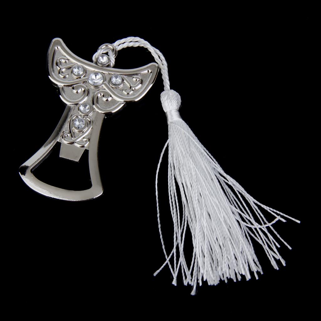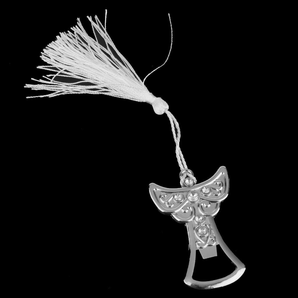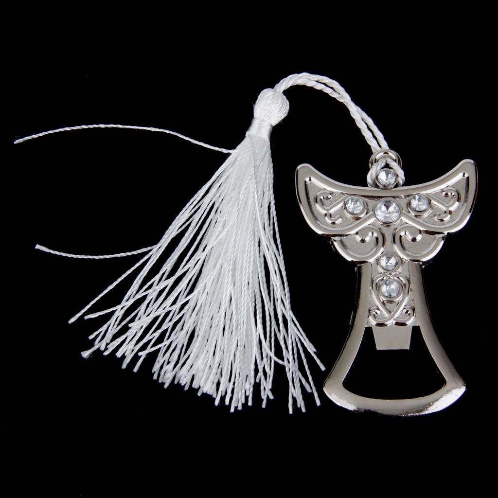 • Silver angel bottle opener, topped with an attached white satin tassel