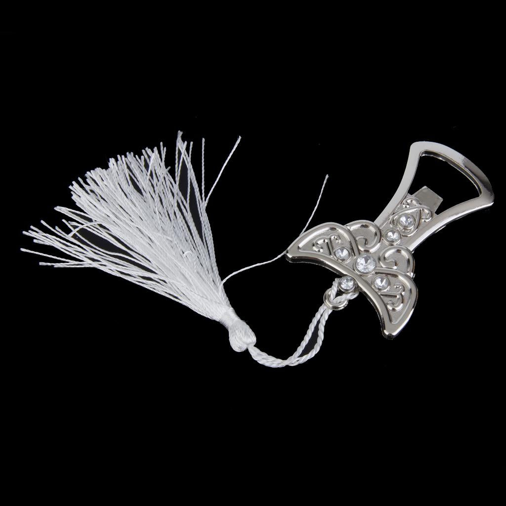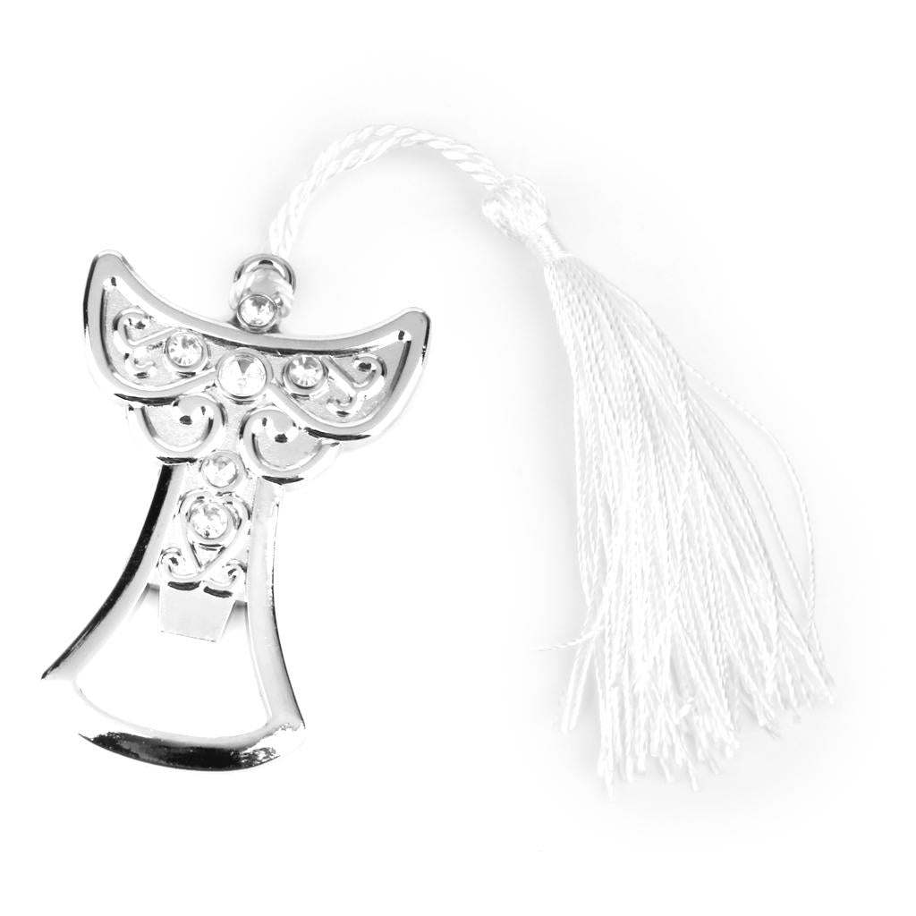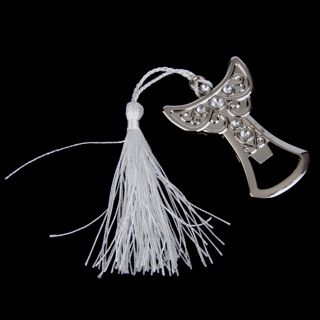 • Silver angel bottle opener, topped with an attached white satin tassel