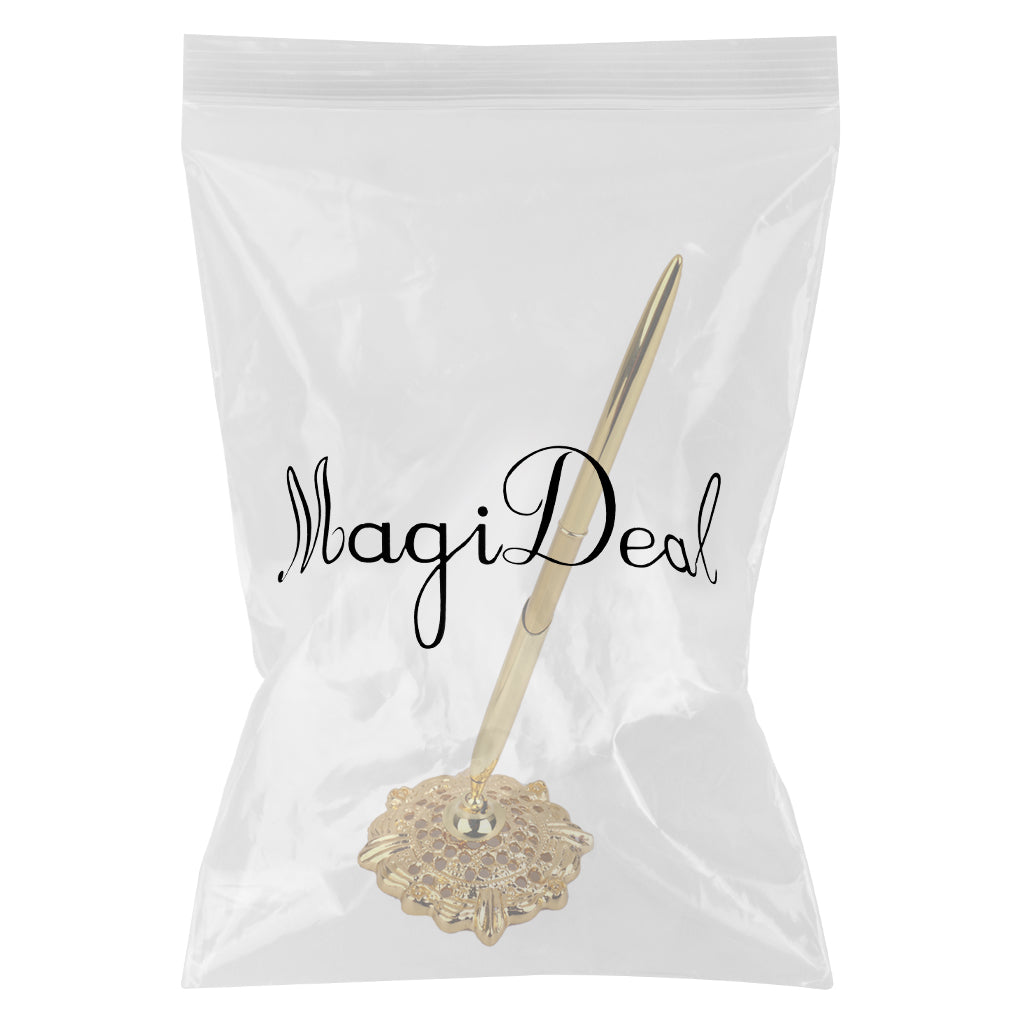 Alloy Hollow Round Pen Holder Signing Pen Set for Wedding Bridal Gold