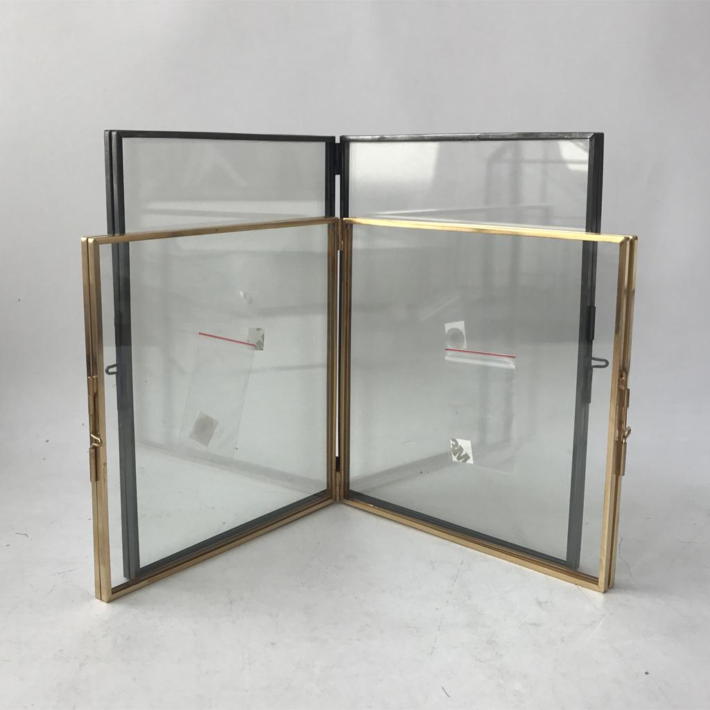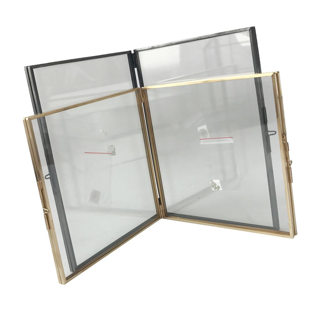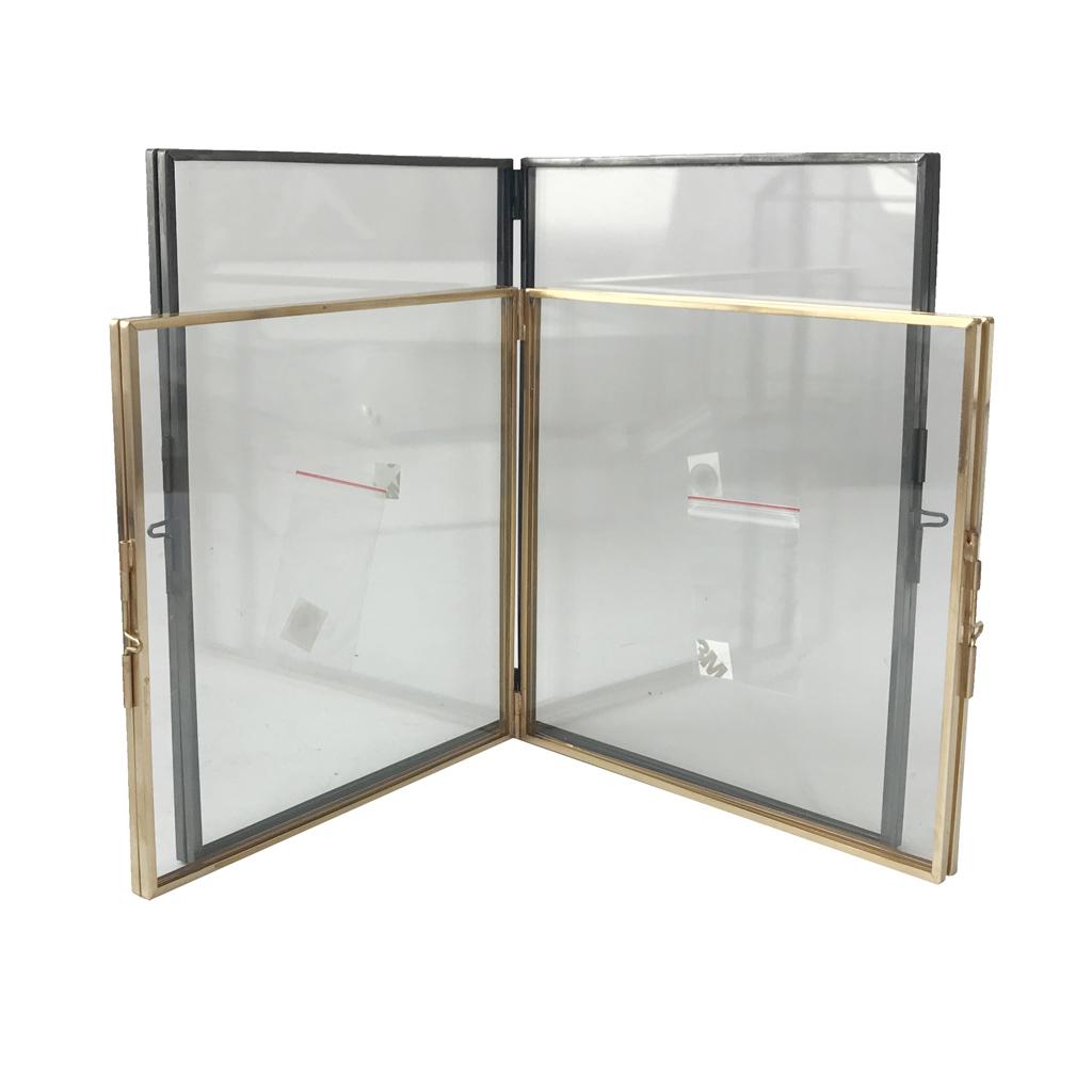 Antique Brass Glass Picture Photo Frame Free Stand Portrait 3.5 x 5"