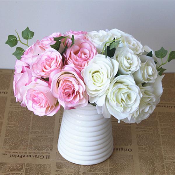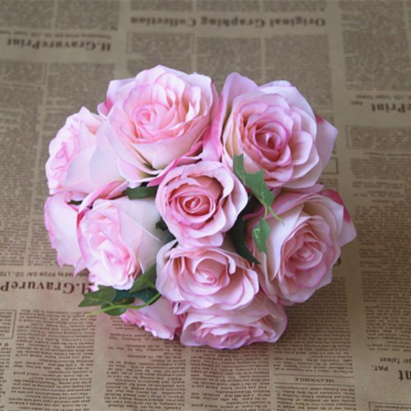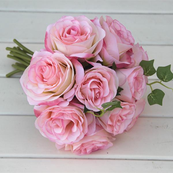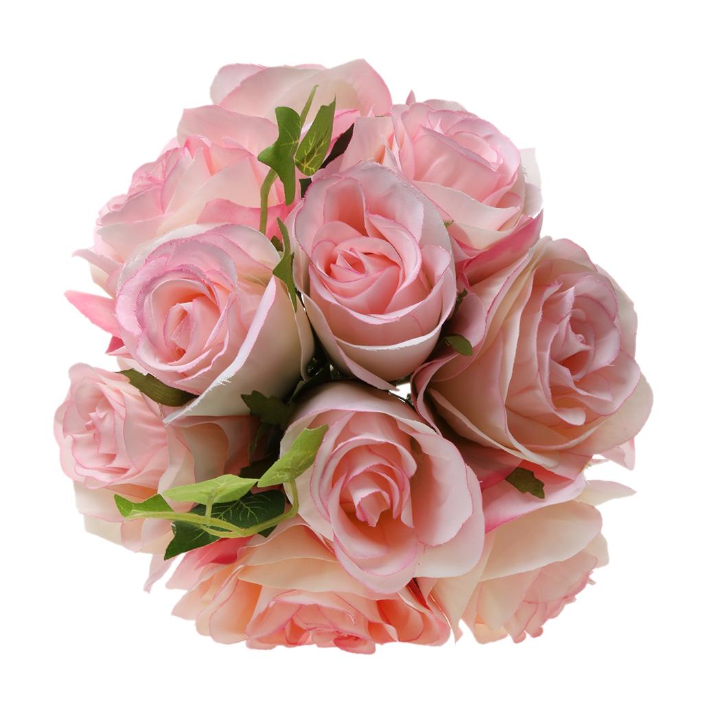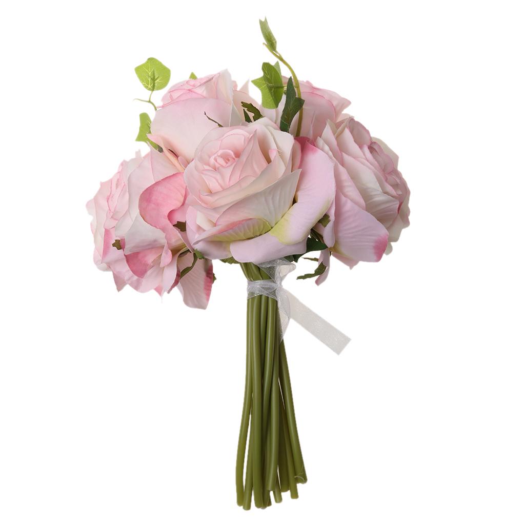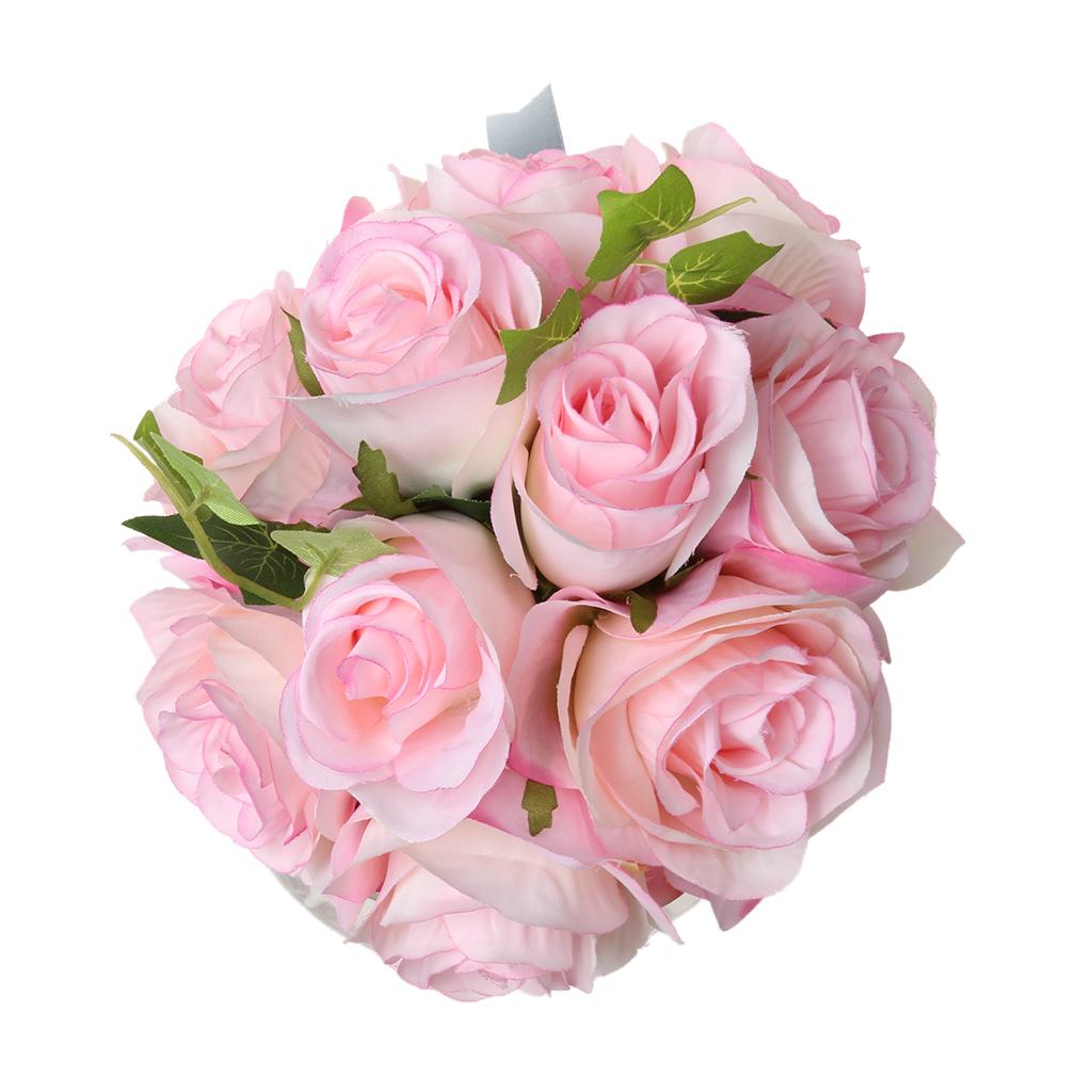 Artificial 10-Head Silk Rose Hydrangea Bridal Flower Wedding Bouquet Pink