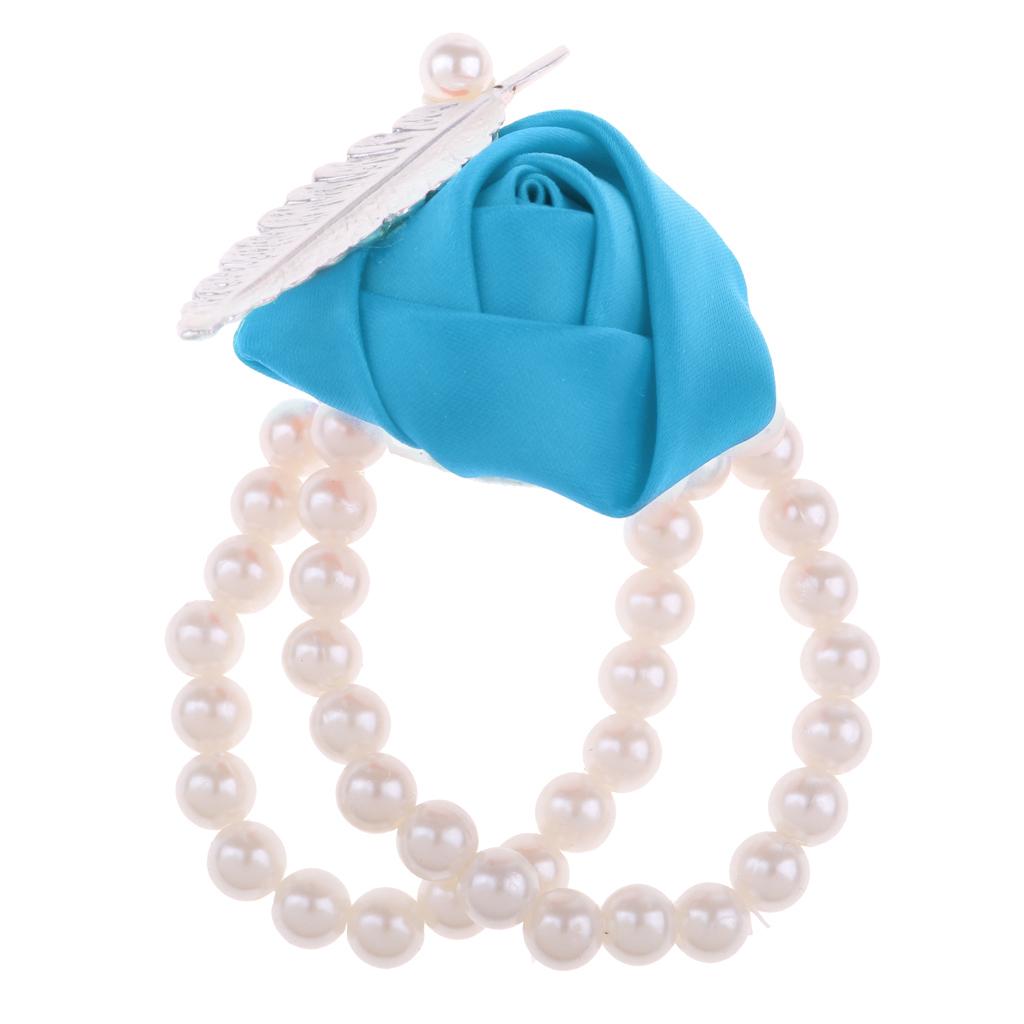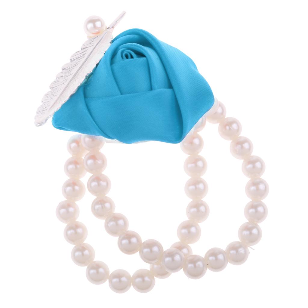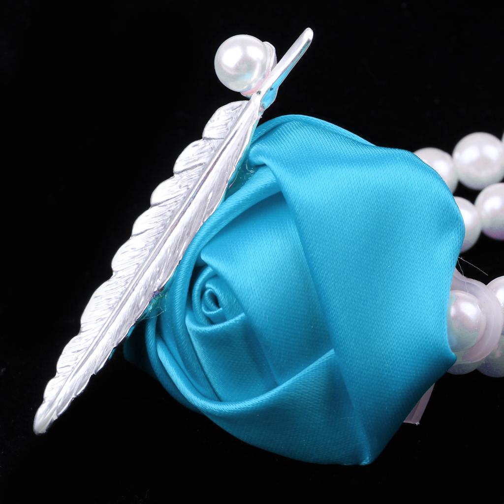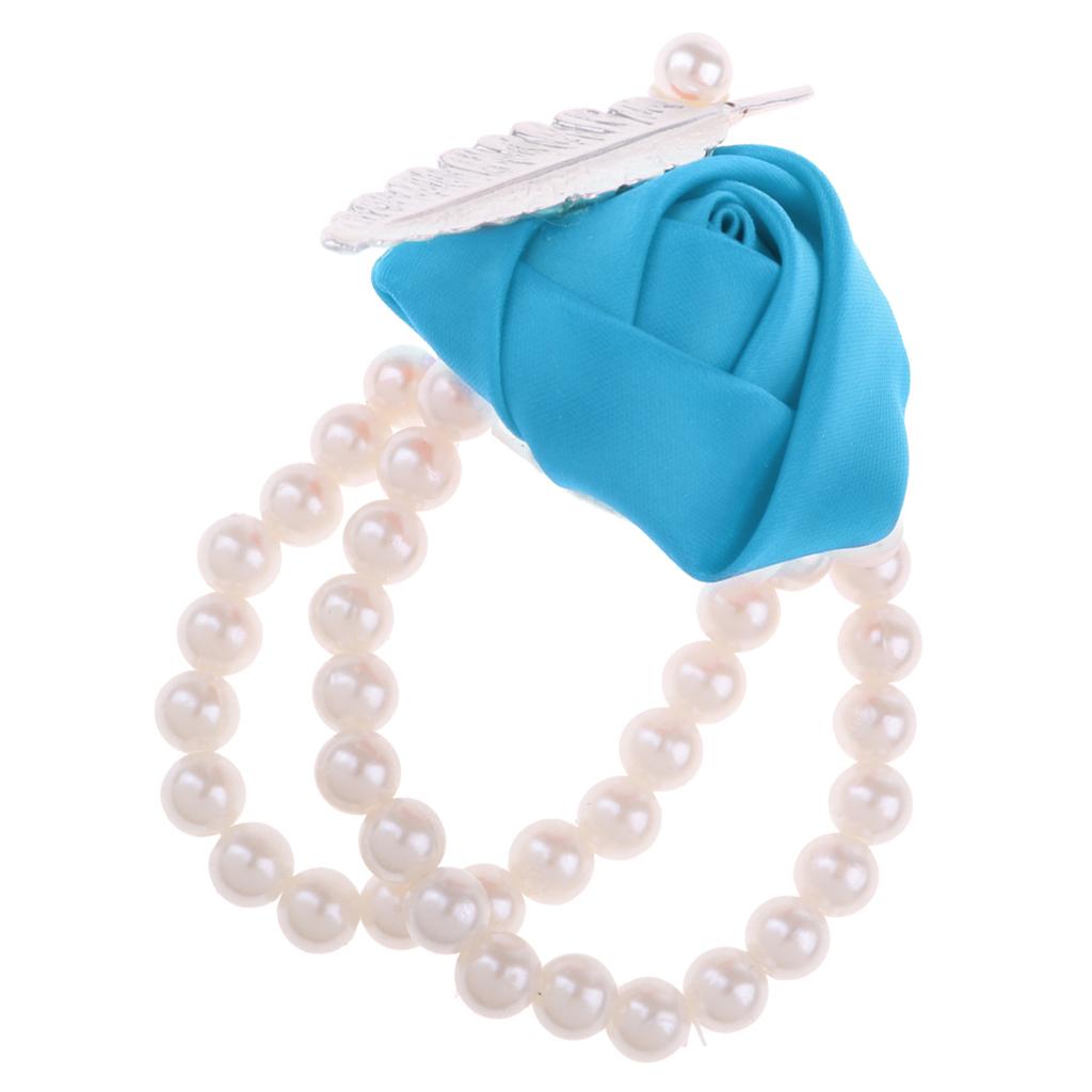 Artificial Bridal Wrist Pearls Corsage Hand Flowers Bracelets Azure