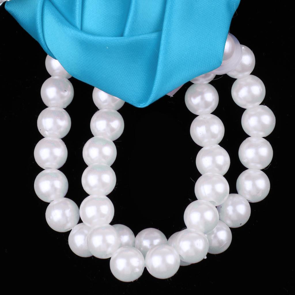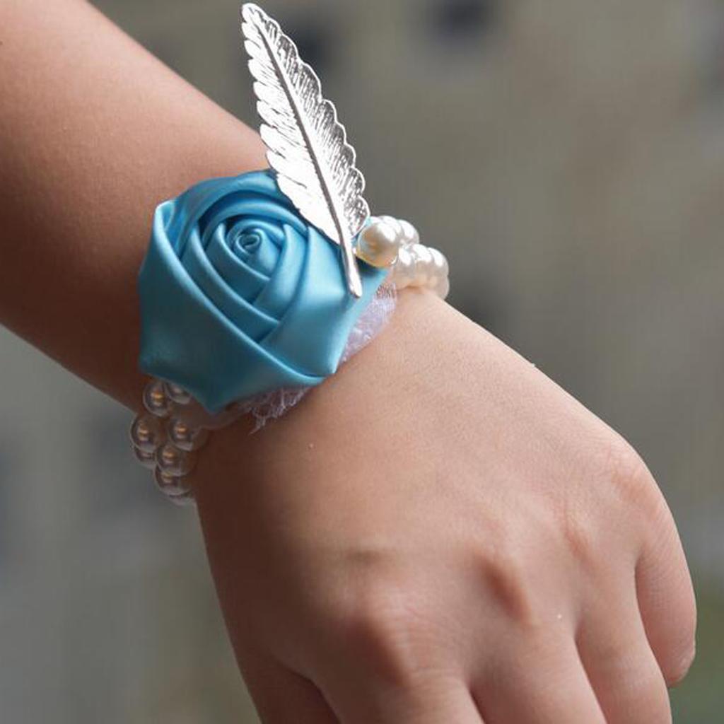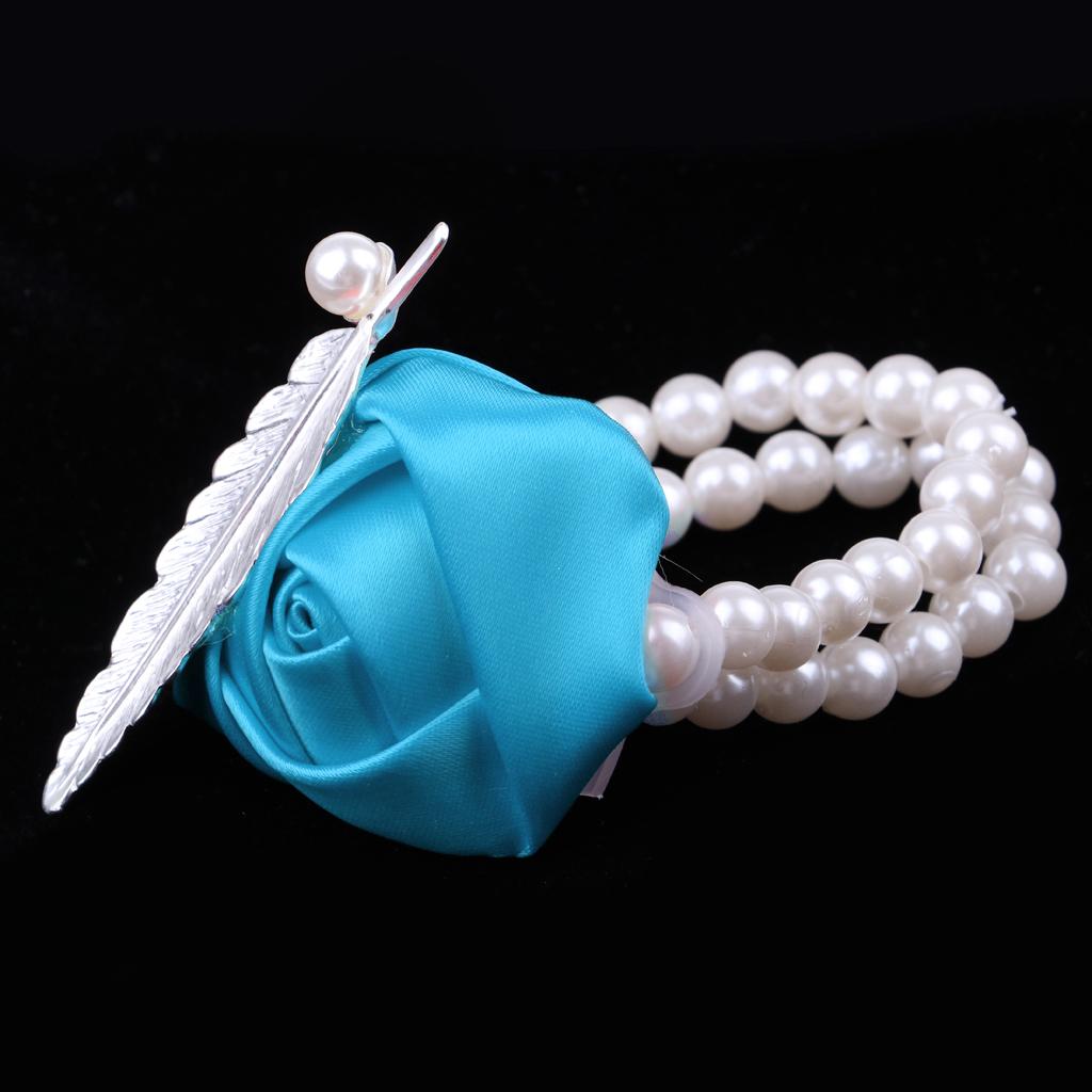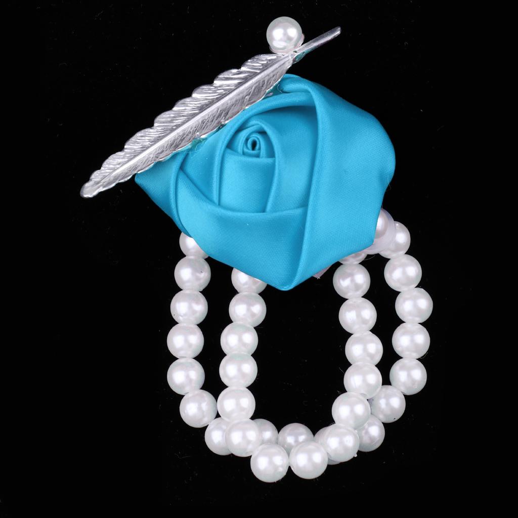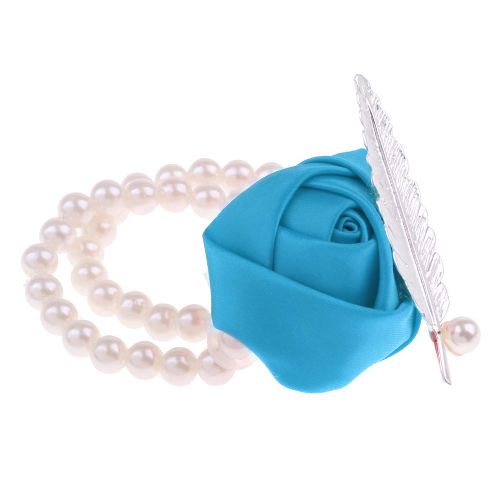 Artificial Bridal Wrist Pearls Corsage Hand Flowers Bracelets Azure