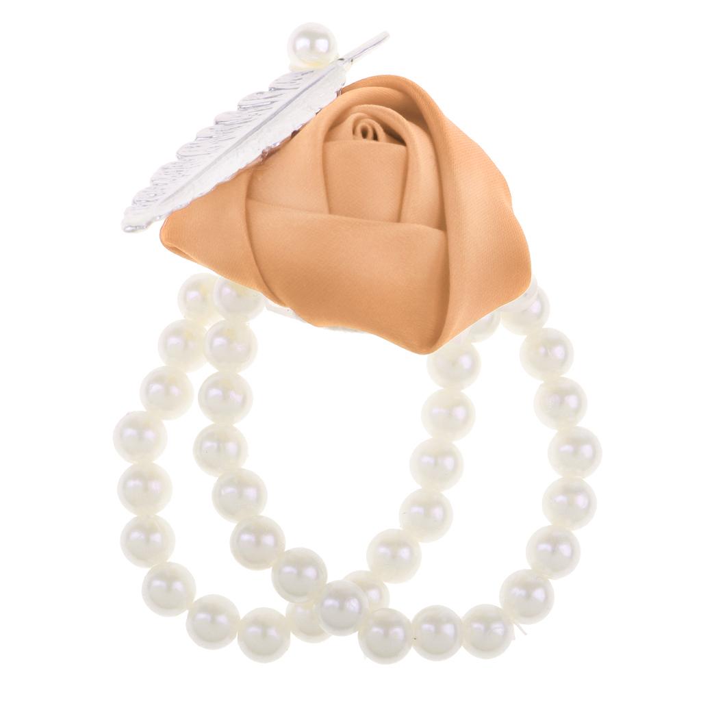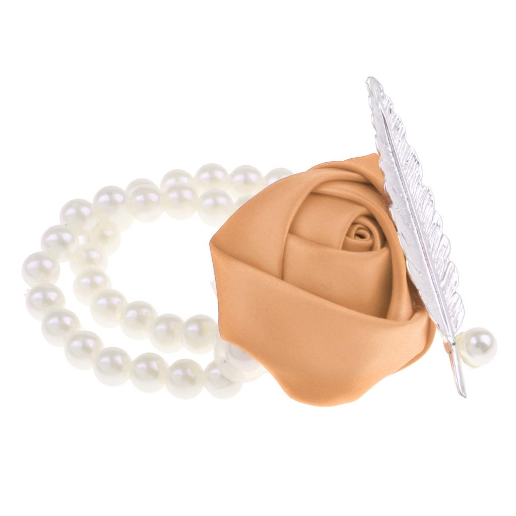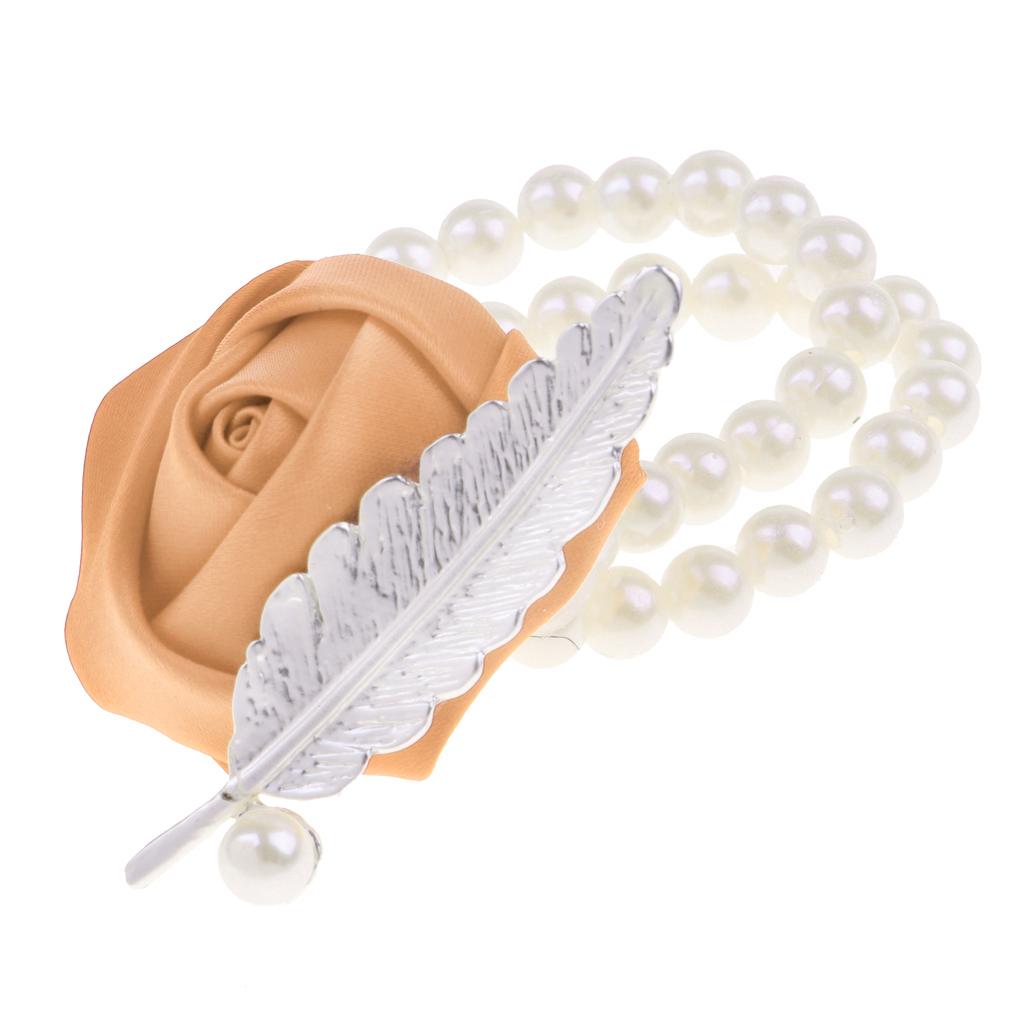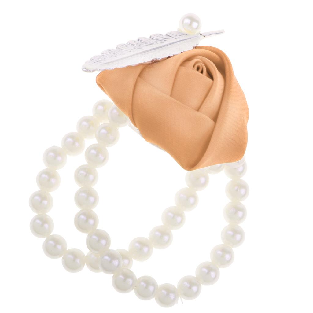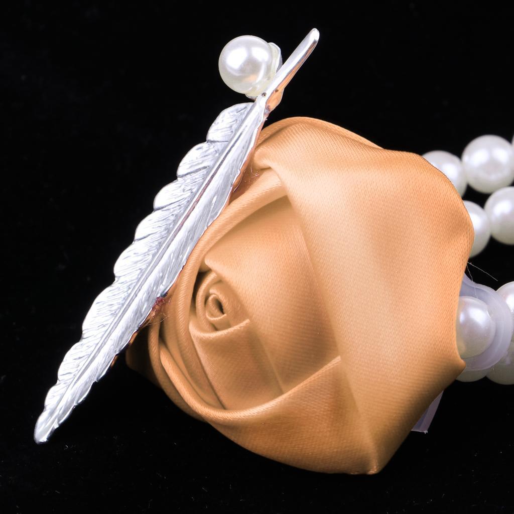 Artificial Bridal Wrist Pearls Corsage Hand Flowers Bracelets Khaki