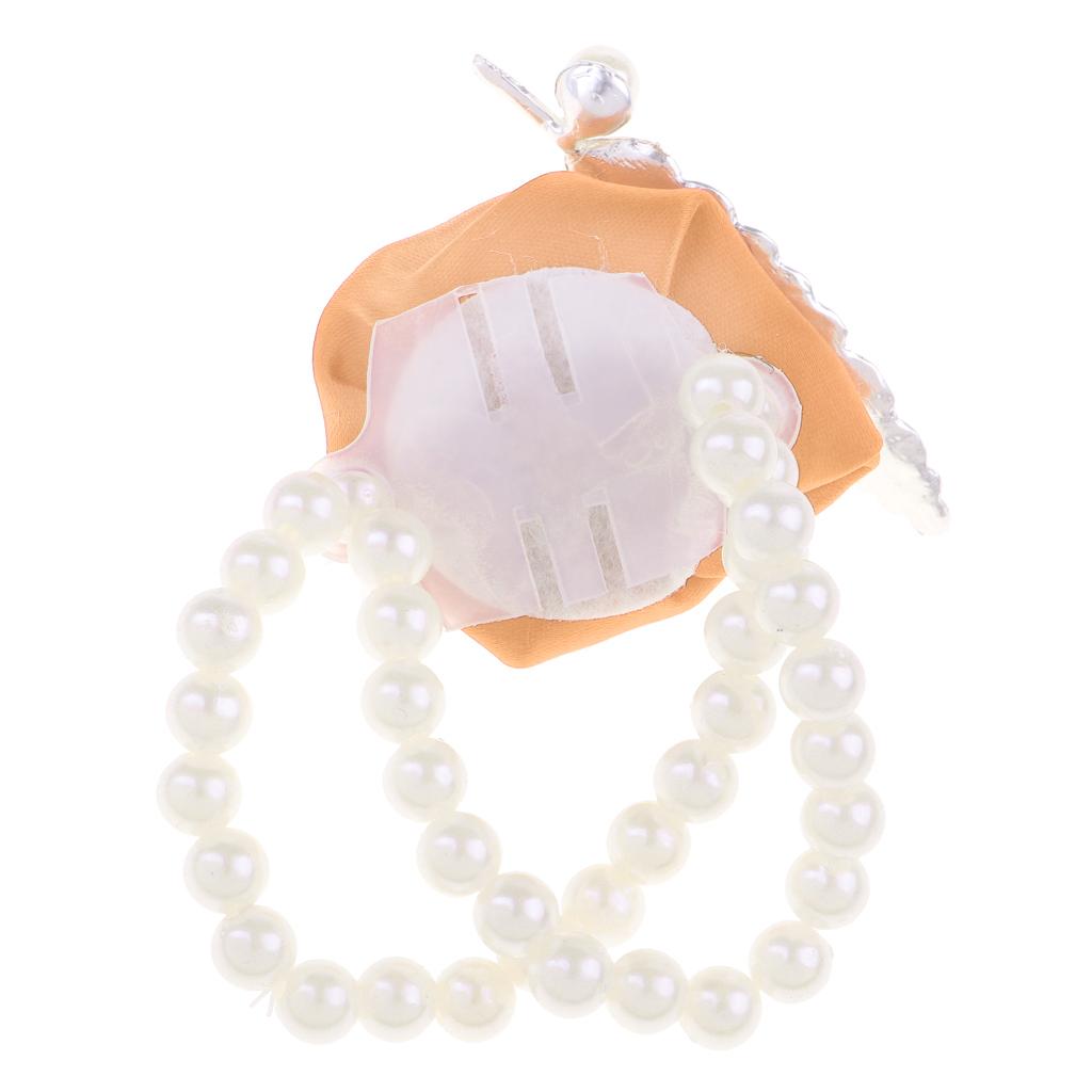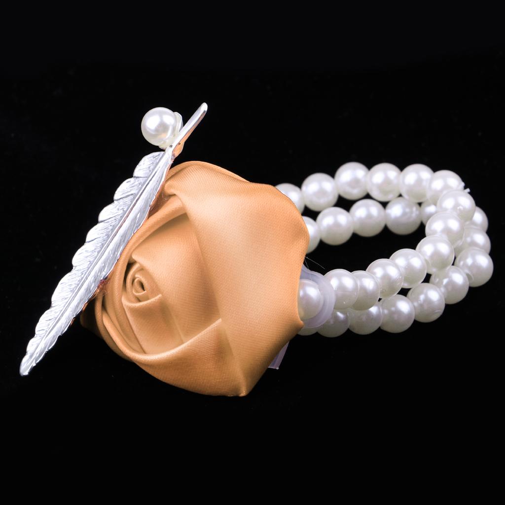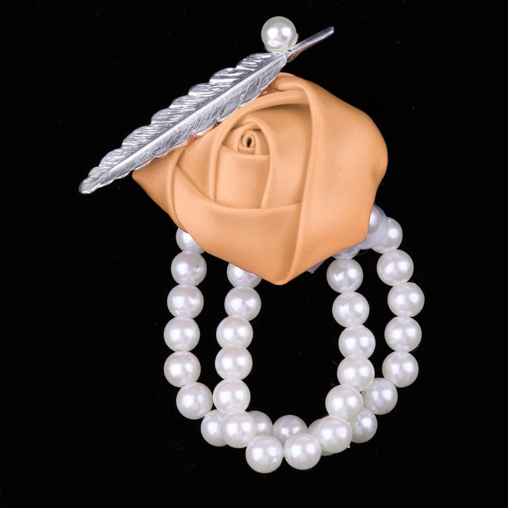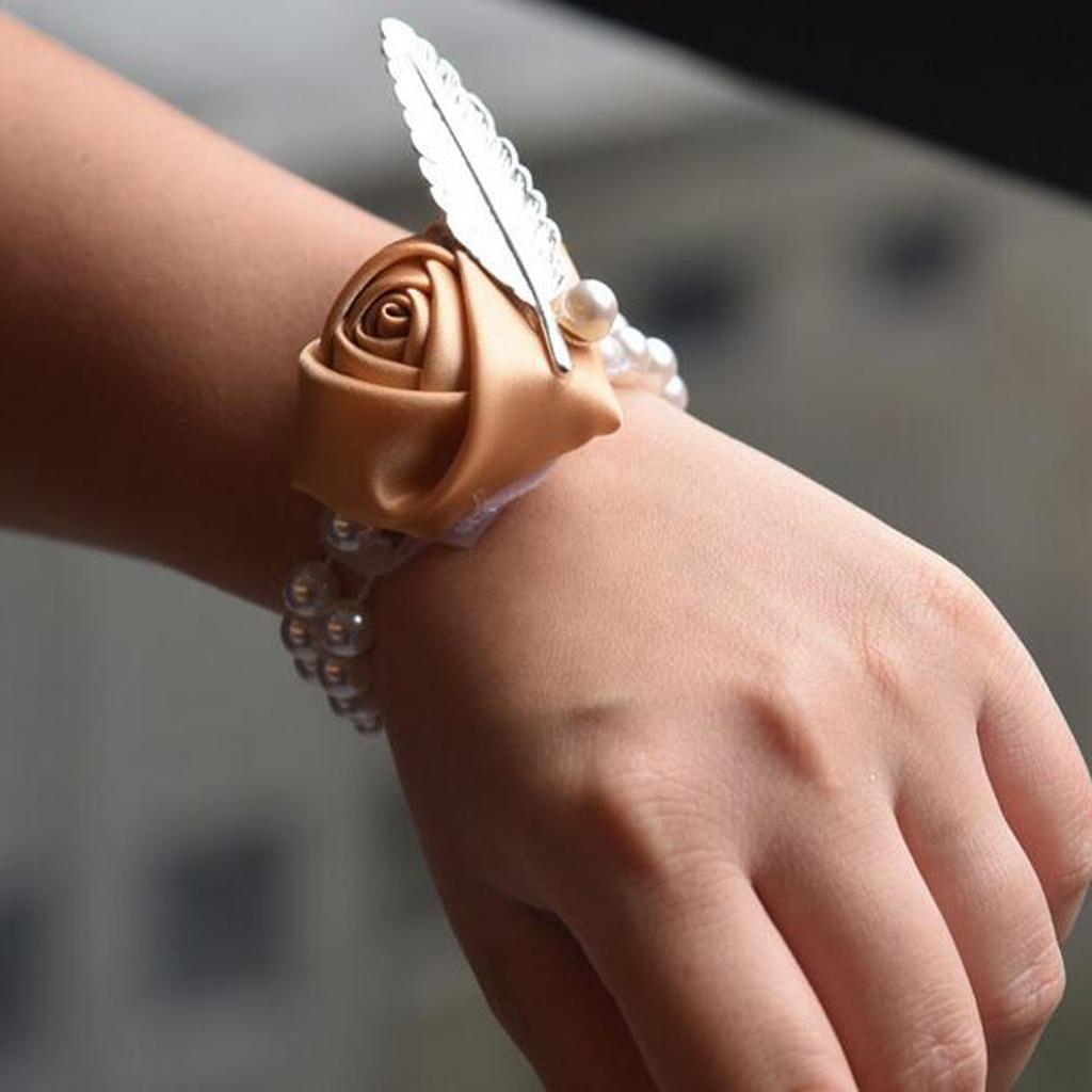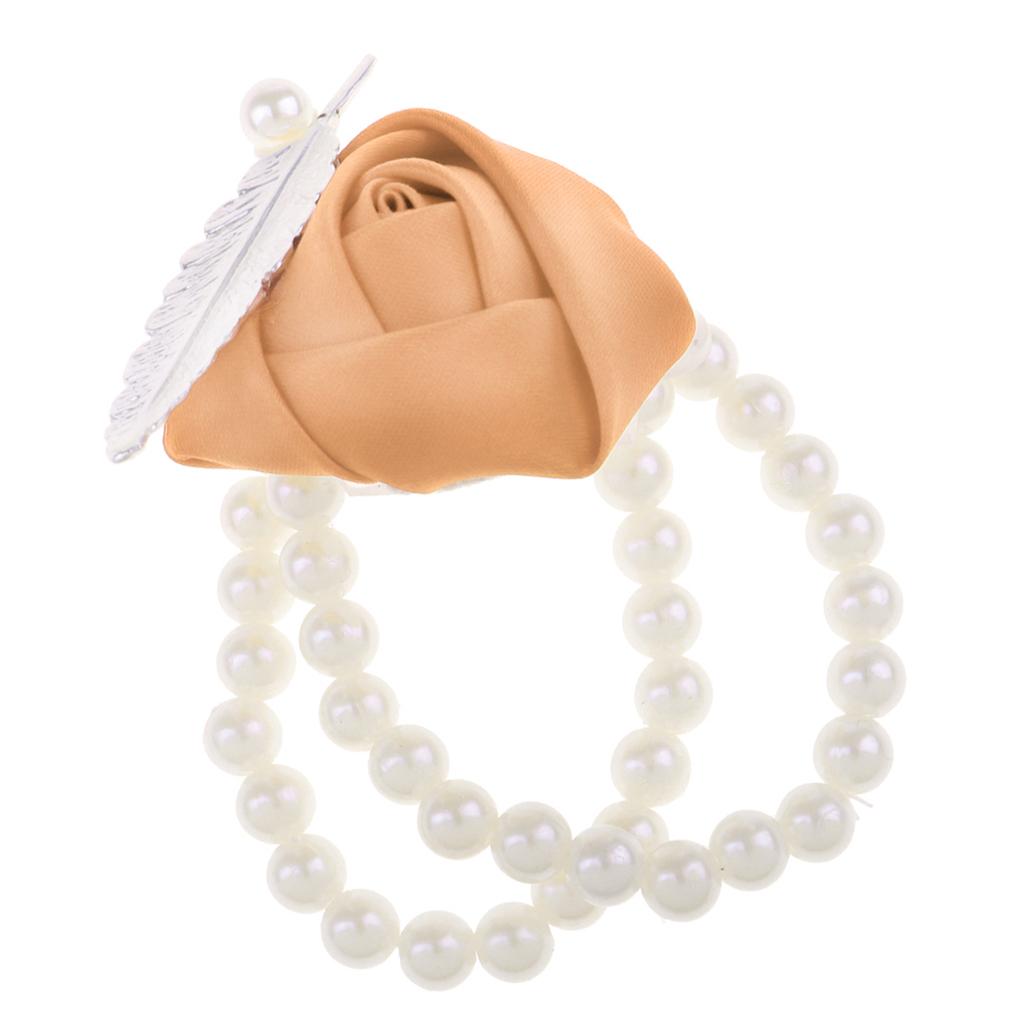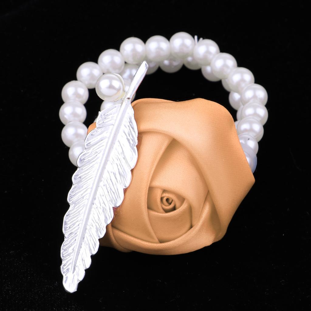 Artificial Bridal Wrist Pearls Corsage Hand Flowers Bracelets Khaki