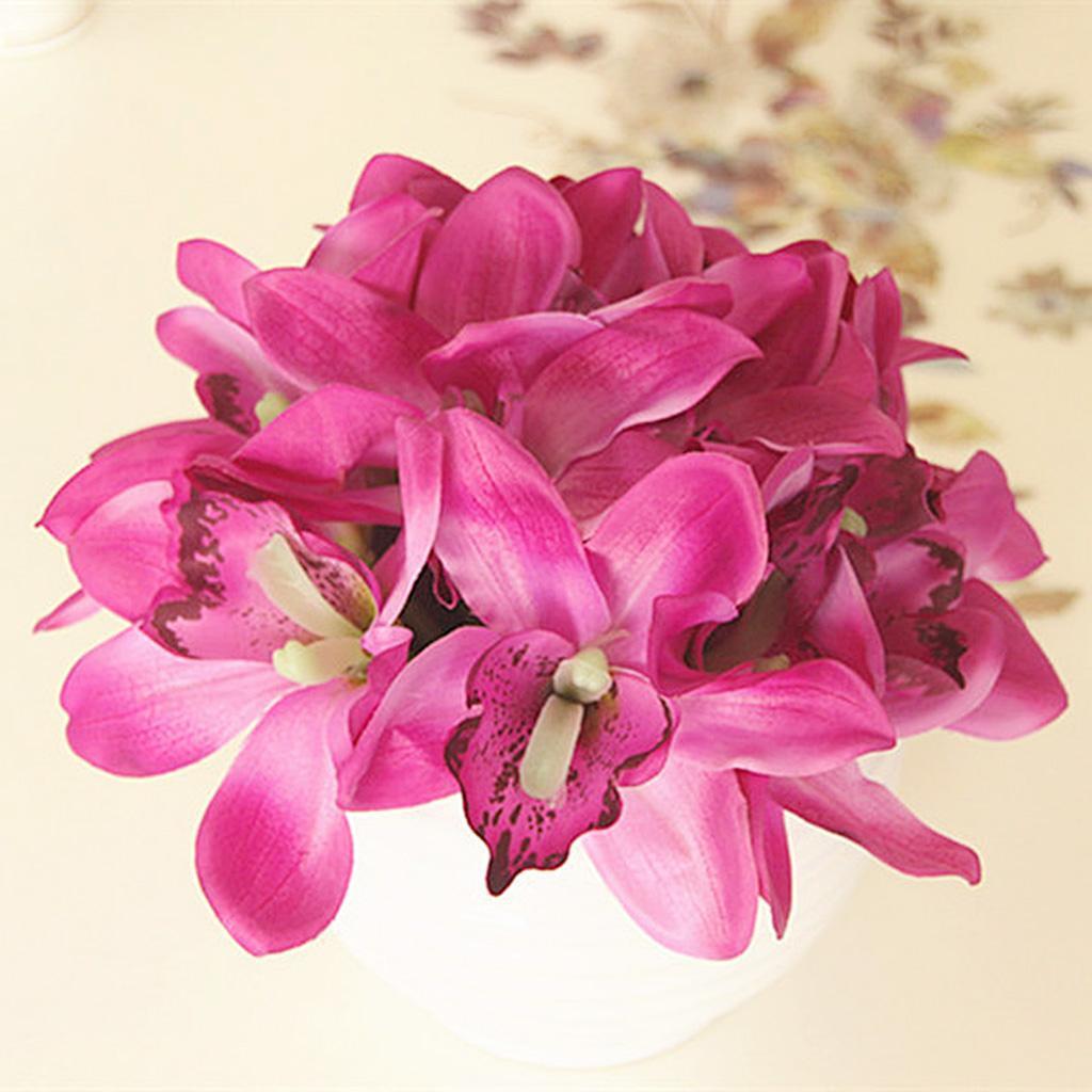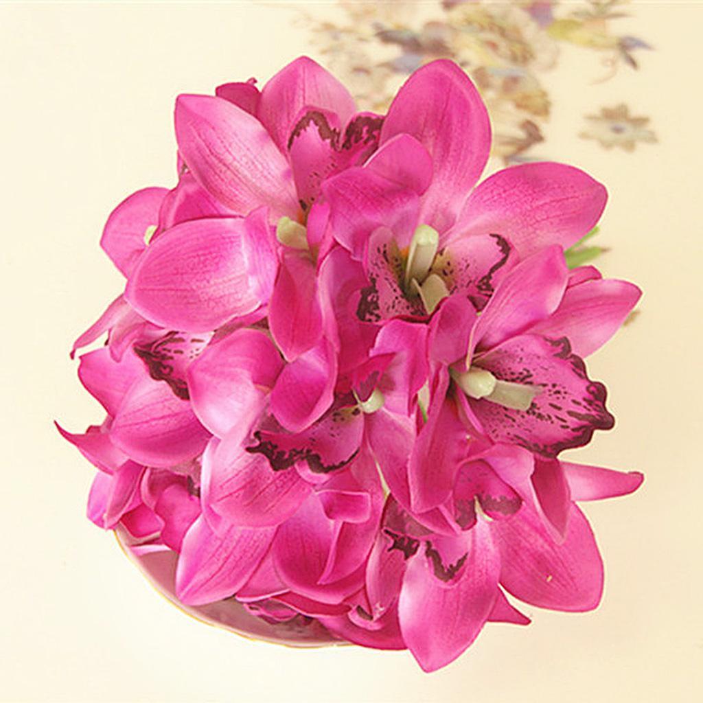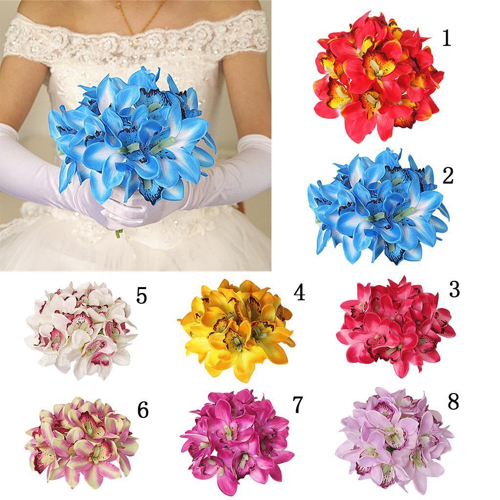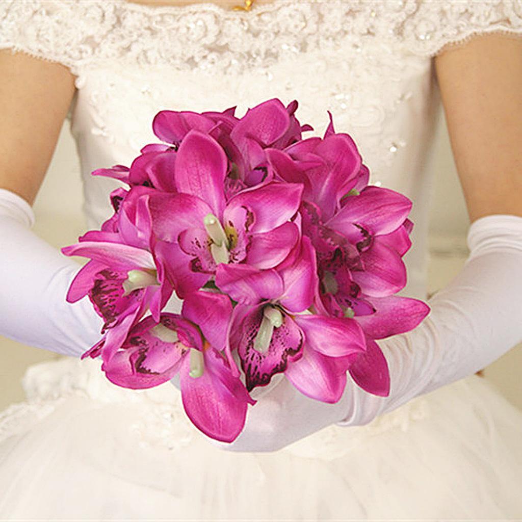 Artificial Butterfly Orchid Bridal Bridesmaid Flower Girl Bouquet Purple