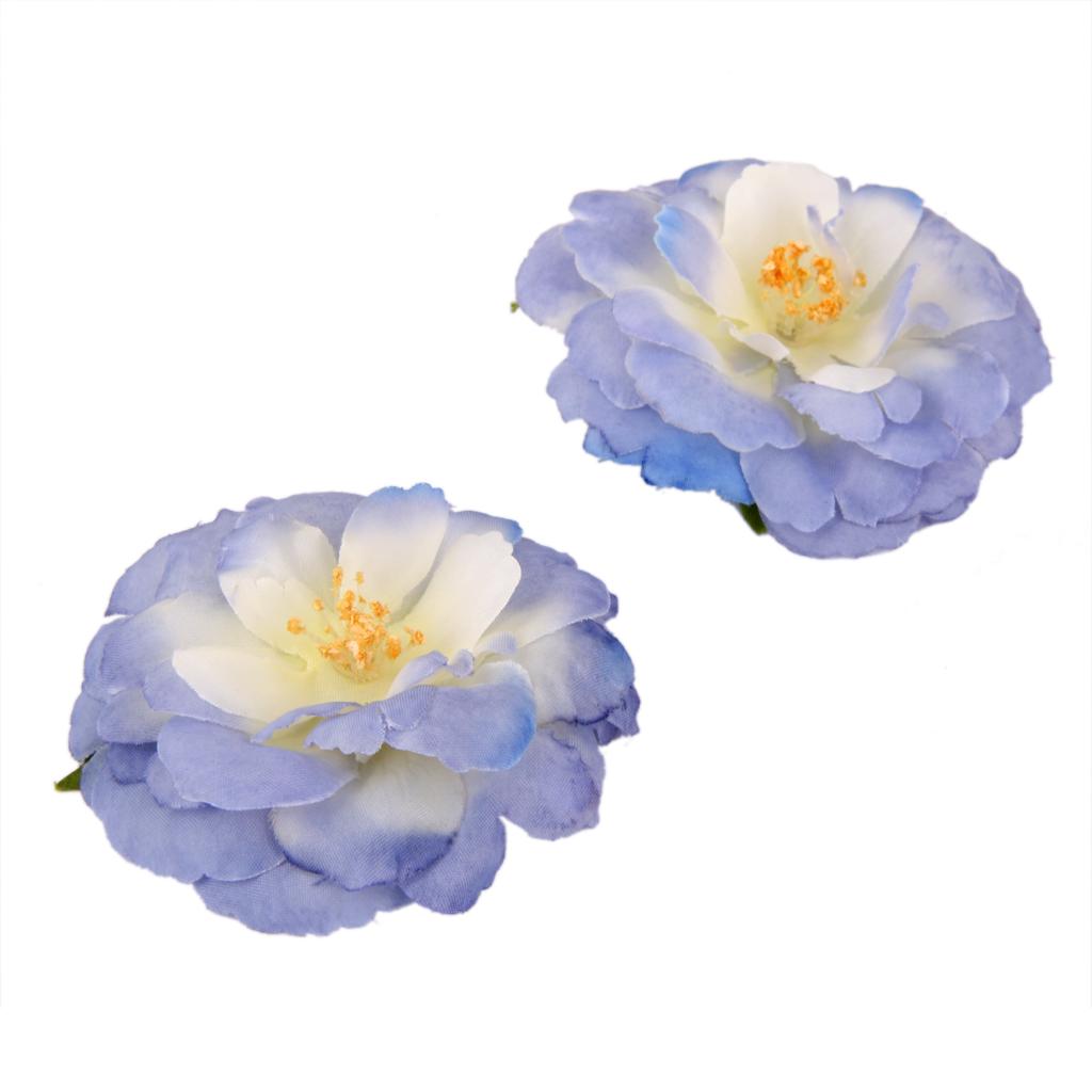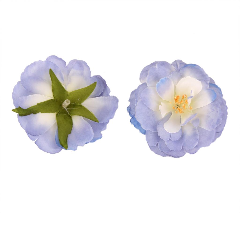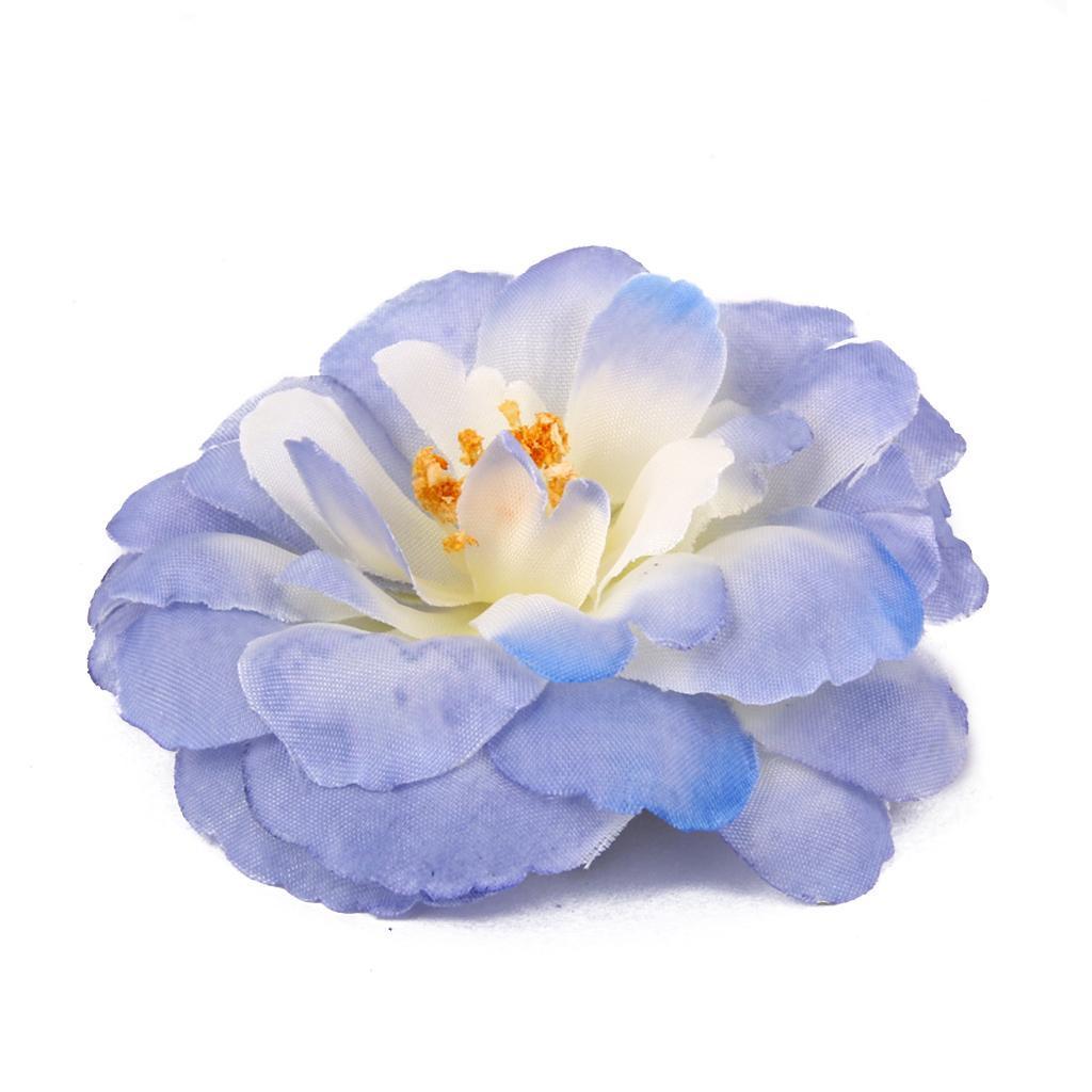 Artificial Camellia Flower Heads Silk Rose Hair Clip Wedding Party Decor Blue Pack Of 10PCS