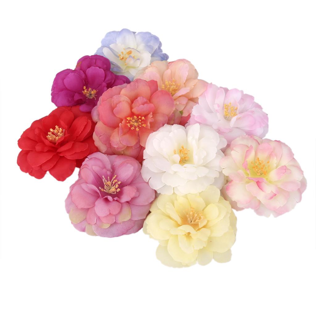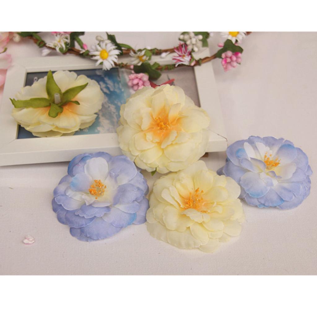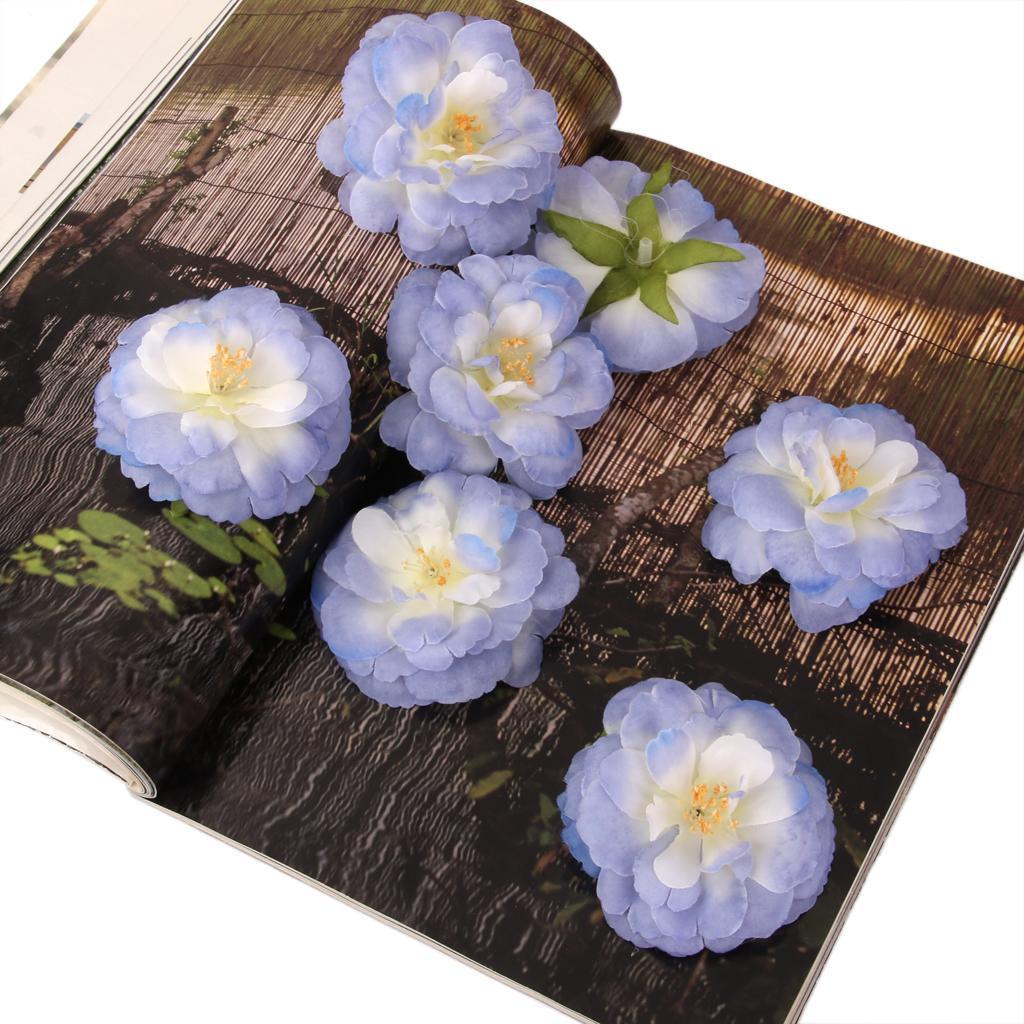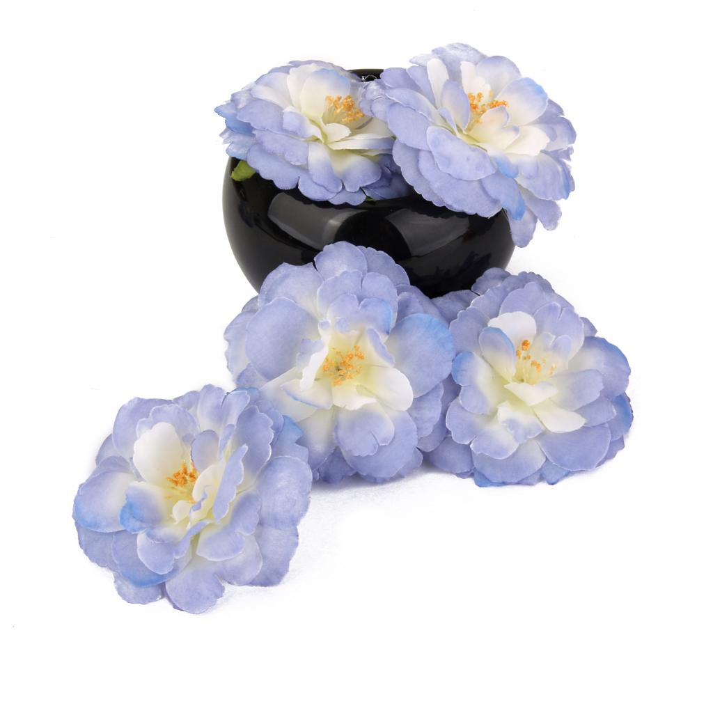 Artificial Camellia Flower Heads Silk Rose Hair Clip Wedding Party Decor Blue Pack Of 10PCS