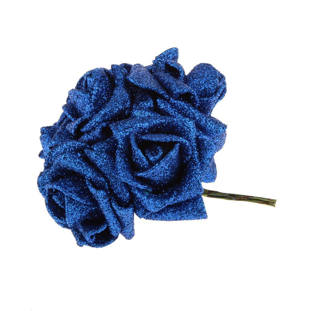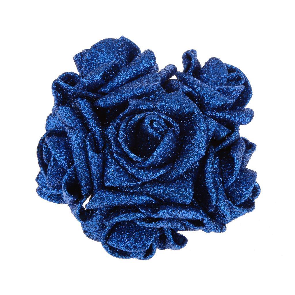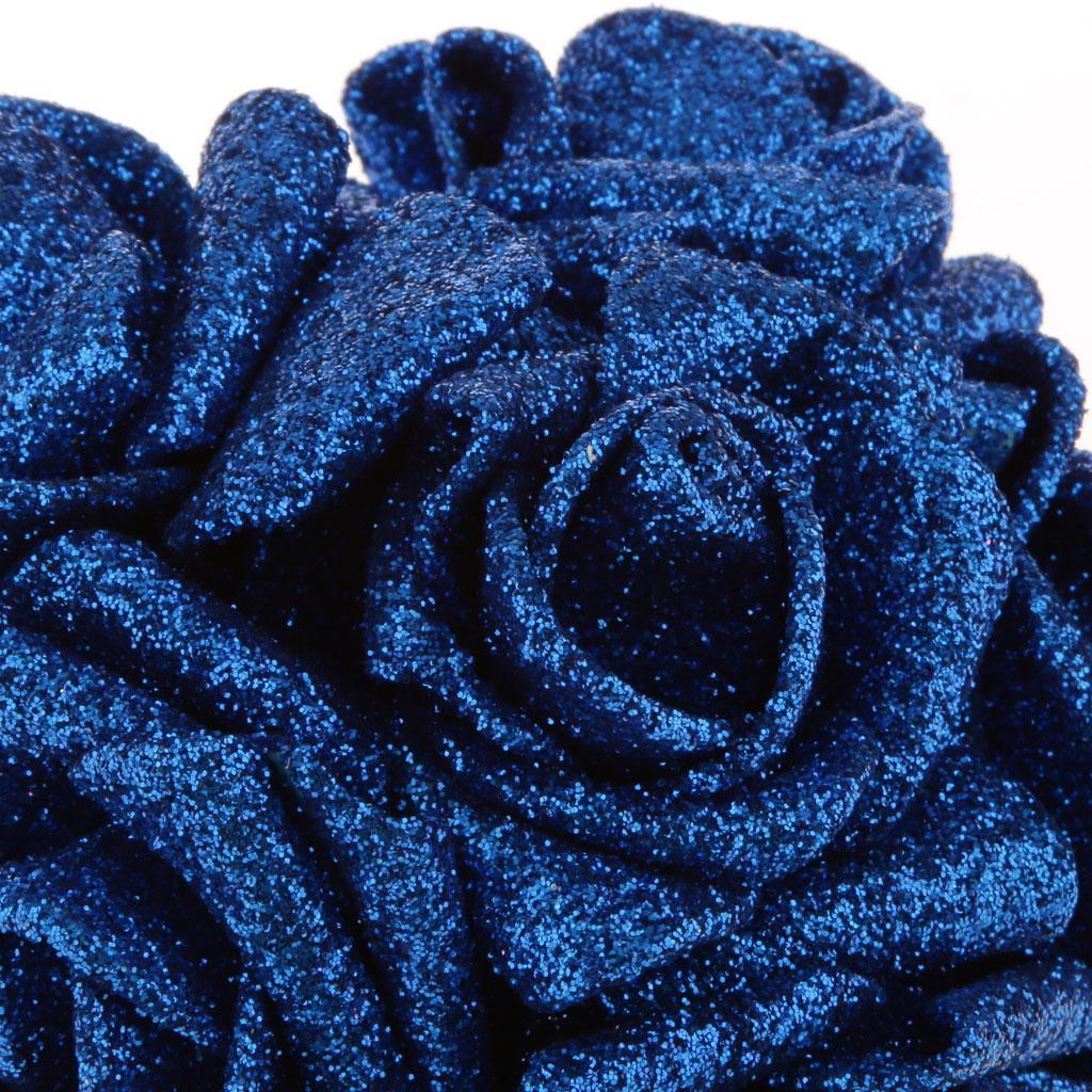 Artificial Foam Roses Glitter Powder Flower Bouquet Wedding Party Supplies Bridal Flower Bouquet Decor Pack of 12PCS Blue