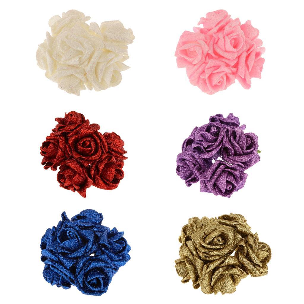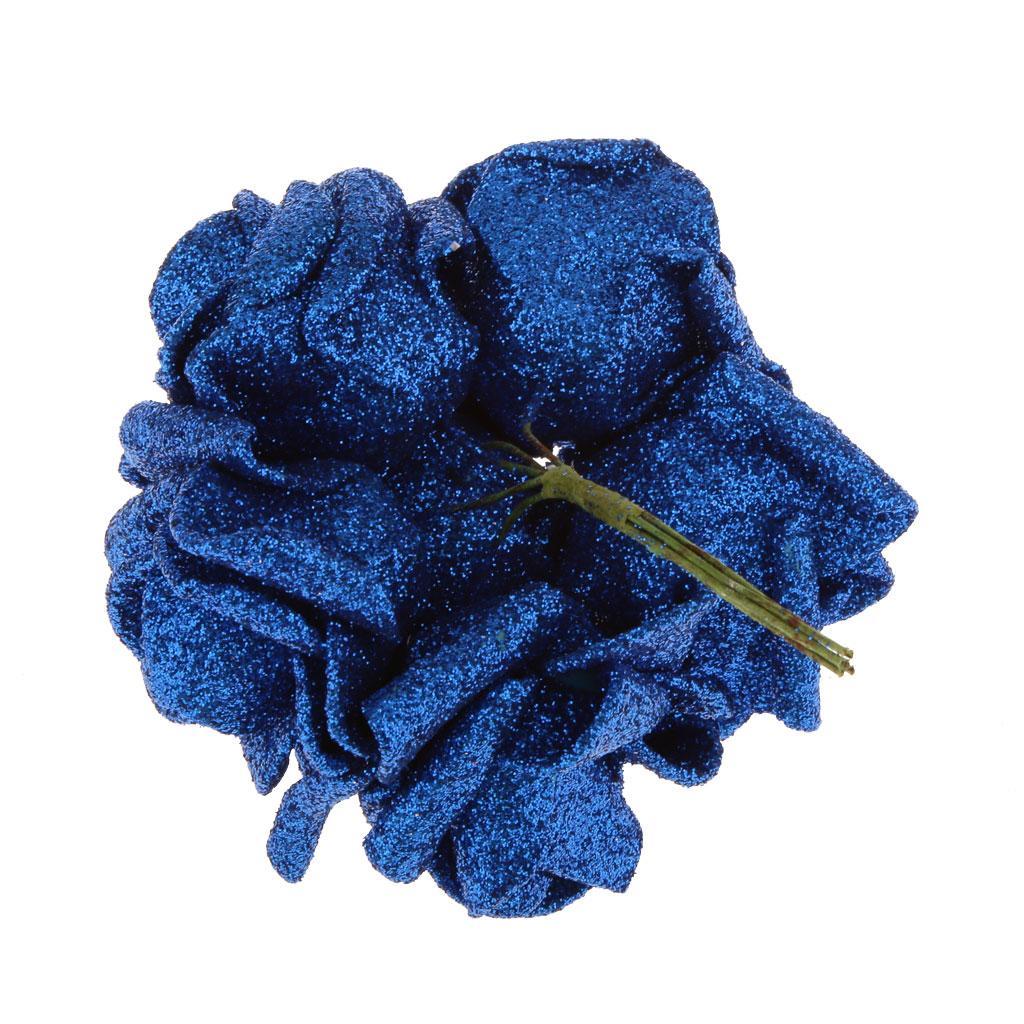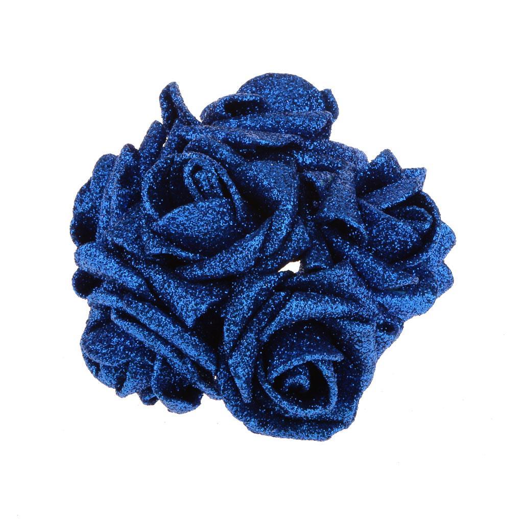 Artificial Foam Roses Glitter Powder Flower Bouquet Wedding Party Supplies Bridal Flower Bouquet Decor Pack of 12PCS Blue